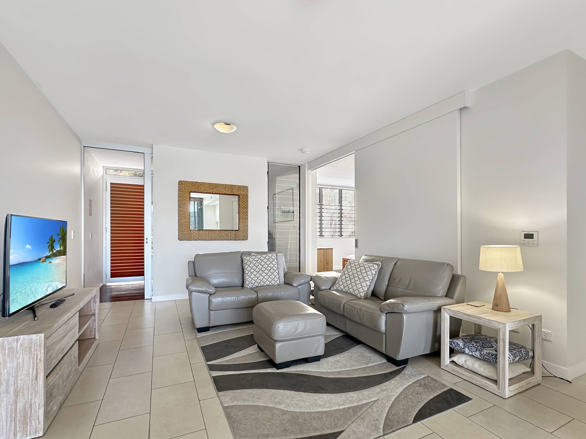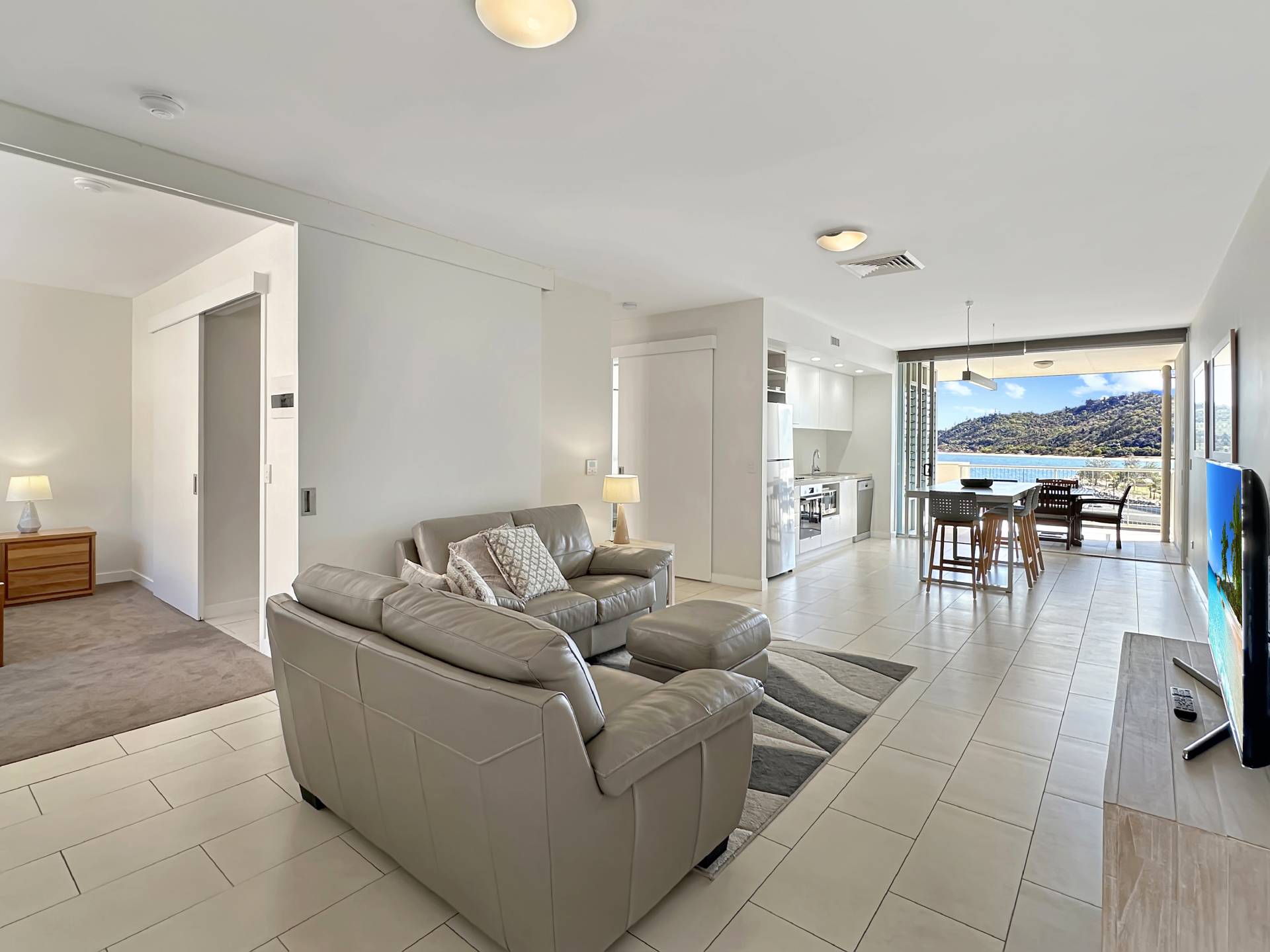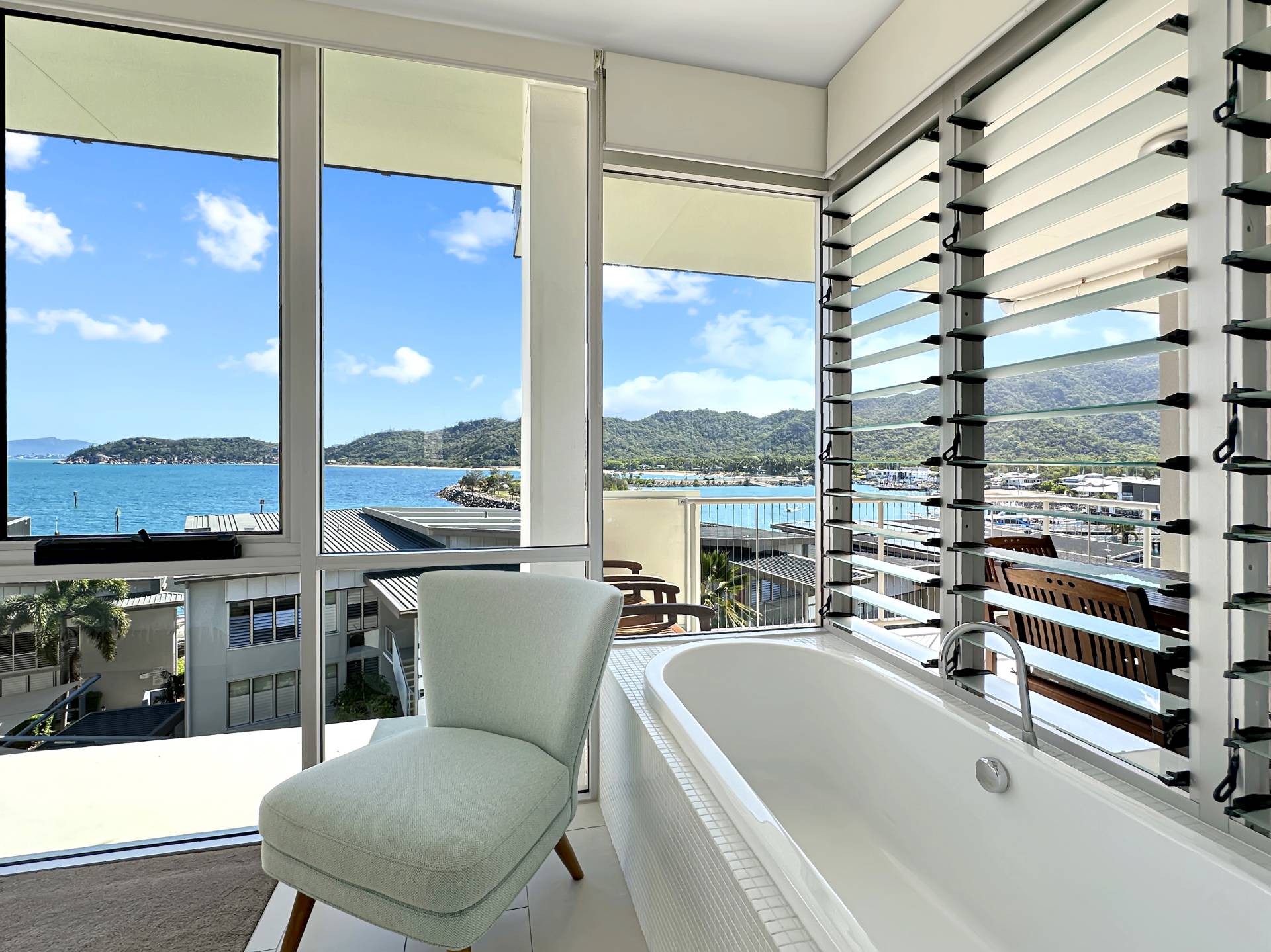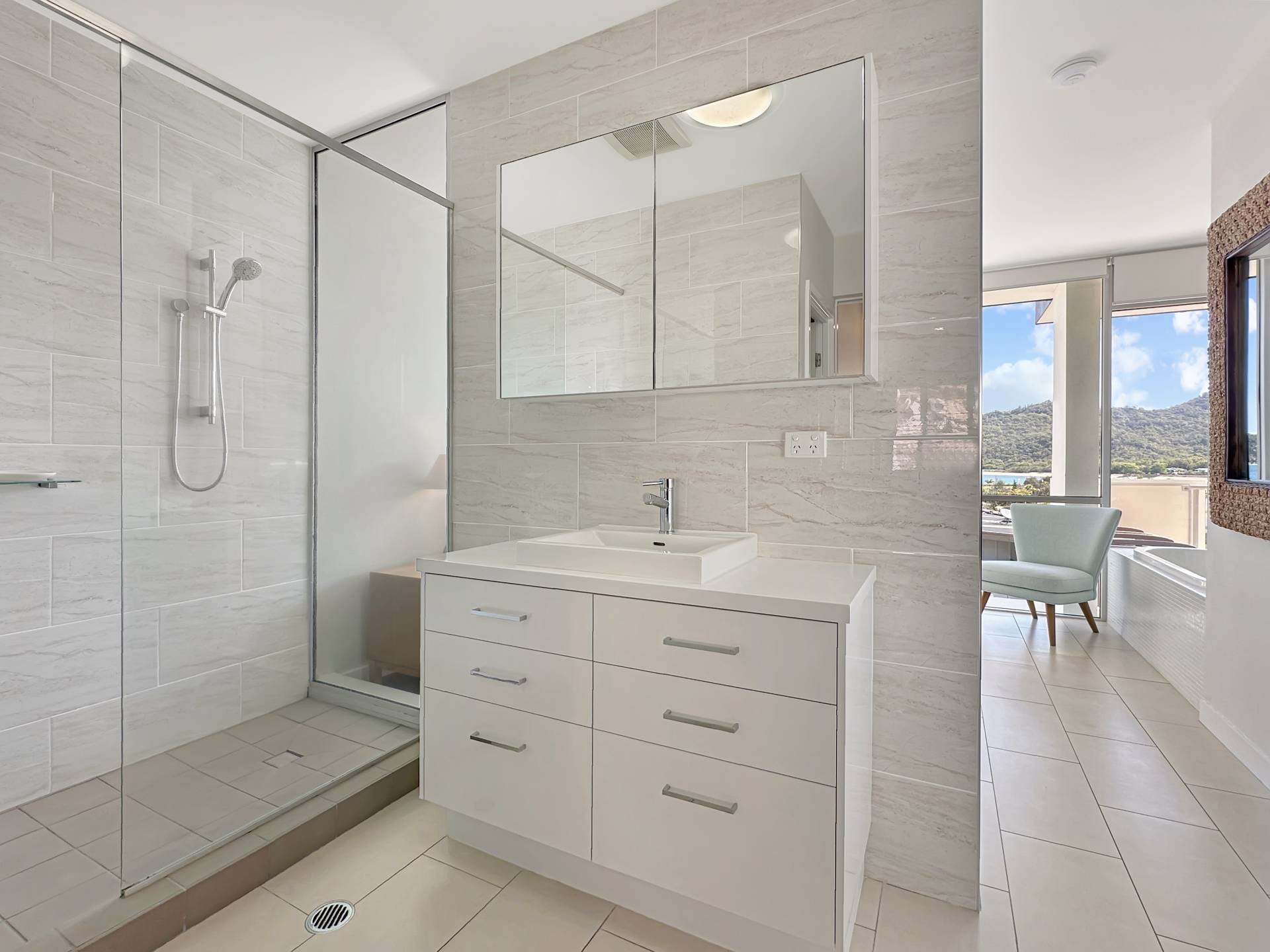 This fifth floor apartment offers captivating water views across the Coral Sea to the granite boulder-strewn hills of Magnetic Island, Nelly Bay beach and all the way to the twinkling lights of Townsville.