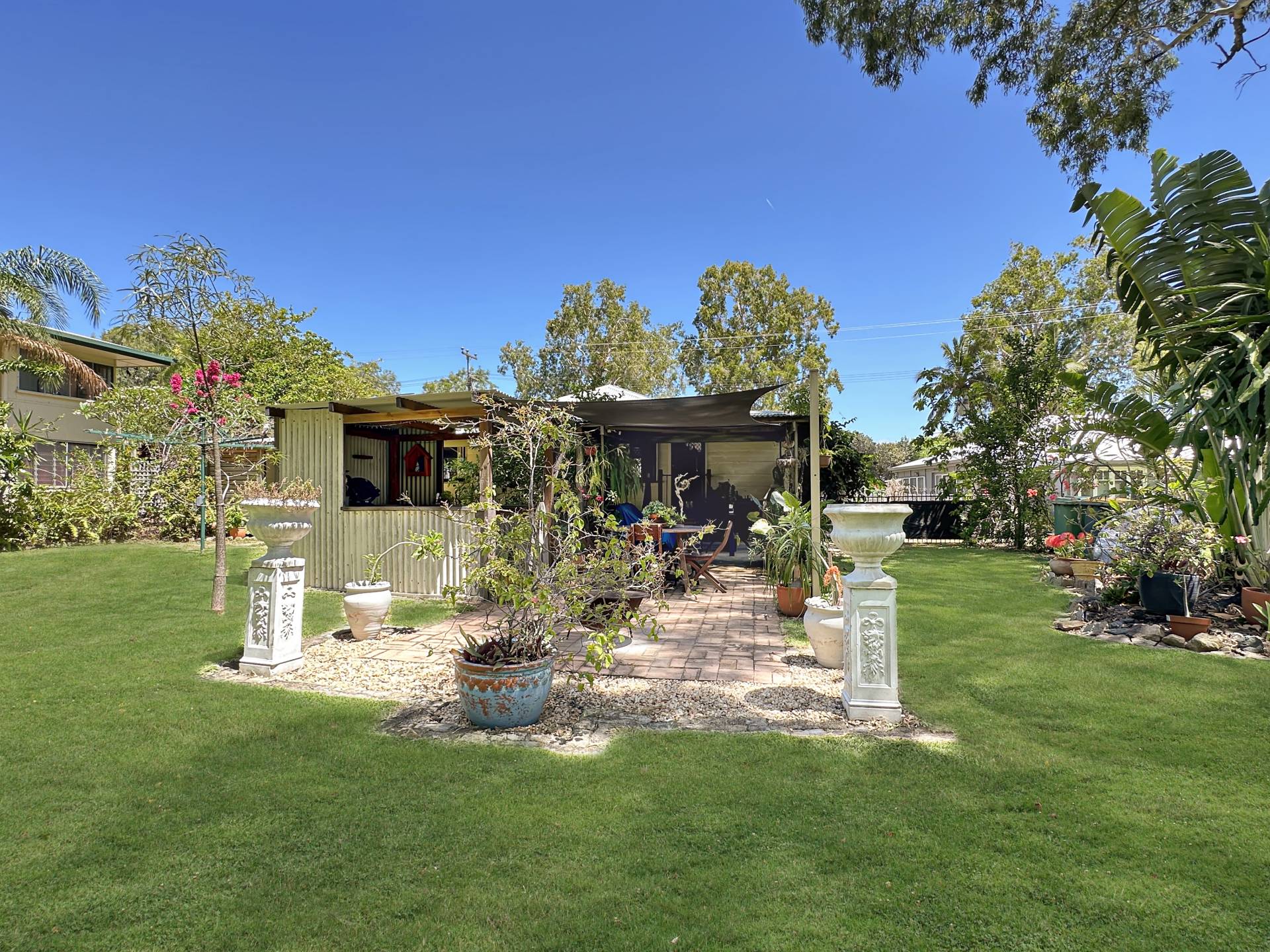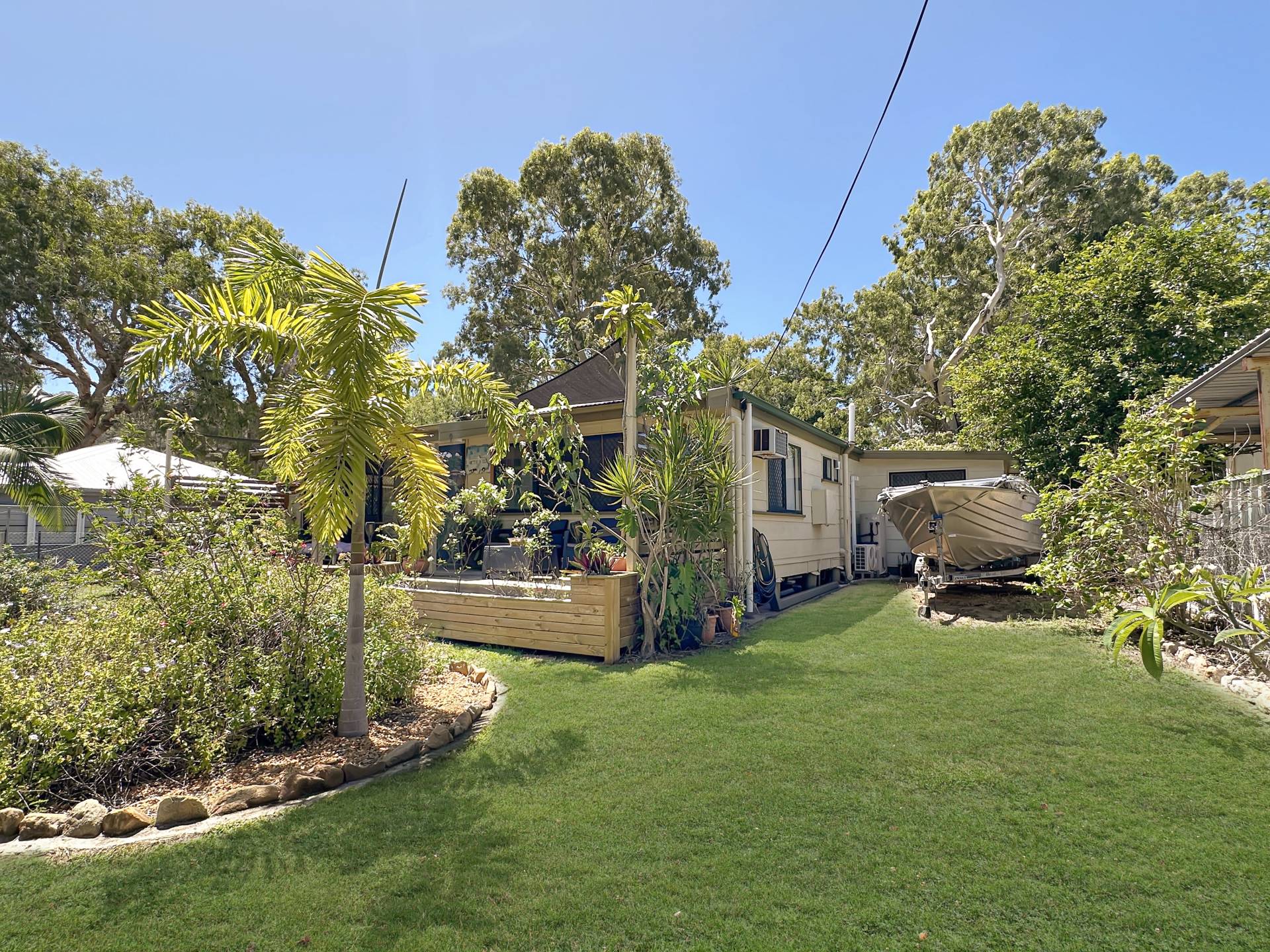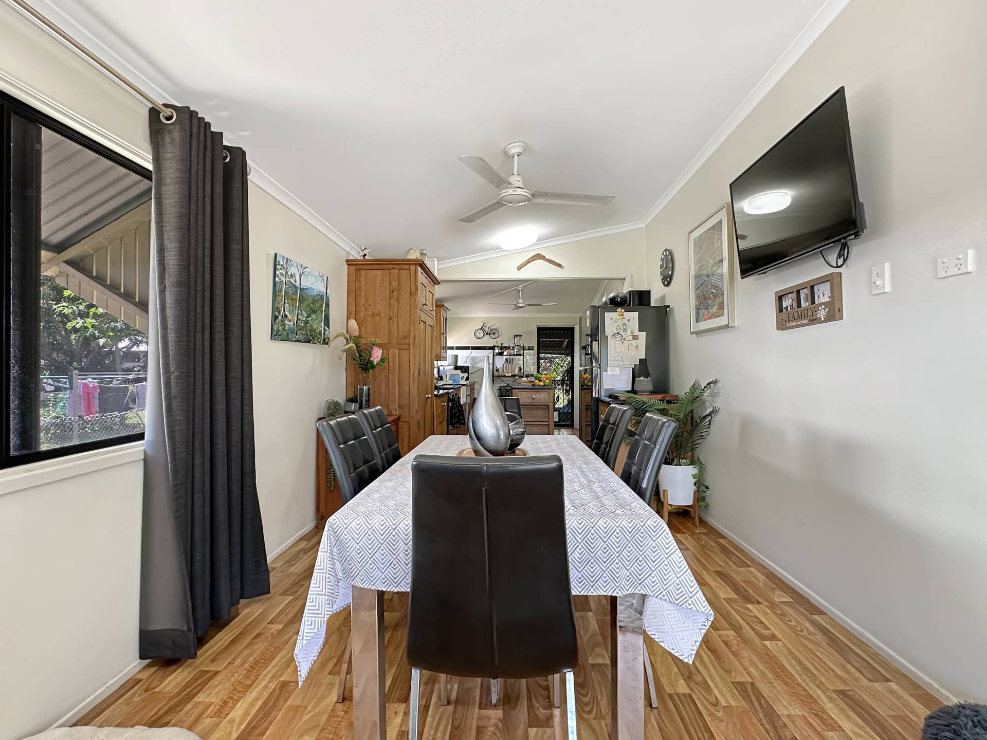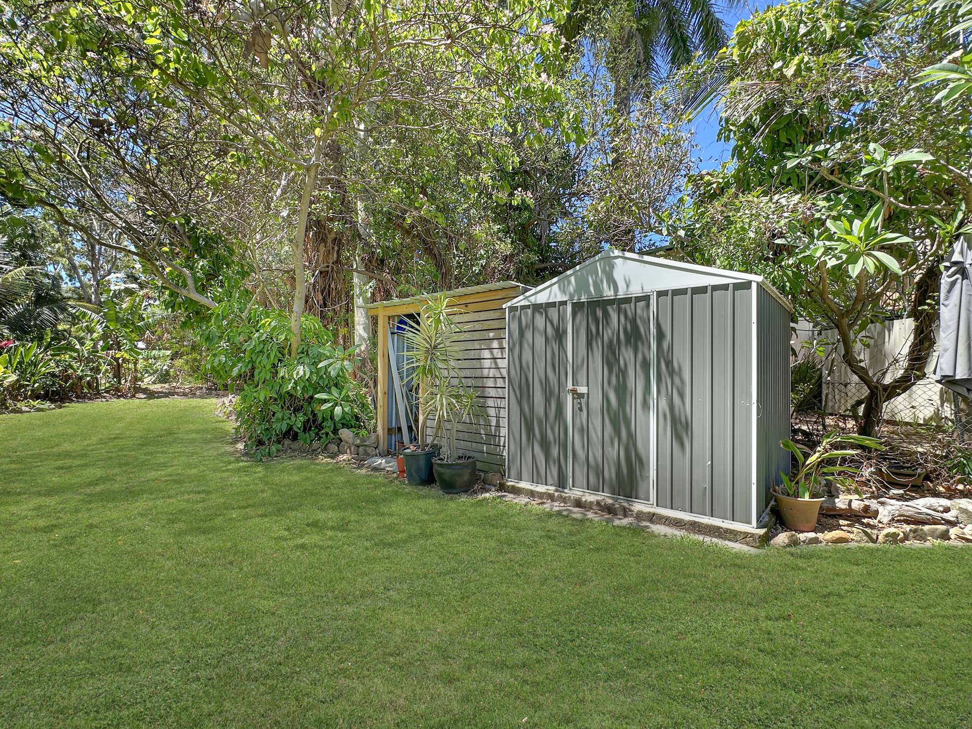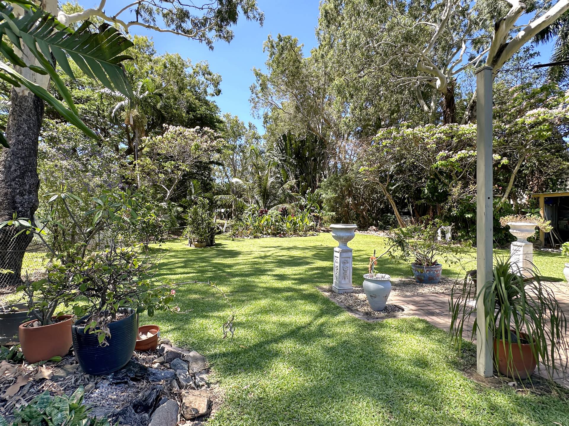 To the right of the front entry is the second bedroom which has windows on two sides taking advantage of breezes, fan, air-con and built-in-wardrobes.  A third bedroom is set up to the rear of the lounge and could easily be made into a private bedroom with a partition wall. The large laundry is located at the back of the property and access to this is from the full length back verandah.