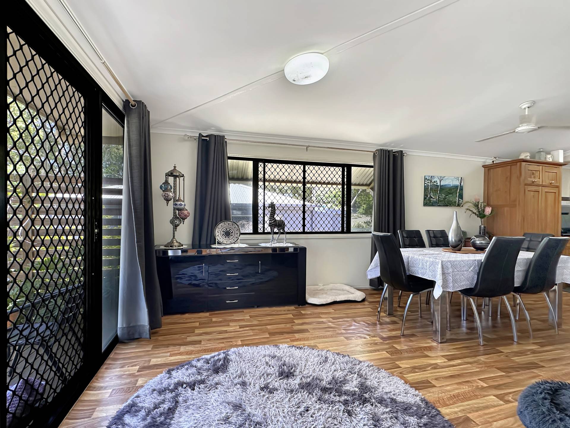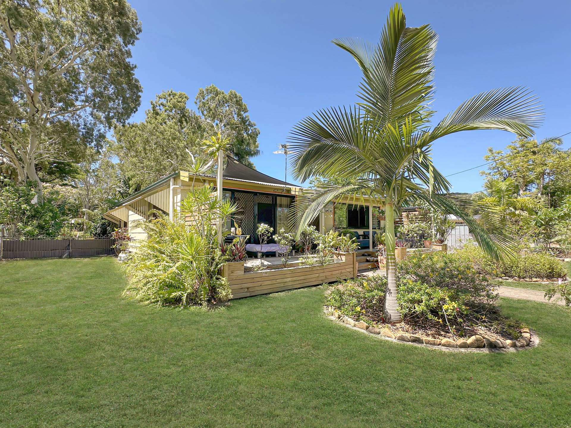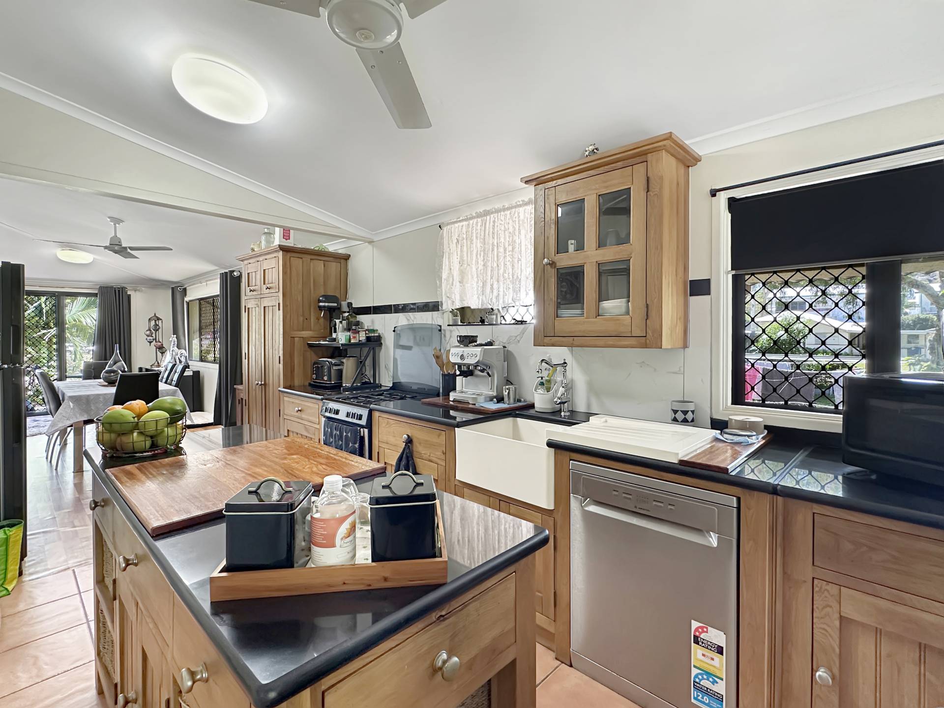 On entering the home, an L-shaped living area wraps around the main central living room, in true old queenslander fashion. Large sliding glass doors open up onto the front deck and provide a beautiful cross breeze most days and fill the dining area with natural light. The kitchen is situated just behind the dining area with a back door leading out to the back covered entertaining area. With gas cooktop, large country-style sink, dishwasher, stone benchtops and quality cabinetry, the modern kitchen fits the character of the home perfectly.