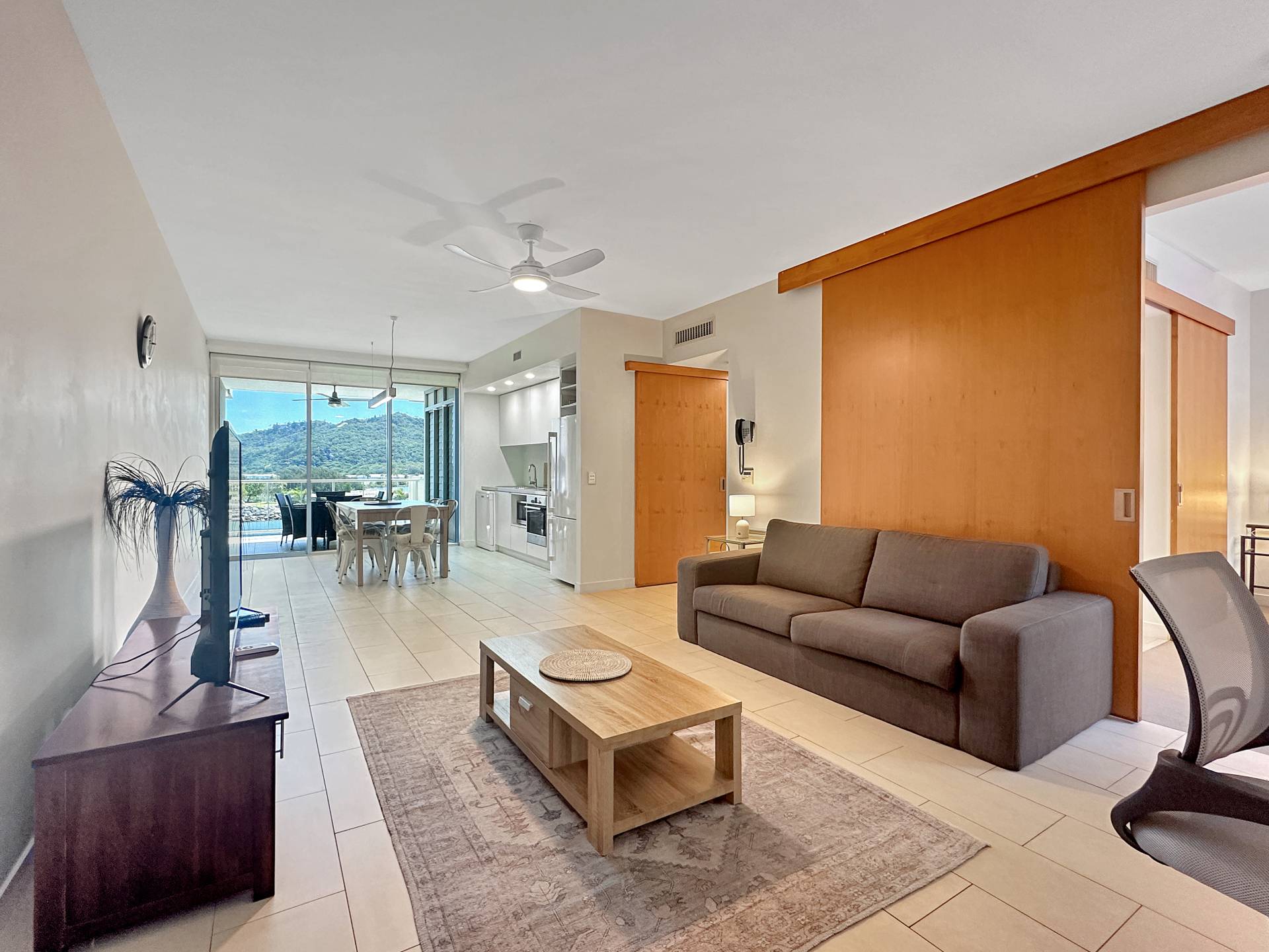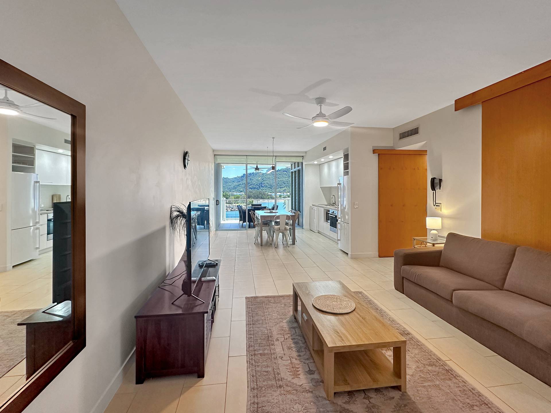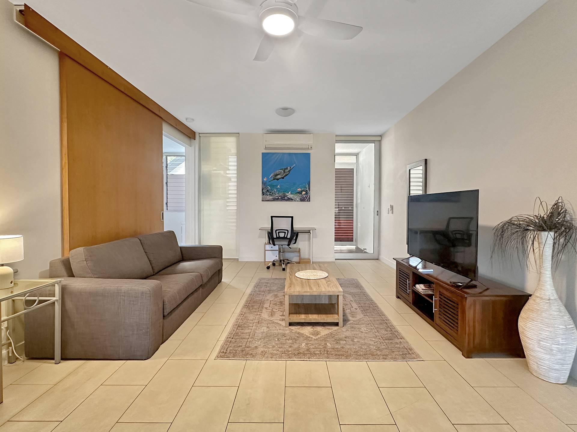 This third floor apartment in the 'One Bright Point' complex offers a relaxed tropical lifestyle and is designed to capture the cool sea breezes.