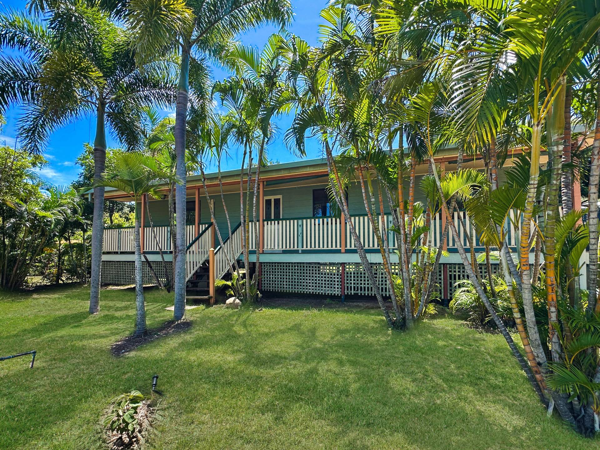 The front door opens to a private entry which flows to a spacious, light filled living area with views out to tropical gardens and distant hills.