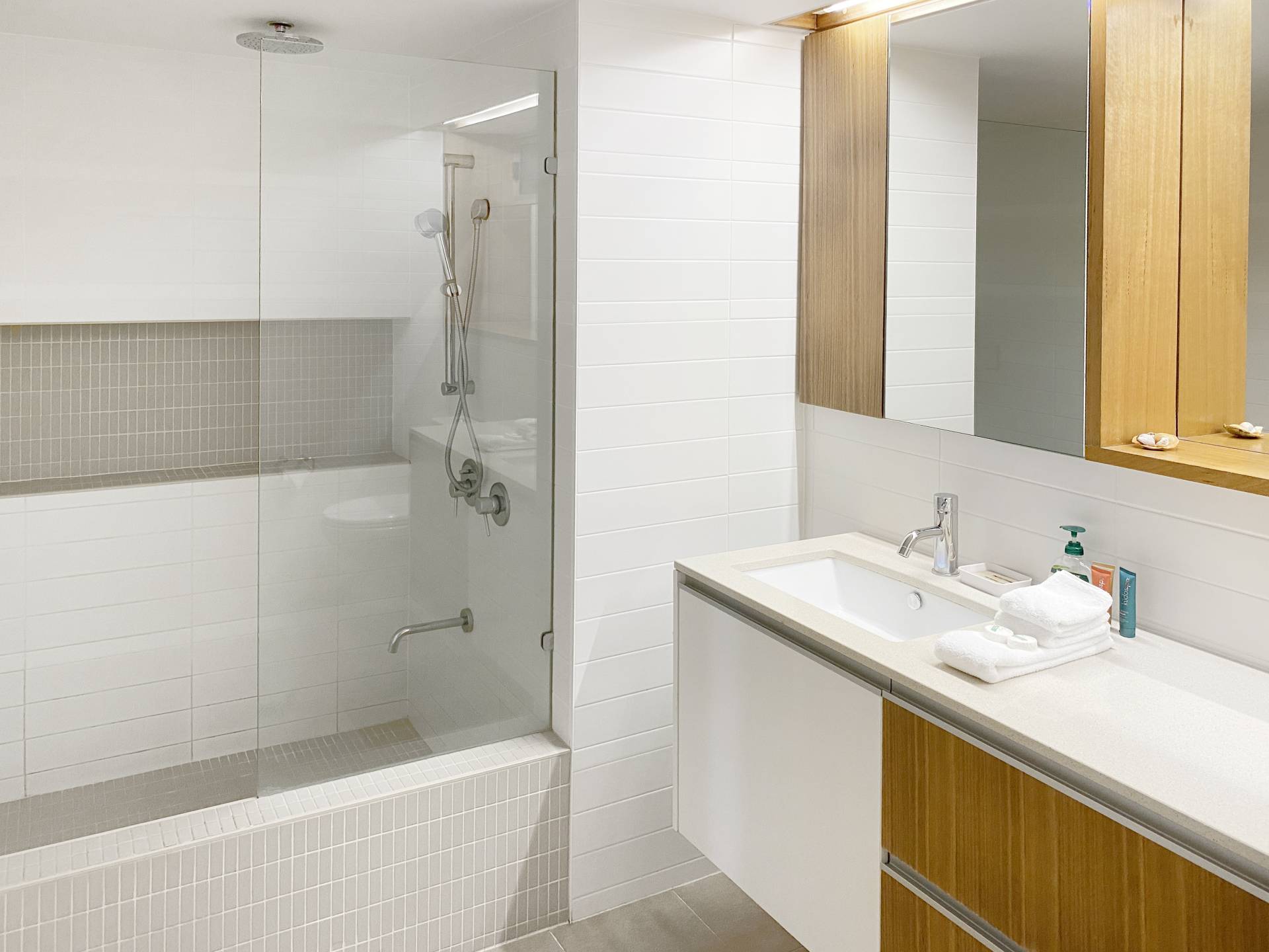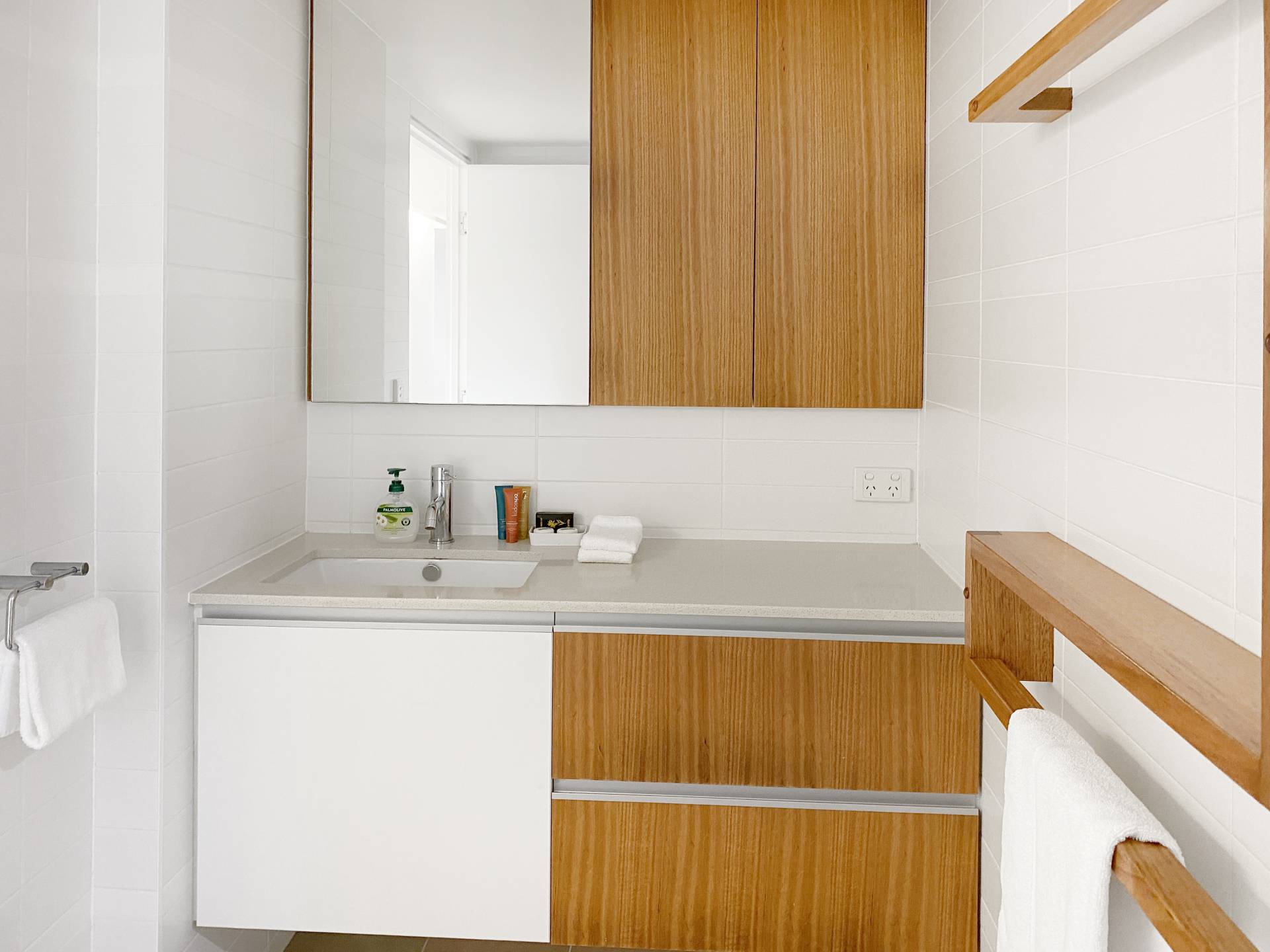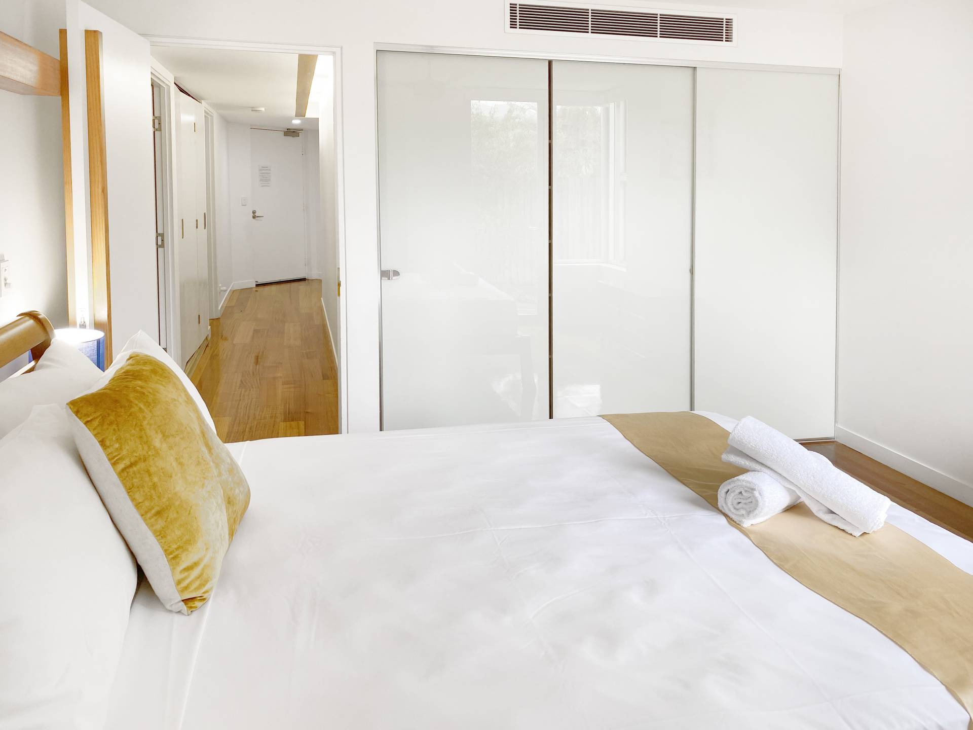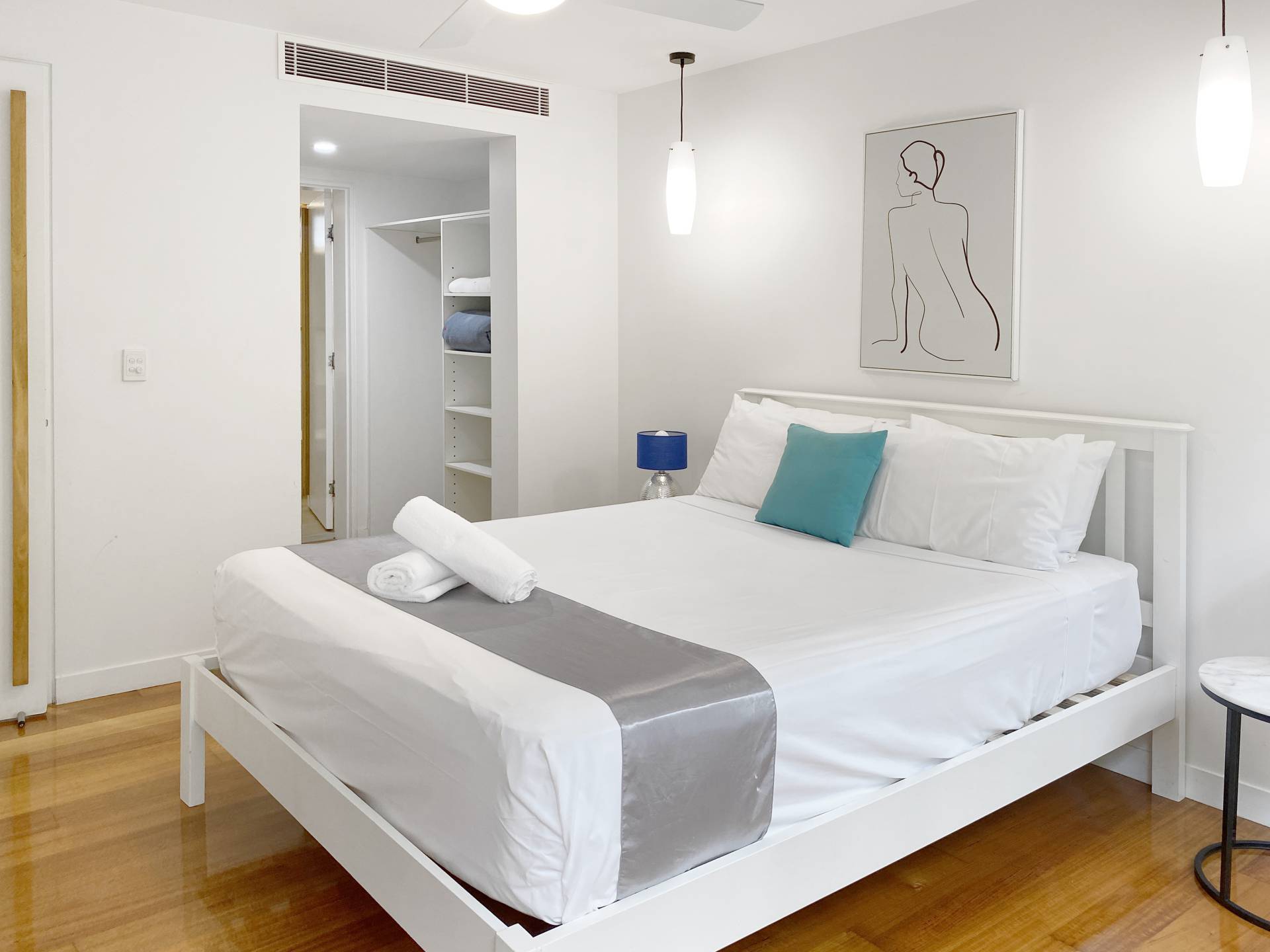 The interior exudes a warmth missing from most modern apartments, with beautiful polished wood floors throughout the living areas and bedrooms. Ducted reverse cycle air conditioning and ceiling fans are installed throughout to keep you comfortable in any weather. The galley-style kitchen is sleek and modern with Smeg oven, microwave & gas cooktop, dishwasher, stone benchtops and breakfast bar and comes fully equipped, right down to the teaspoons. The apartment is offered fully furnished so you can continue to holiday let or simply move in.