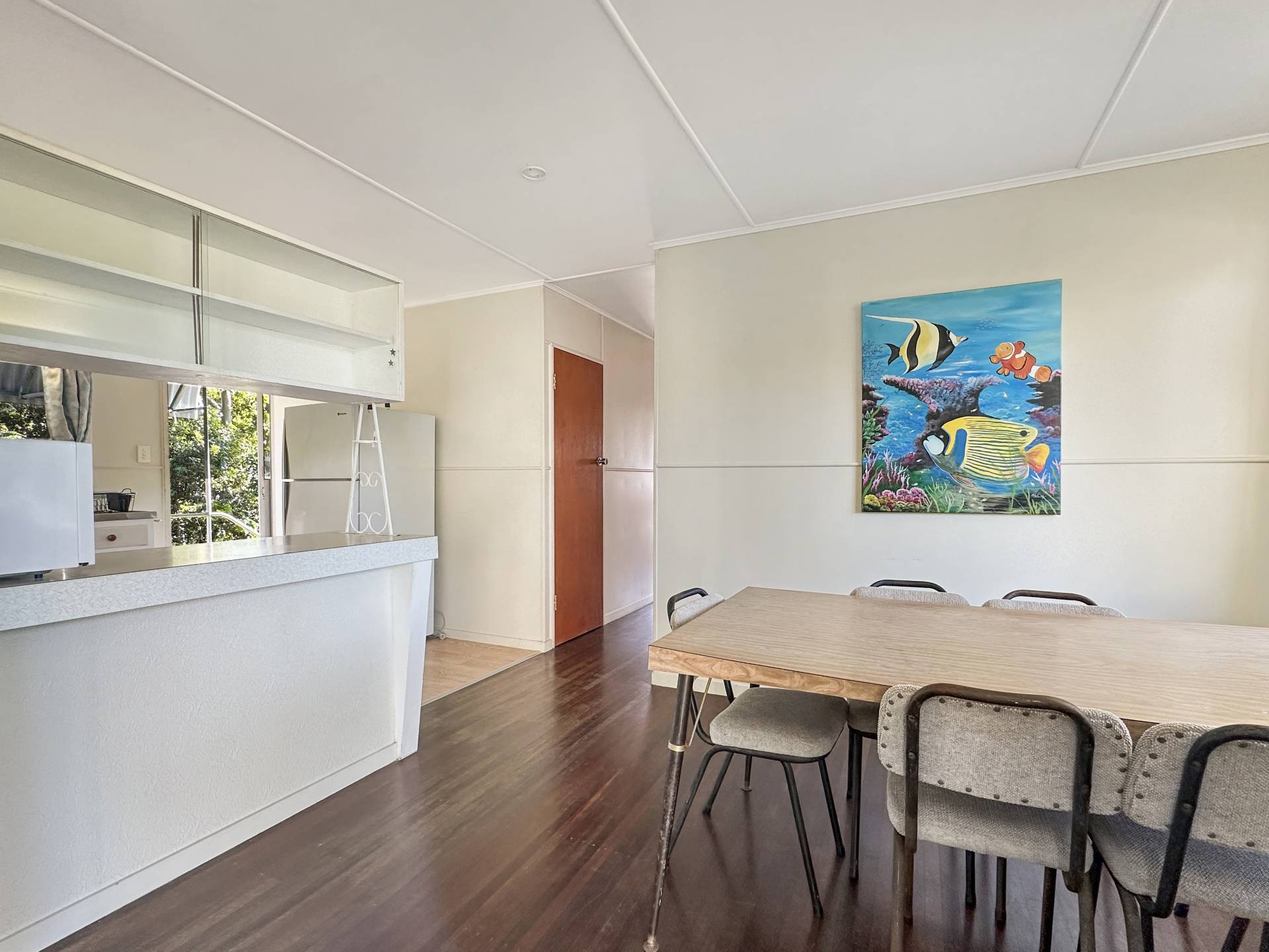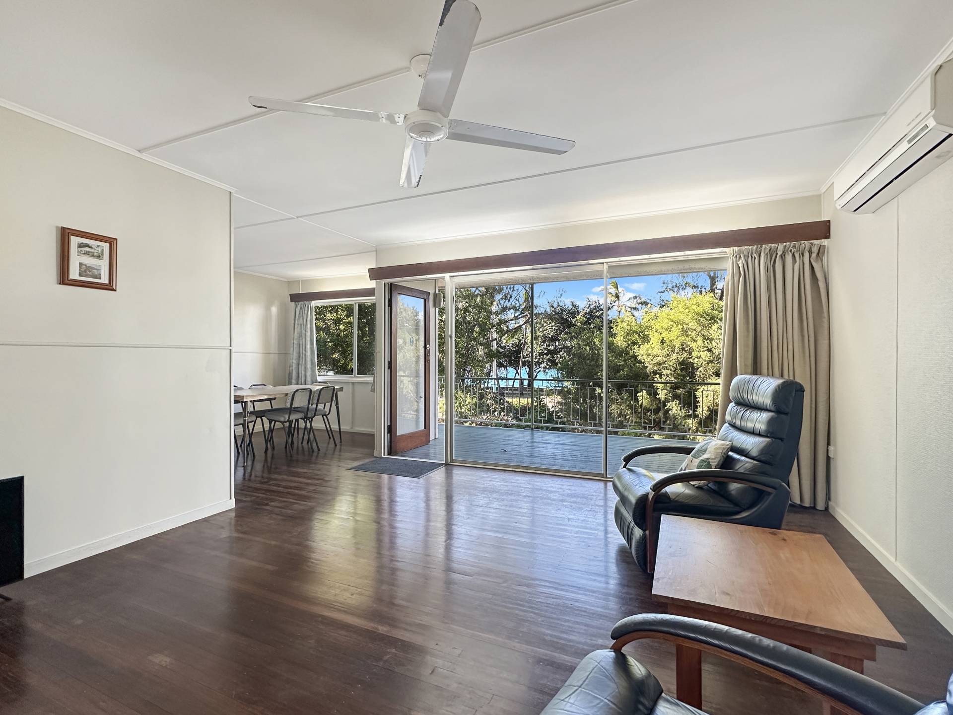 You can live in it while you update it as it has all you need - functioning kitchen, bathrooms upstairs and downstairs, good storage areas underneath for building materials etc. Relax on the front deck and drink in the sea views while you decide on your styling. The lounge room has huge glass doors onto the deck that have stood the test of time and allow you to enjoy the view from the living area, as well as from the dining area and the two front bedrooms, with the master opening onto its own private deck too.