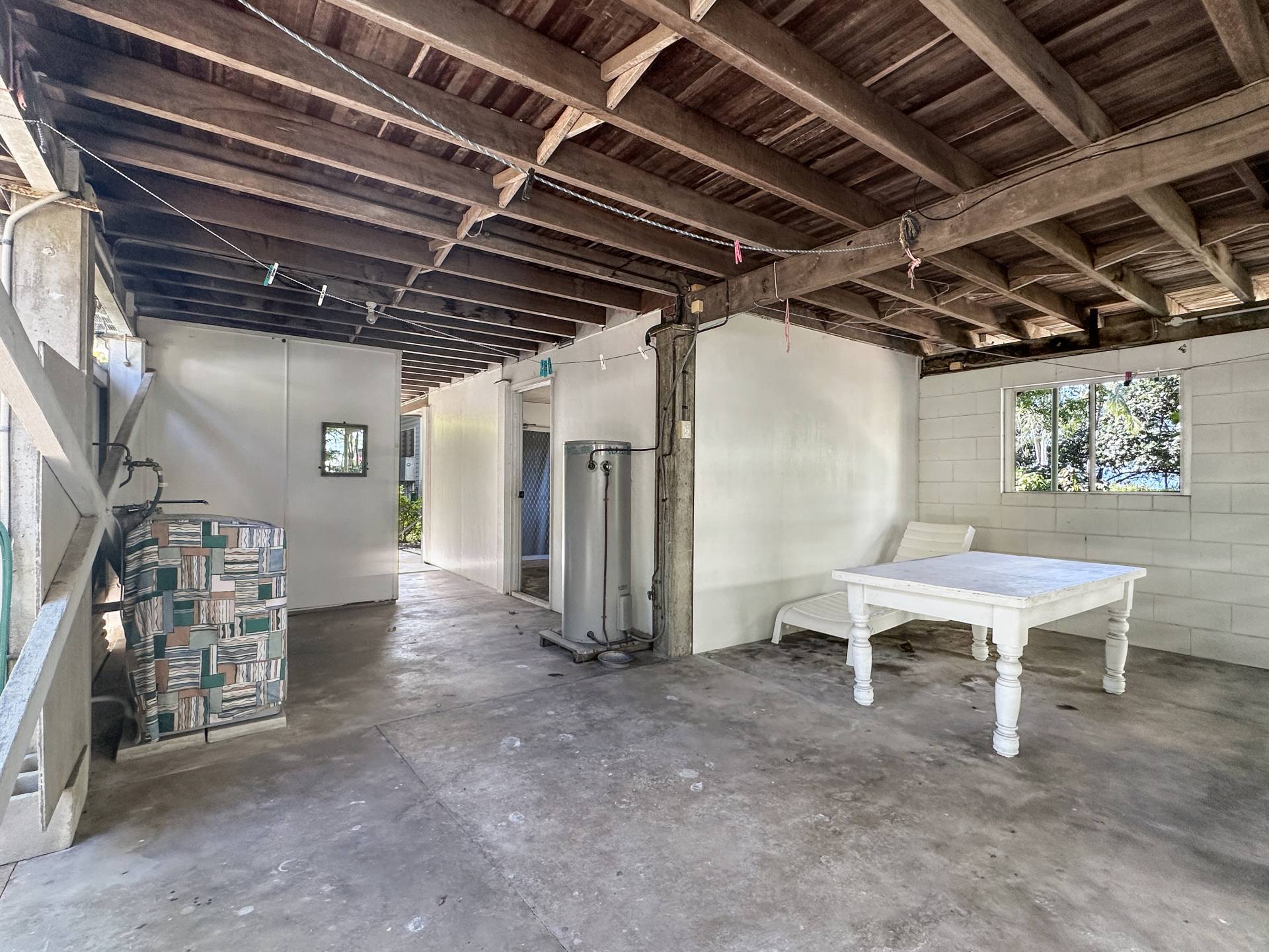 Downstairs, there's a lock-up storeroom, shower and toilet, laundry and plenty of room to park cars, keep kayaks, bikes and beach gear etc. There's room to the front and back if you want to add a pool, a shed or a veggie patch, and there's a small lawn locker in the back corner.