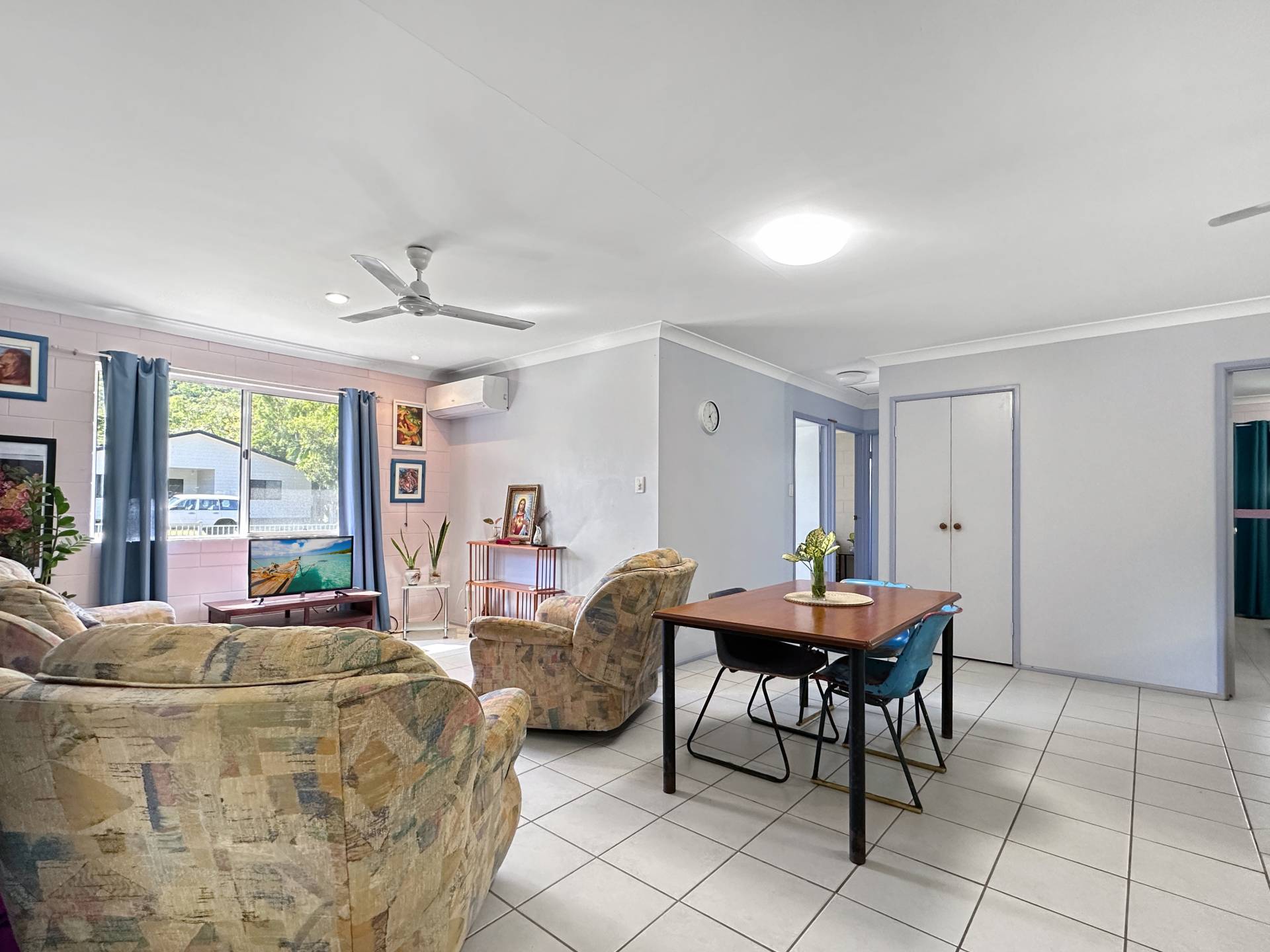 This block & tile construction home may need some updating but it offers lots of potential to add your own style to a solid home in an established residential area. The 908m2 block is fully fenced and slopes down to a seasonal creek behind with a lovely outlook of paperbarks and the hills in the background. There's no risk of flooding due to the slope of the land and the creek flows easily down to the sea. Elena St is also well serviced with good drainage, underground power, town water and mains sewer, more than most streets on the island!