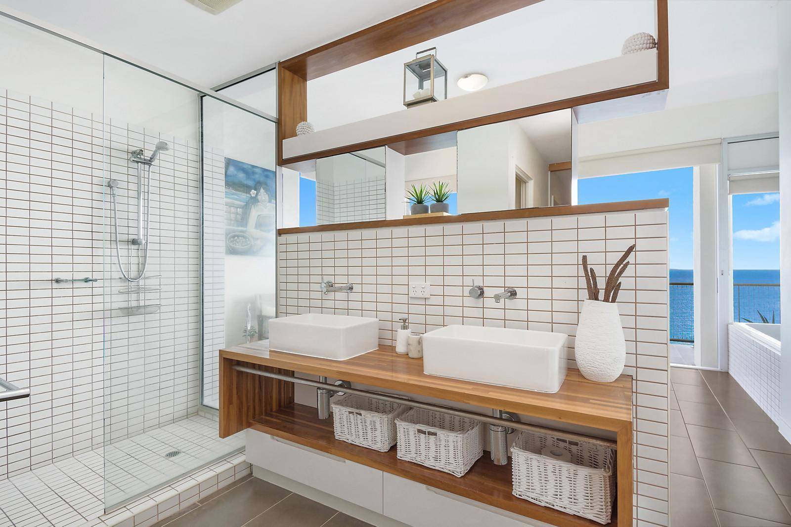 The master bedroom opens out onto the balcony where you can enjoy both sunrise and sunset colours magically lighting up the sky and water. You can even enjoy the view from the very private bathtub and master ensuite shower. The second and third bedrooms are generous in size, with ample built-in-wardrobes and ducted air-conditioning throughout the apartment will keep you cool whatever the weather - although the beautiful sea breezes are usually all you need.