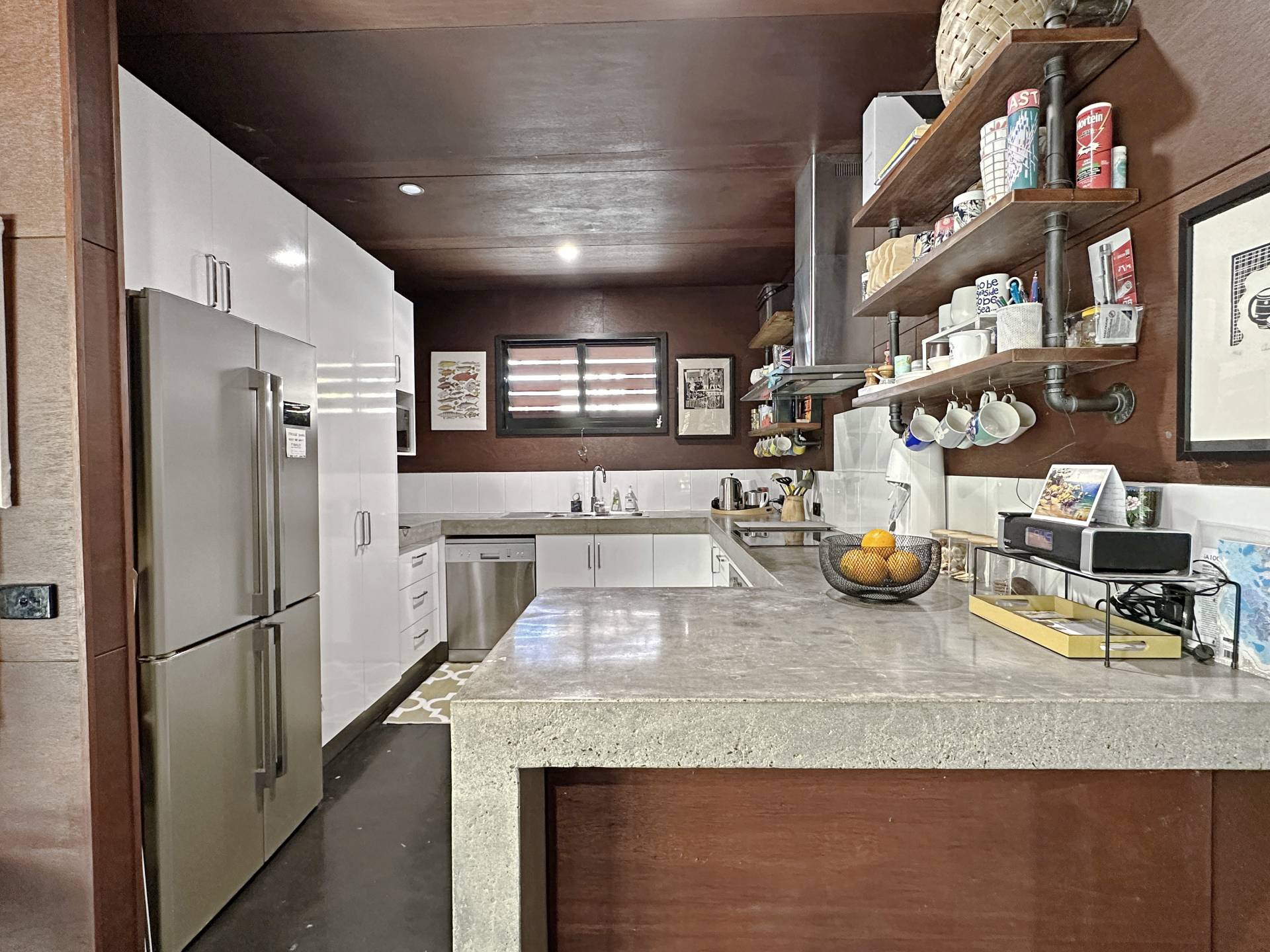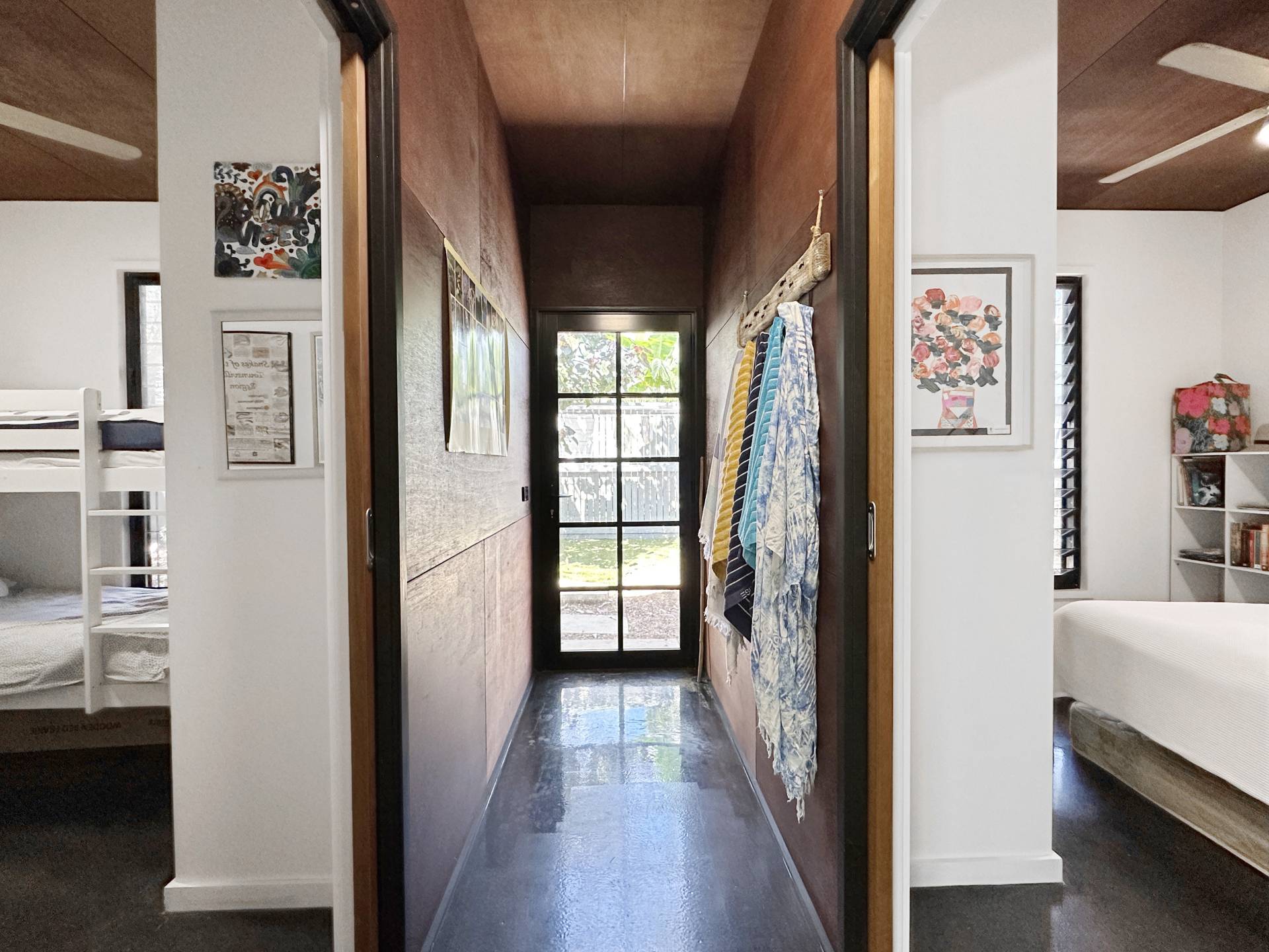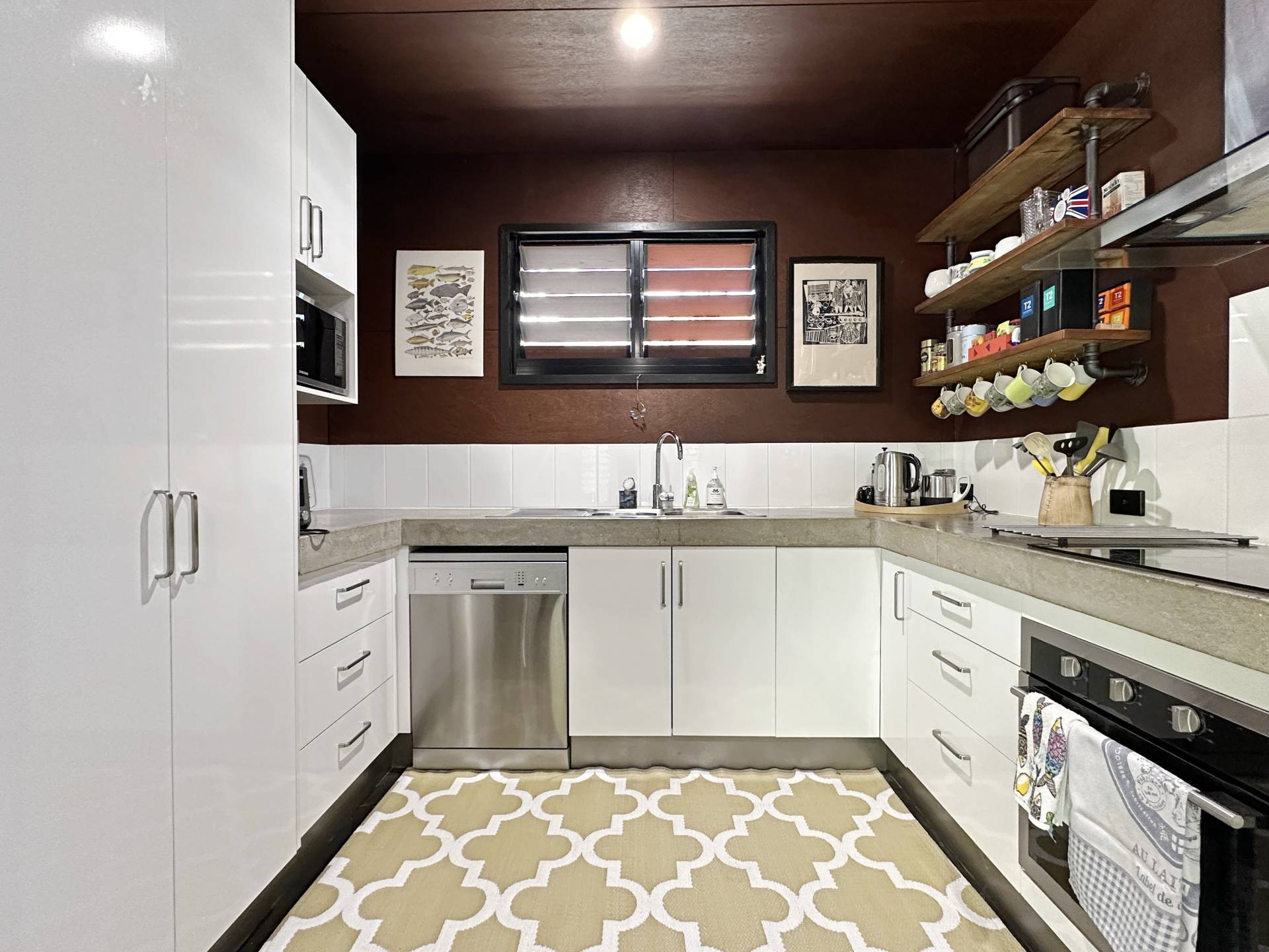 Polished concrete floors add to the low maintenance qualities of this home as well as hand-crafted concrete kitchen benchtops and vanities. All of the bedrooms are air-conditioned and the clever use of louvre windows, ceiling fans, the breezeway and orientation of the home allows cool sea breezes to keep the home comfortable year round.