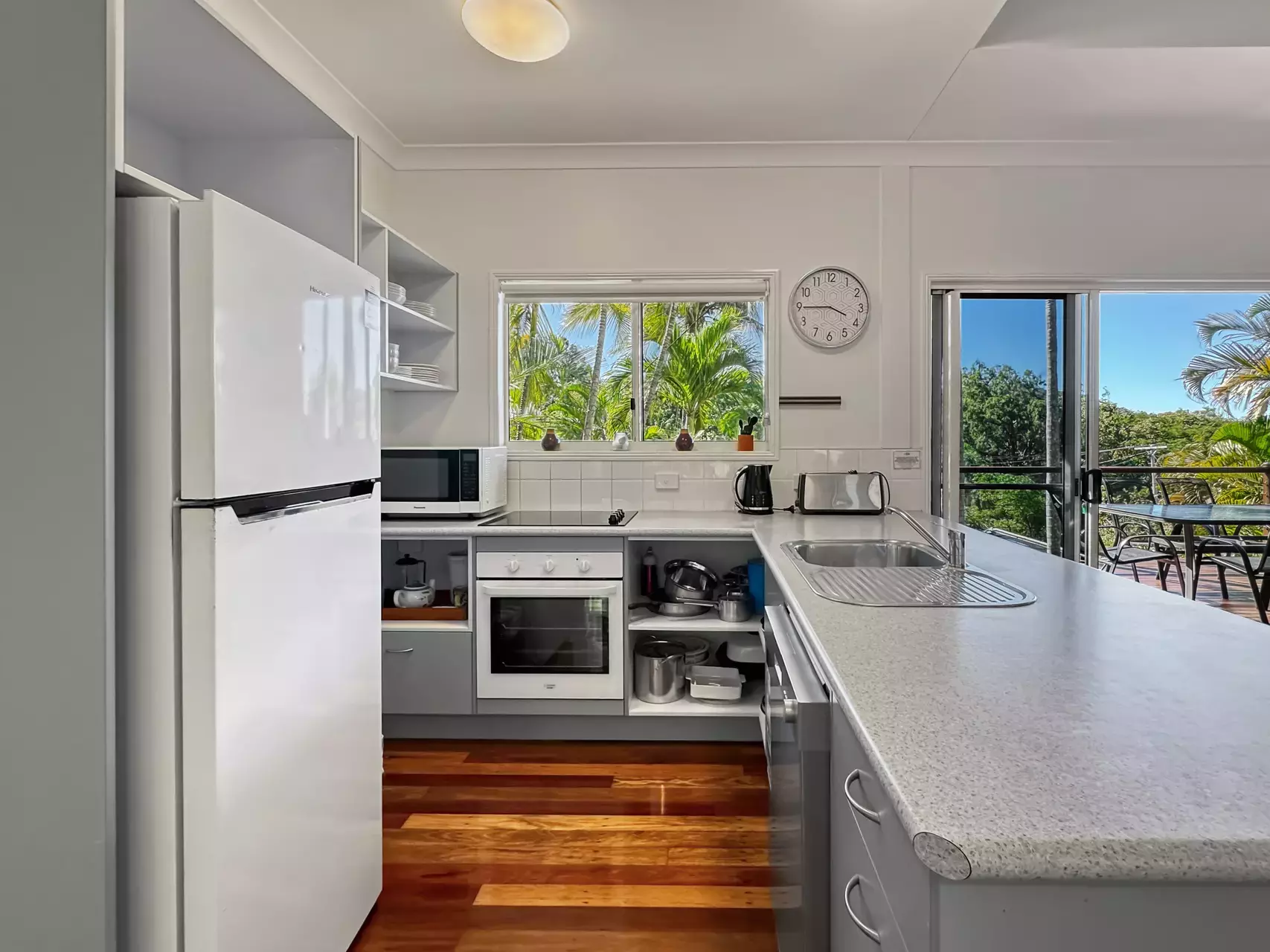 Nestled against the Nelly Bay hills & national park, this tastefully decorated two-bedroom house, offers a quite retreat and only a moments’ drive from the Nelly Bay beach, shopping facilities, medical facilities & primary school.