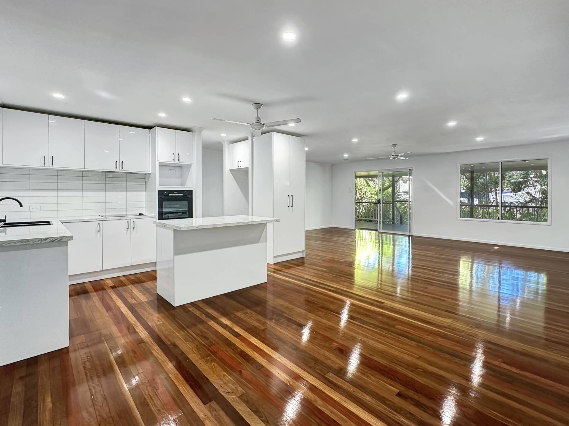 Polished hardwood floors, fresh paint and modern finishes create a light, welcoming feel throughout the home. The spacious open-plan living area flows seamlessly onto large covered decks at both the front and rear - perfect for enjoying the island breeze, entertaining friends, or unwinding after a day exploring Magnetic Island.