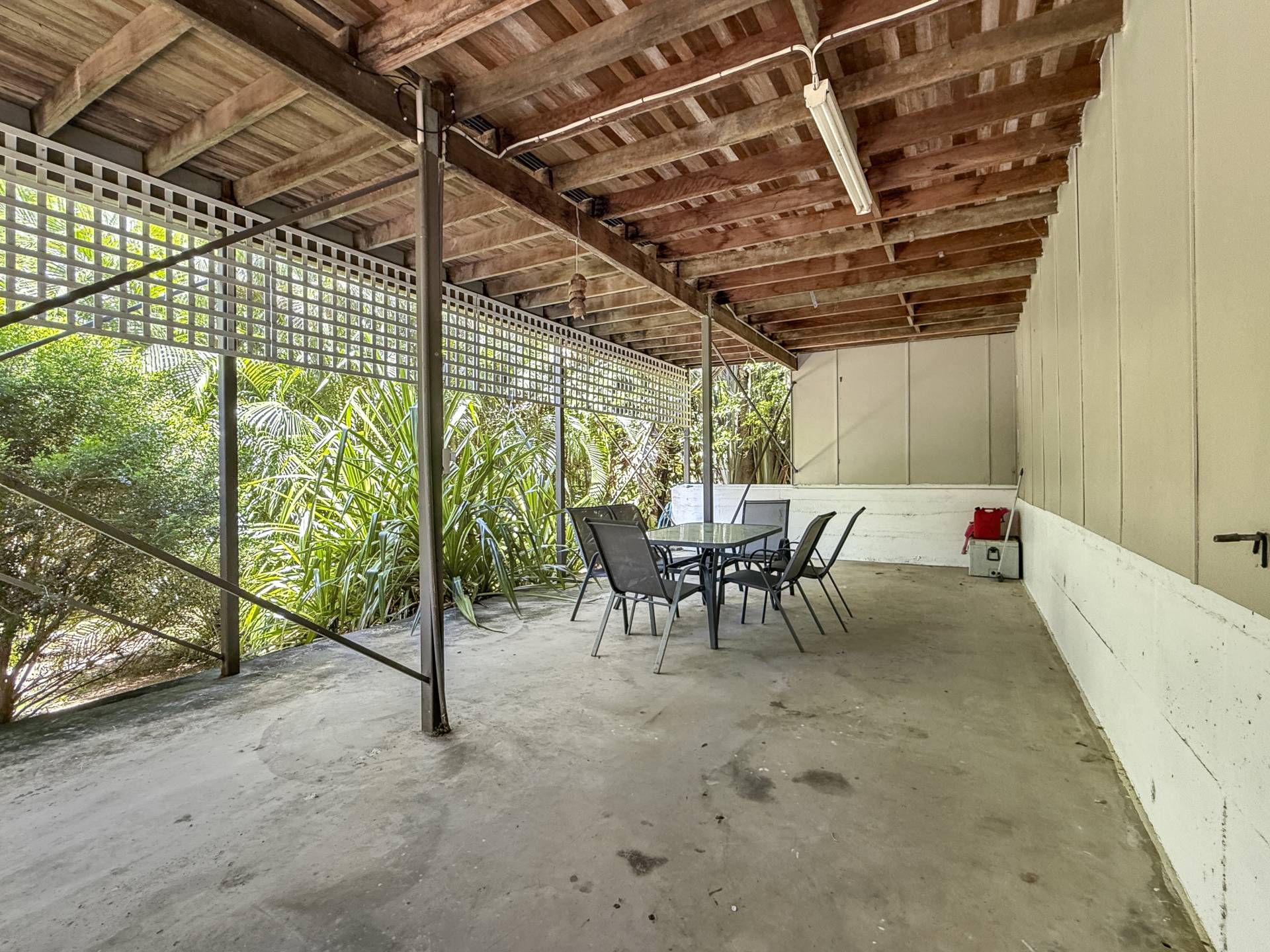 • Under the house is a large enclosed storeroom/workshop and an open entertaining area.