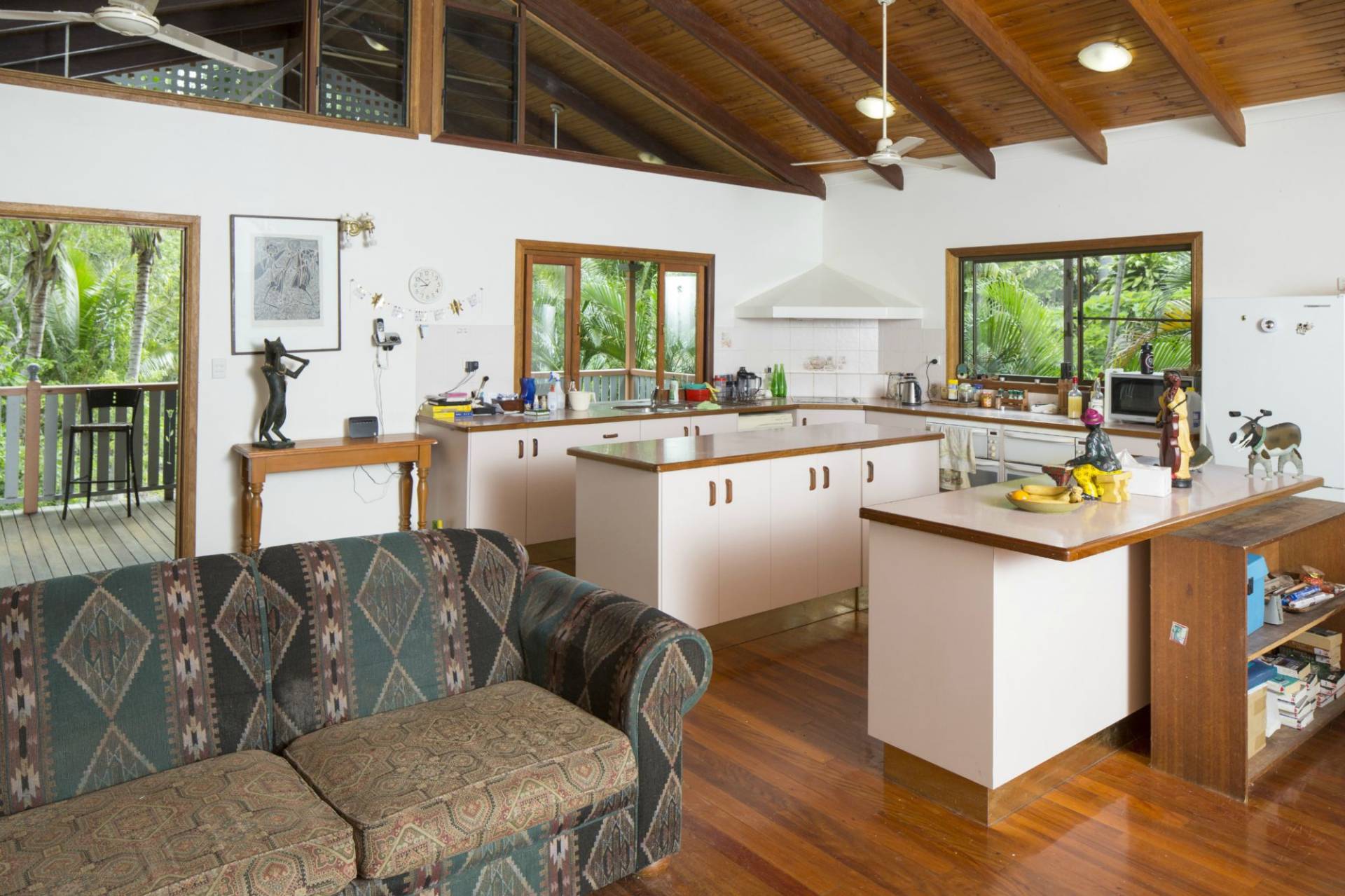 * Open-plan living and dining that opens through french doors to the deck on two sides