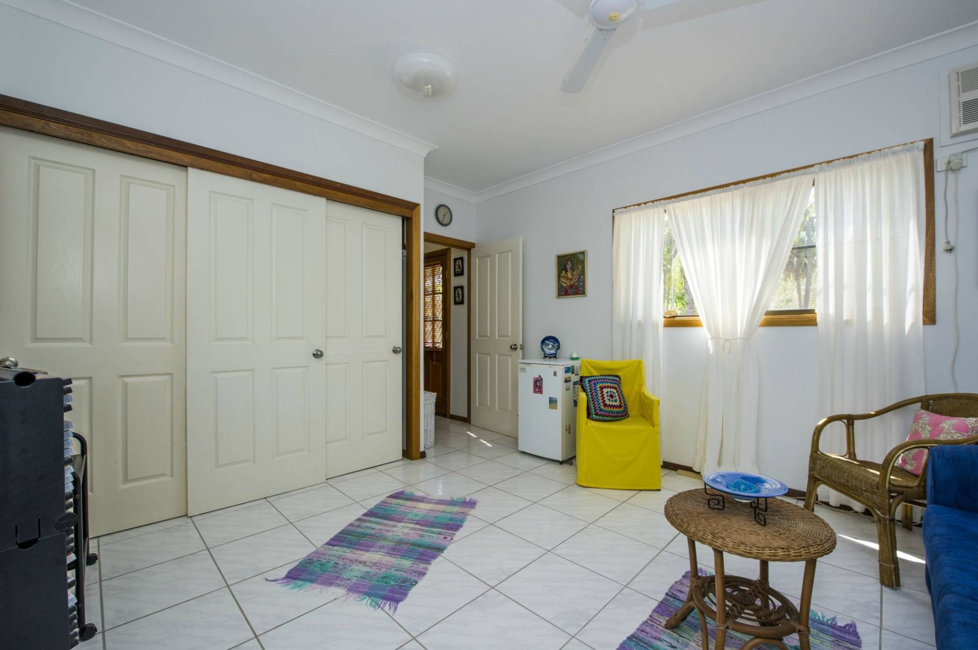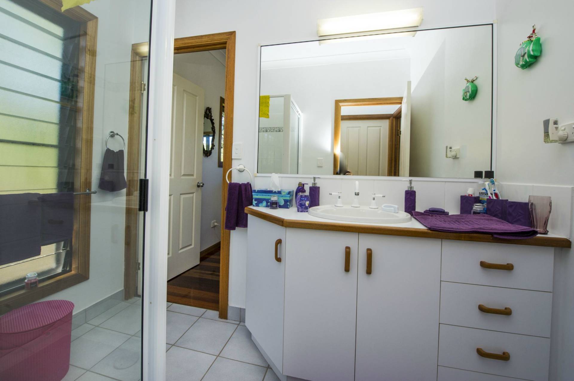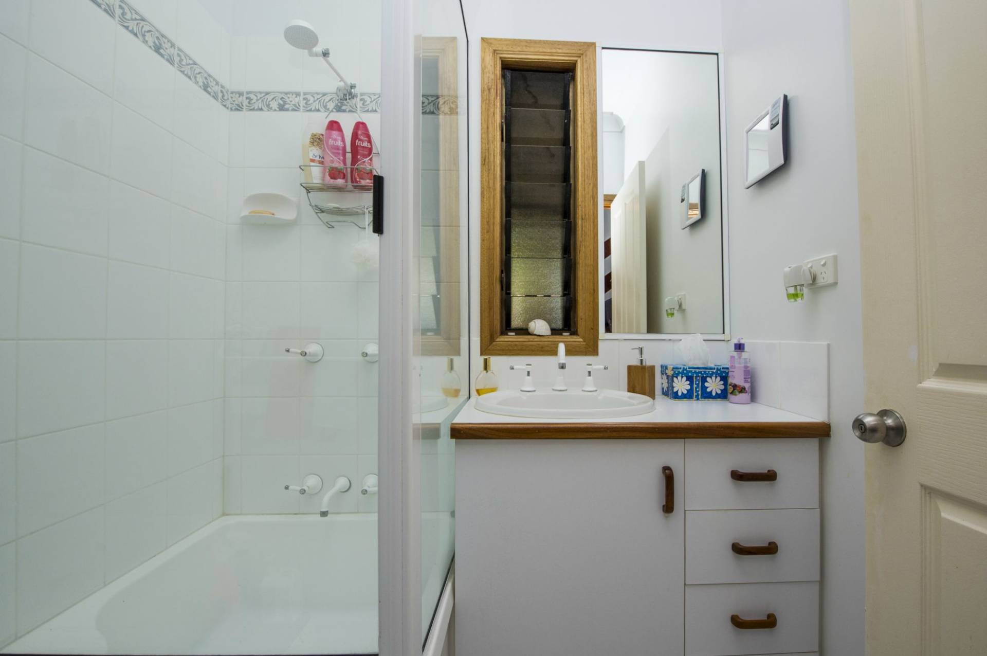 * The master bedroom is spacious with built-in-wardrobes, air-conditioning and windows on two sides, as well as french doors onto the back deck. The ensuite bathroom is two-way and features a shower and vanity with an adjoining separate toilet.