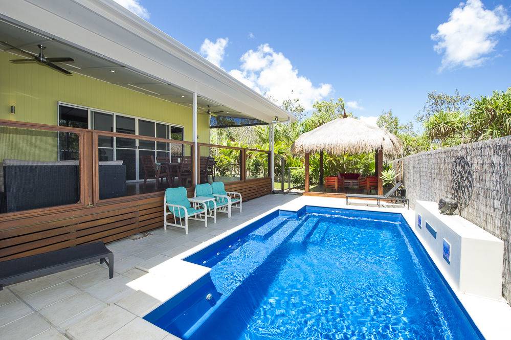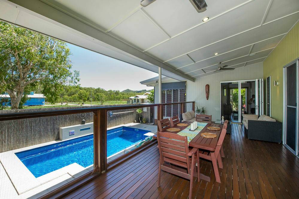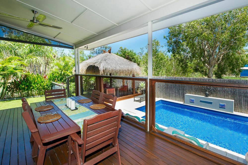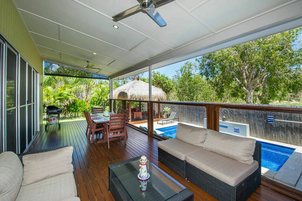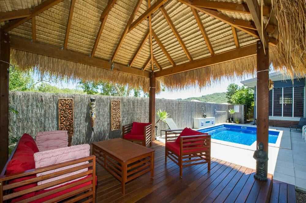 * Superb undercover deck overlooks the in-ground swimming pool with water feature. Relax on the deck or in the Bali-style gazebo while the kids play in the pool.