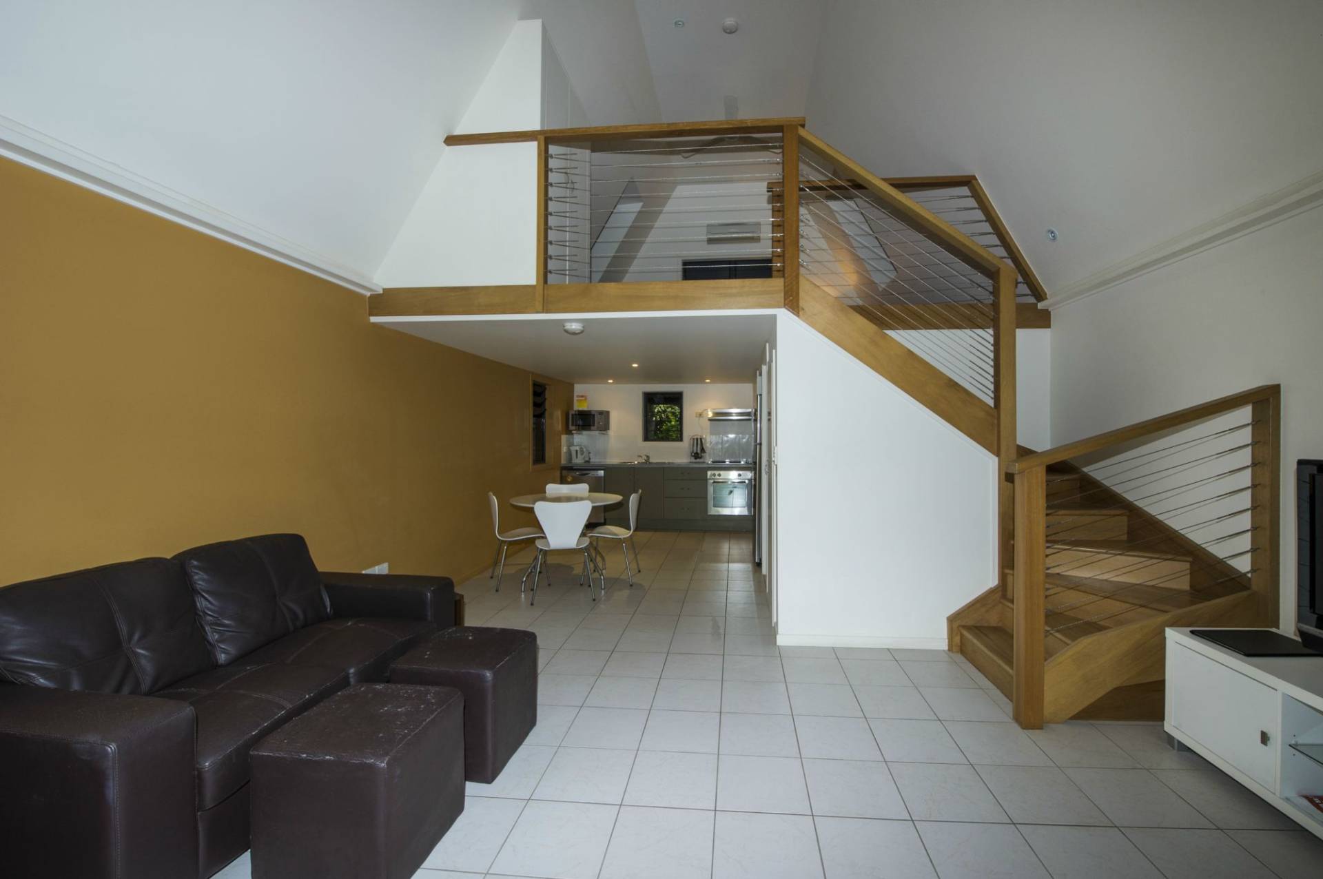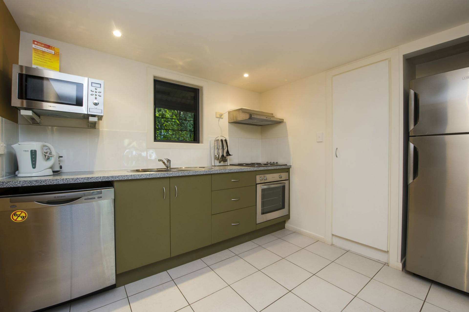 Each unit has a lovely covered deck overlooking the gardens and pool with open-plan living area with a double height A-frame ceiling providing a spacious feel to the unit. The kitchen is fully equipped with electric cooktop, oven and dishwasher and the dining area fits nicely between the lounge and kitchen.