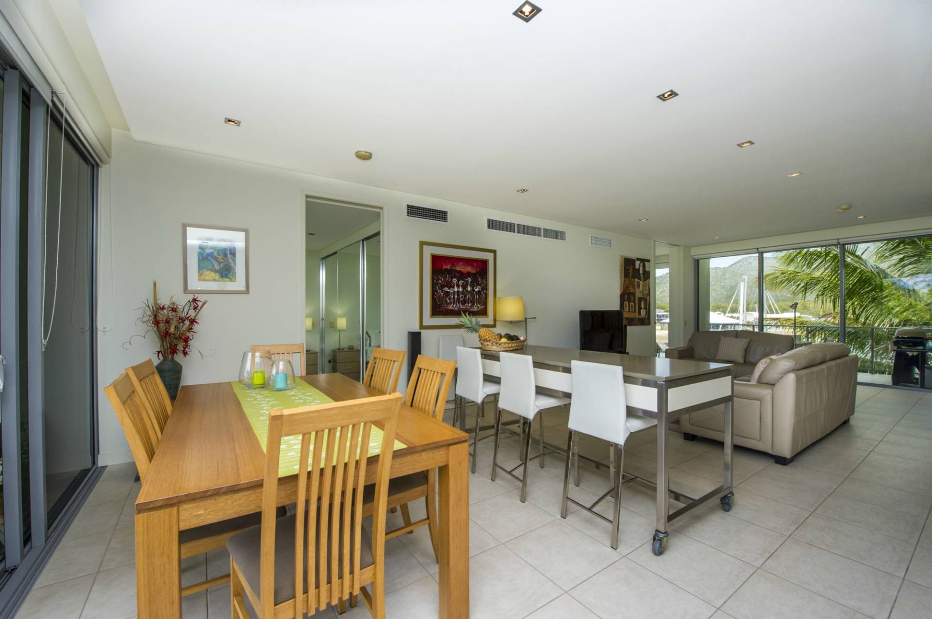 This top floor three bedroom apartment boasts exceptional views across the Magnetic Island Marina and Coral Sea with the green boulder-strewn hills of Magnetic Island as a backdrop.