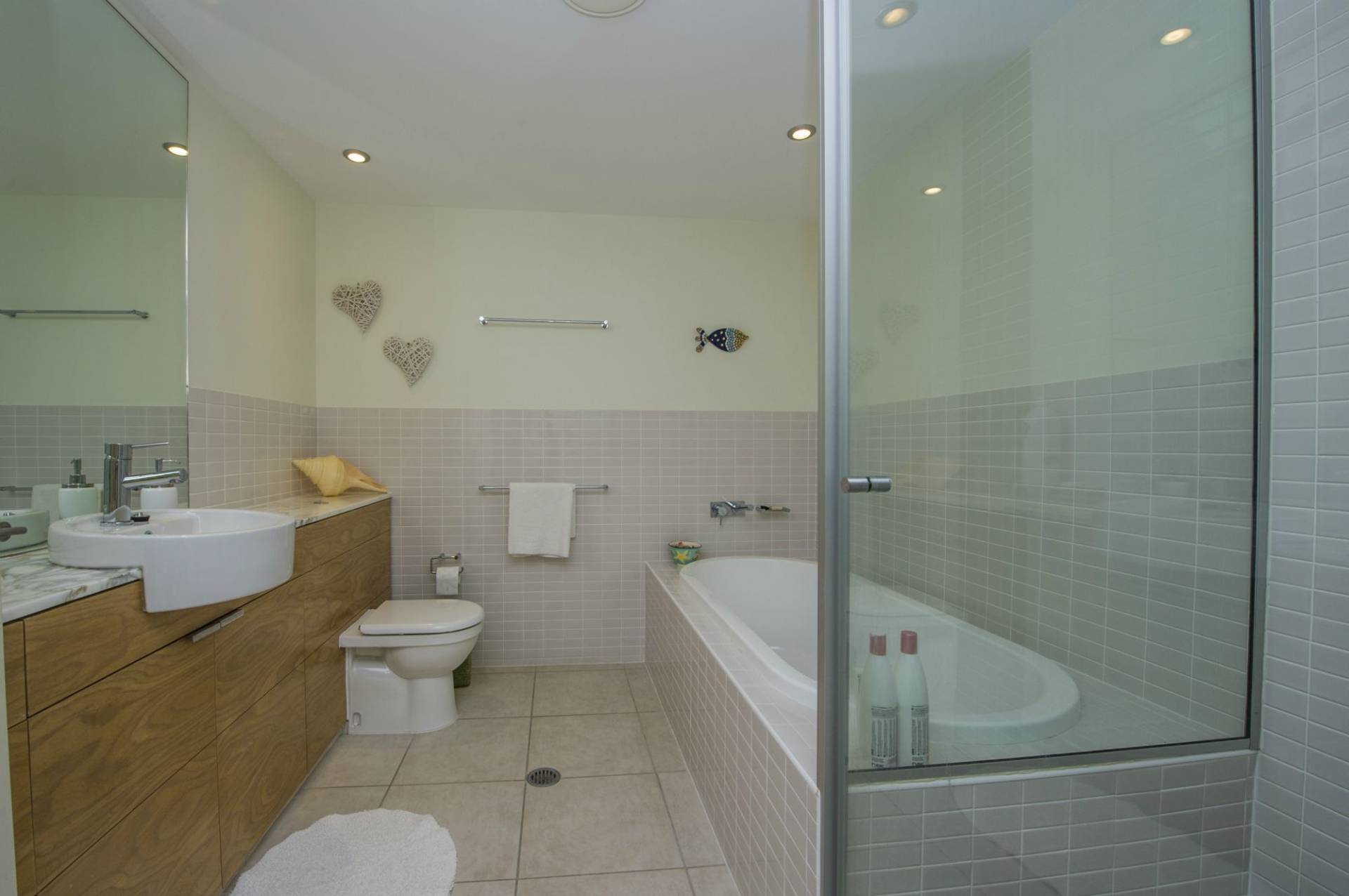 The master bedroom also opens up onto the front verandah with magnificent water views across the masts of the sailing boats moored in the marina. The stylish ensuite bathroom features a free-standing bath, separate shower and private WC.