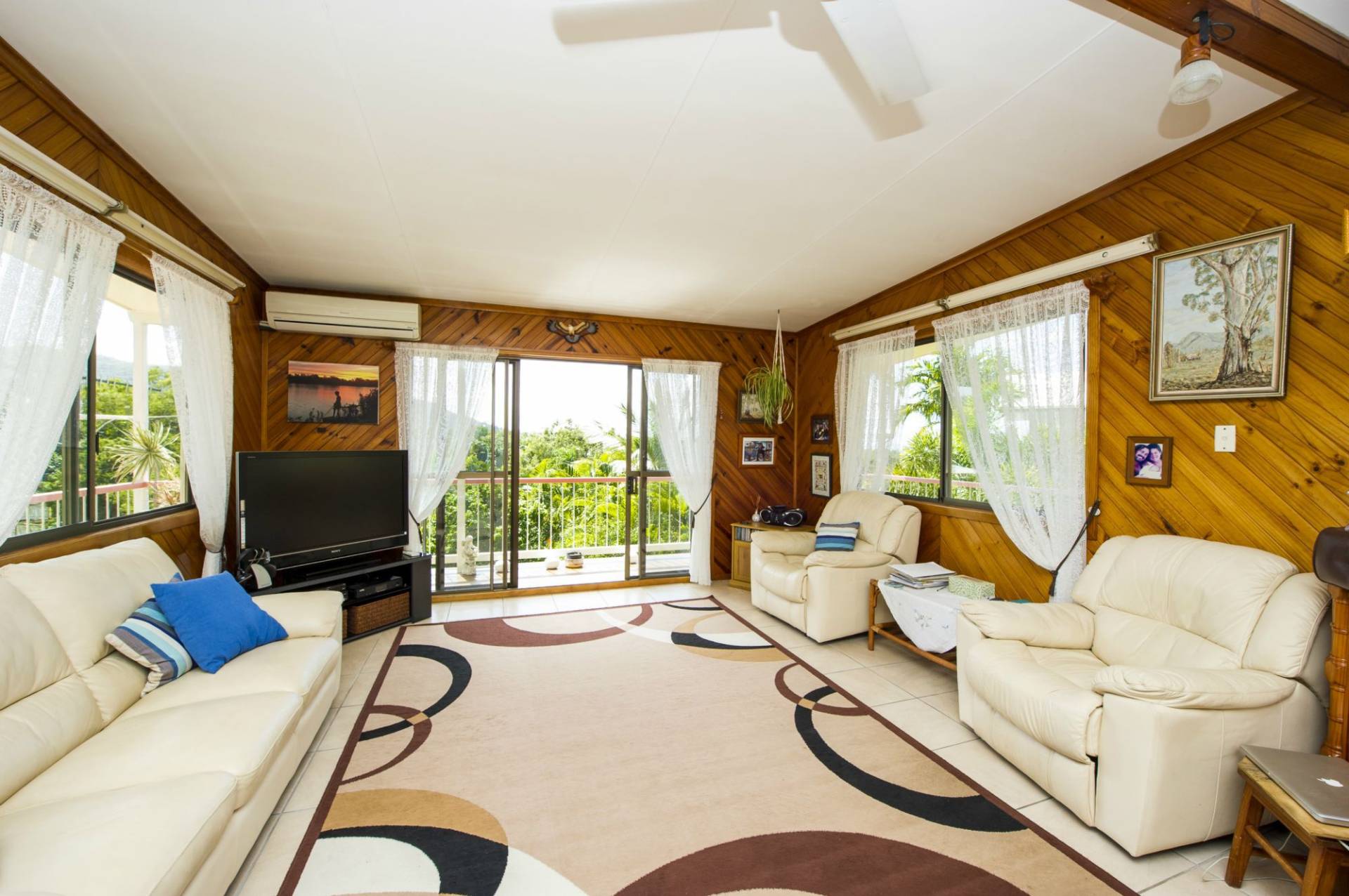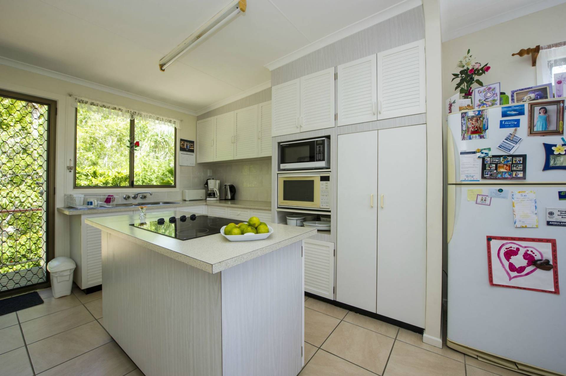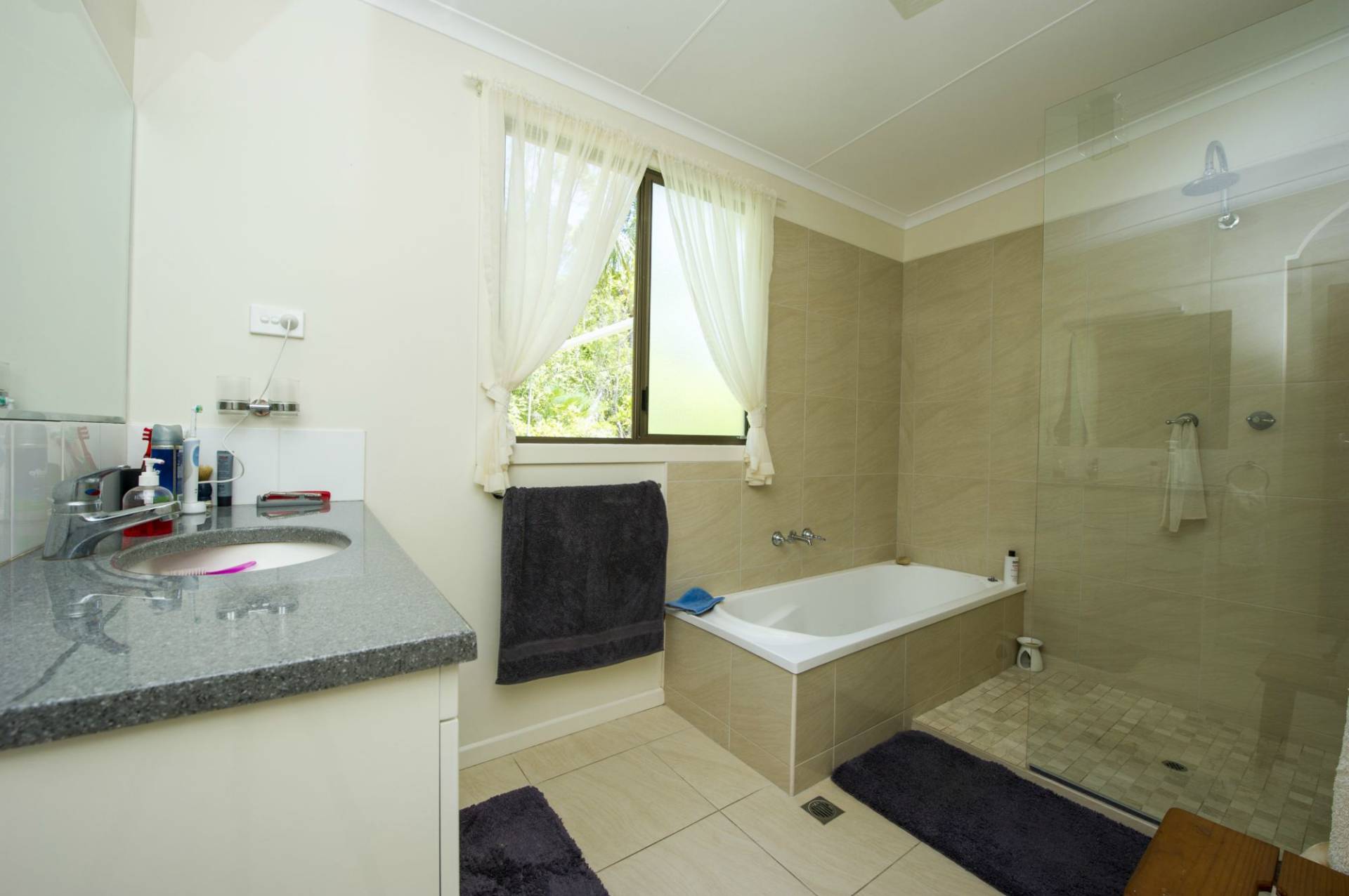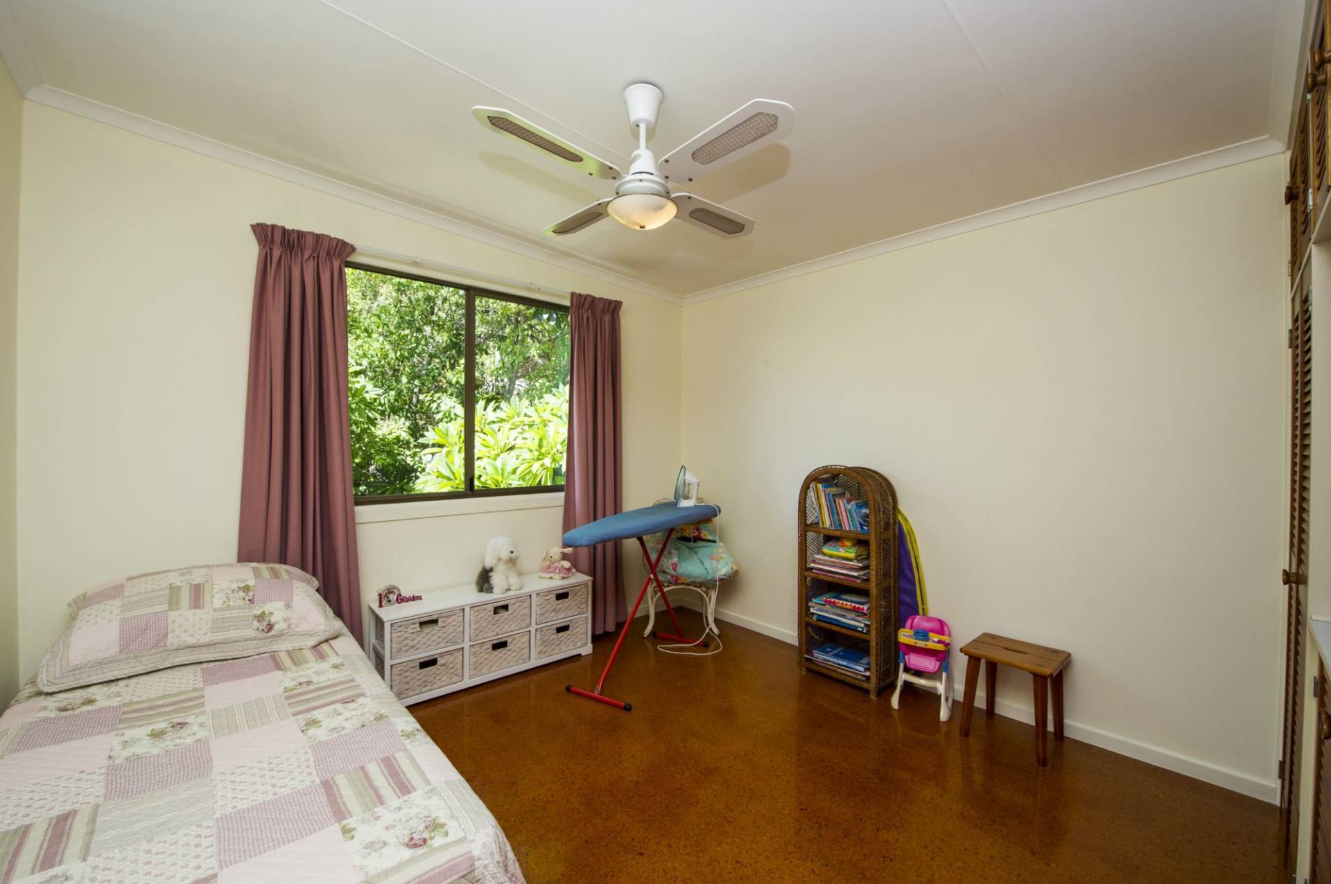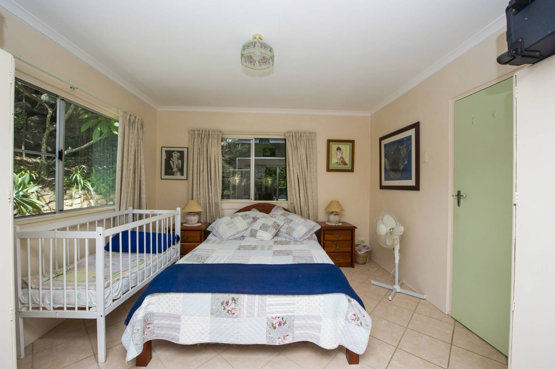 Backing onto National Park, this two storey home nestles into the hillside, offering lovely ocean views from the upstairs balcony.