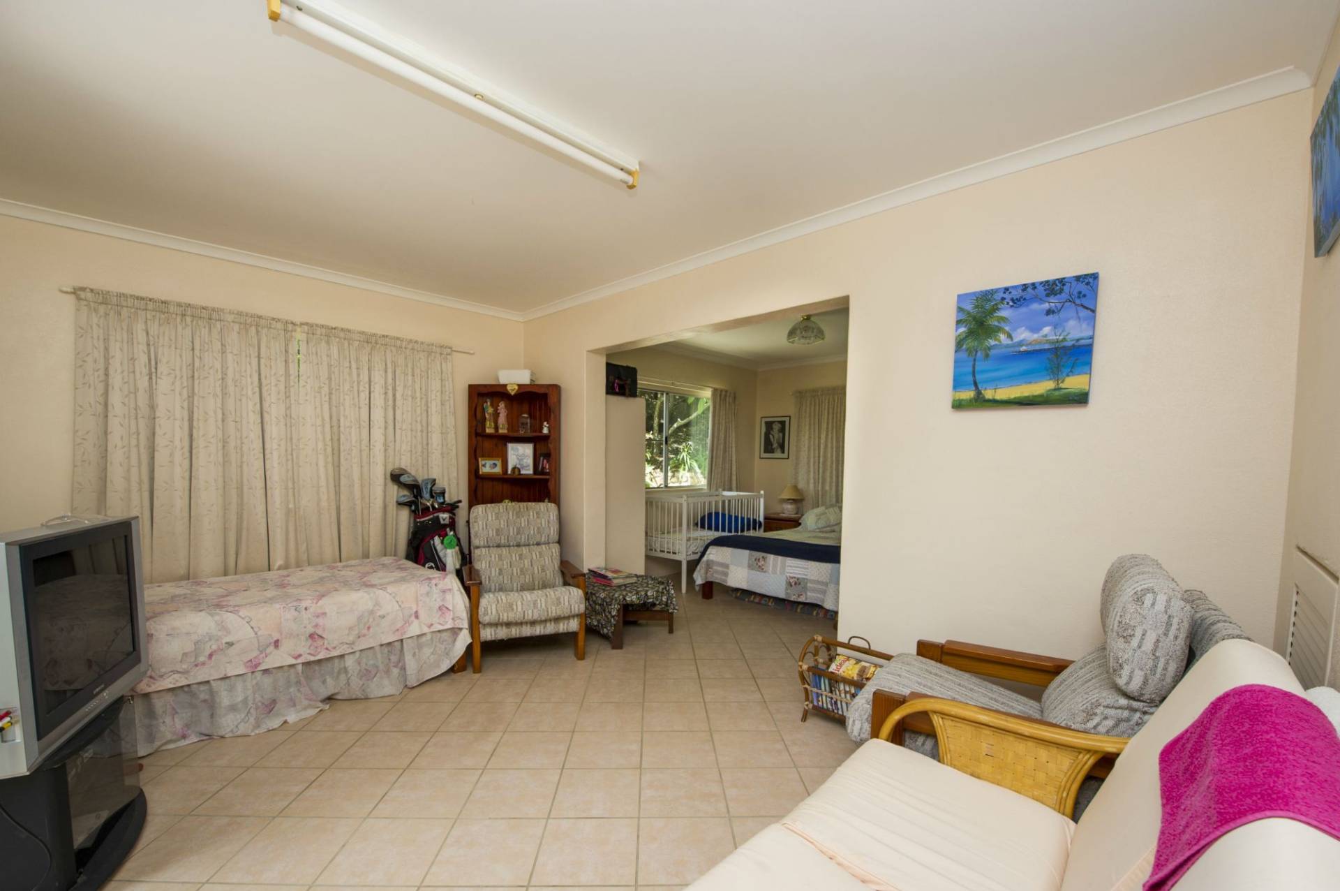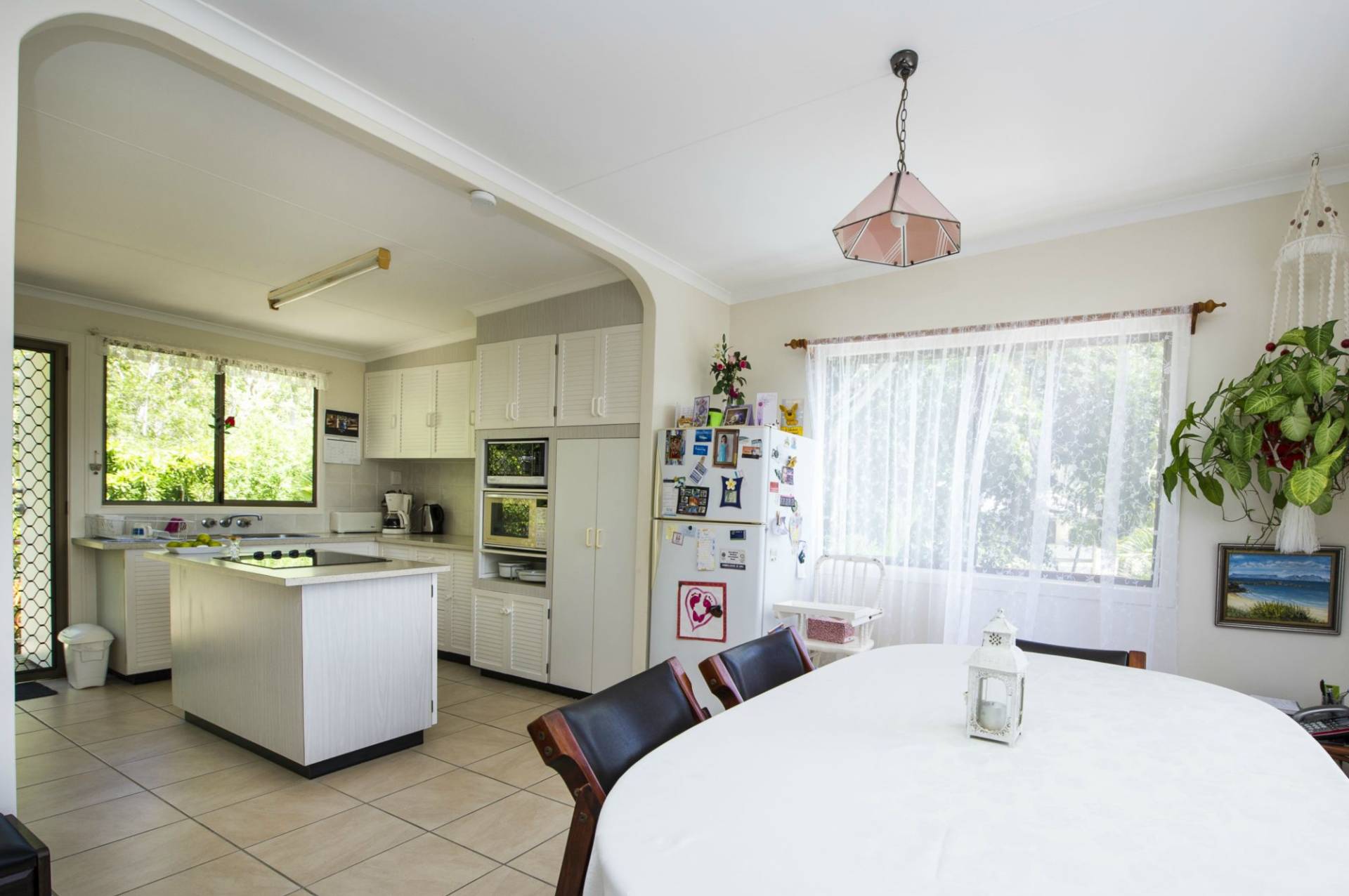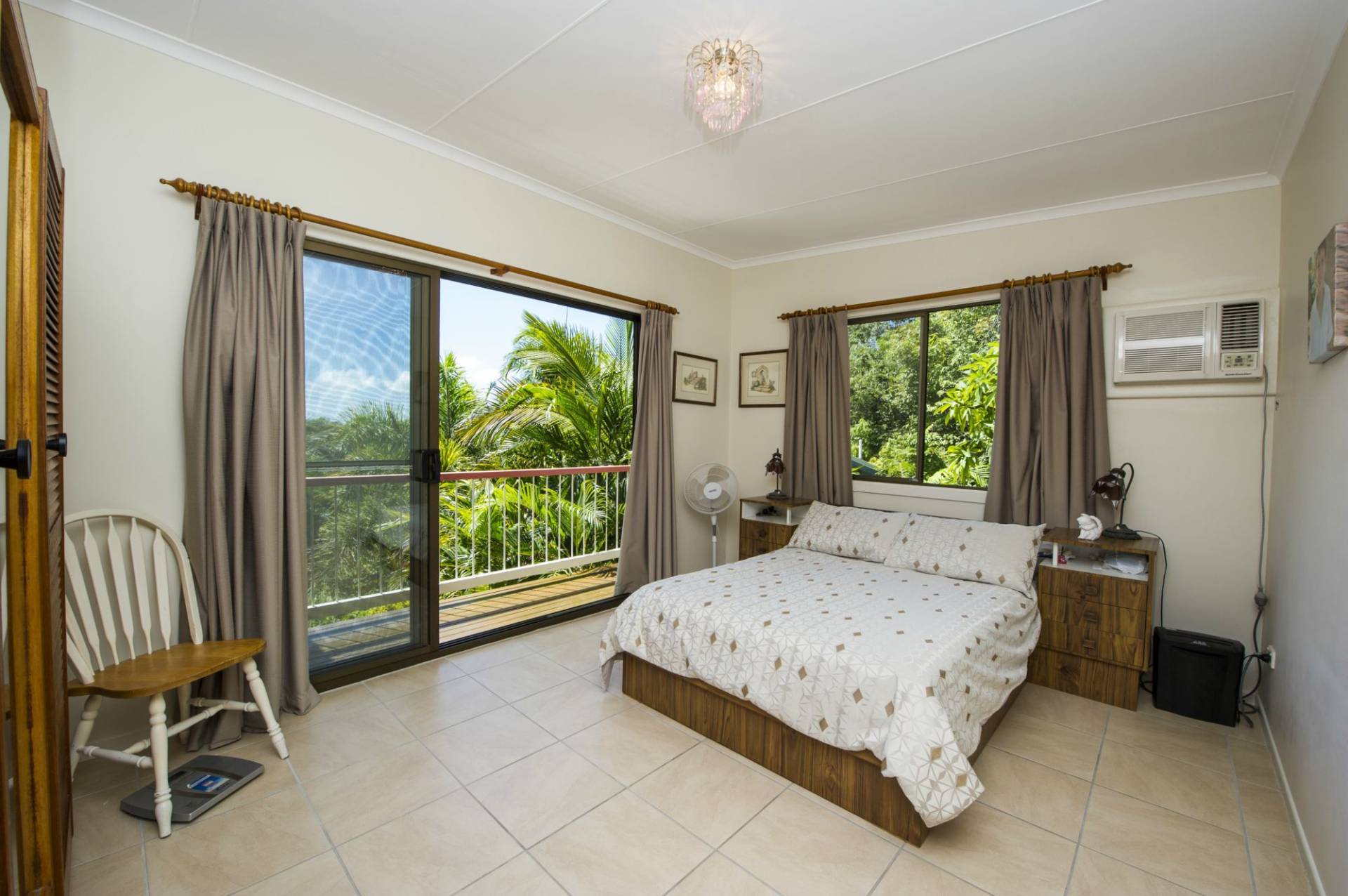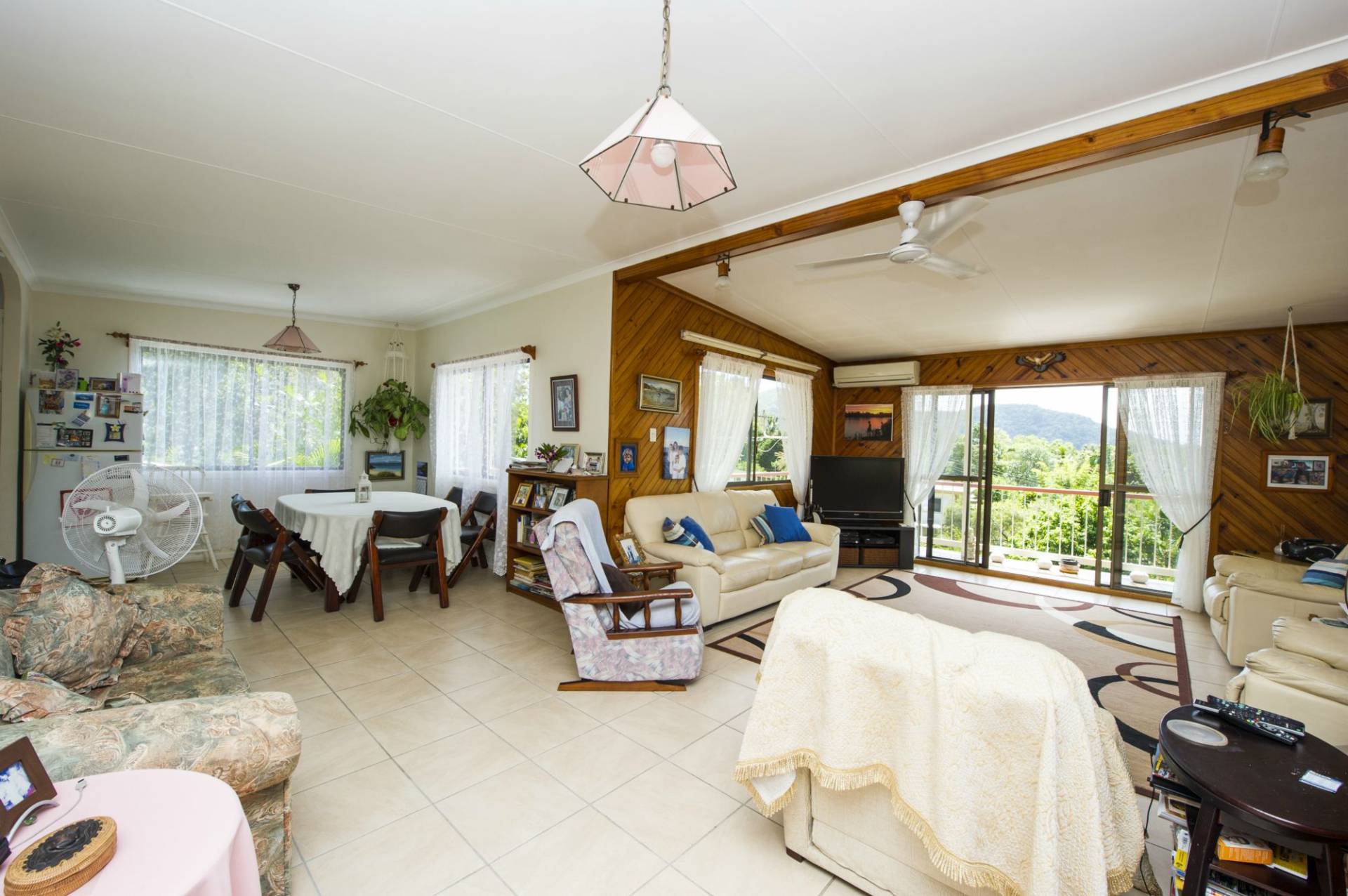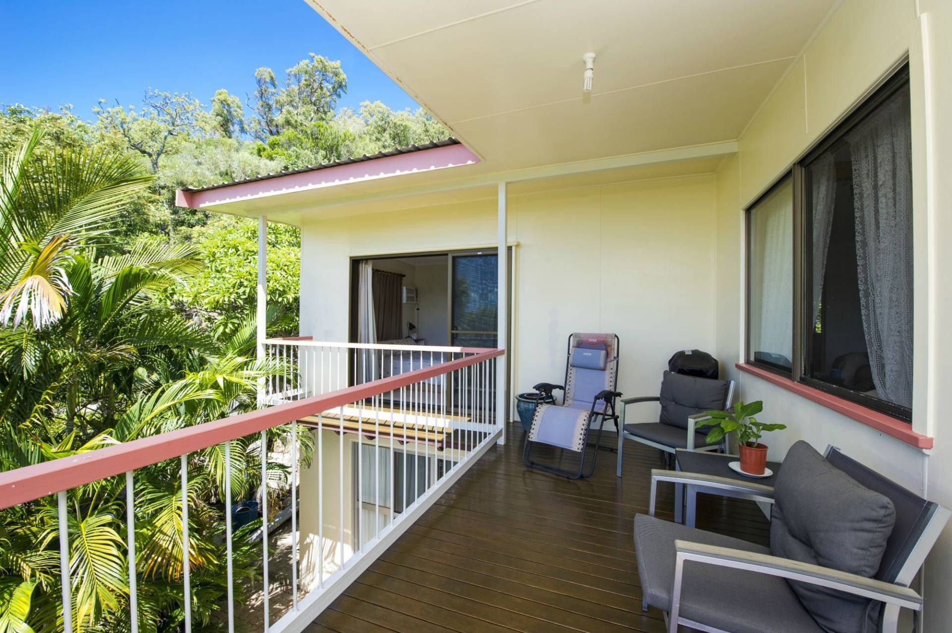 Backing onto National Park, this two storey home nestles into the hillside, offering lovely ocean views from the upstairs balcony.