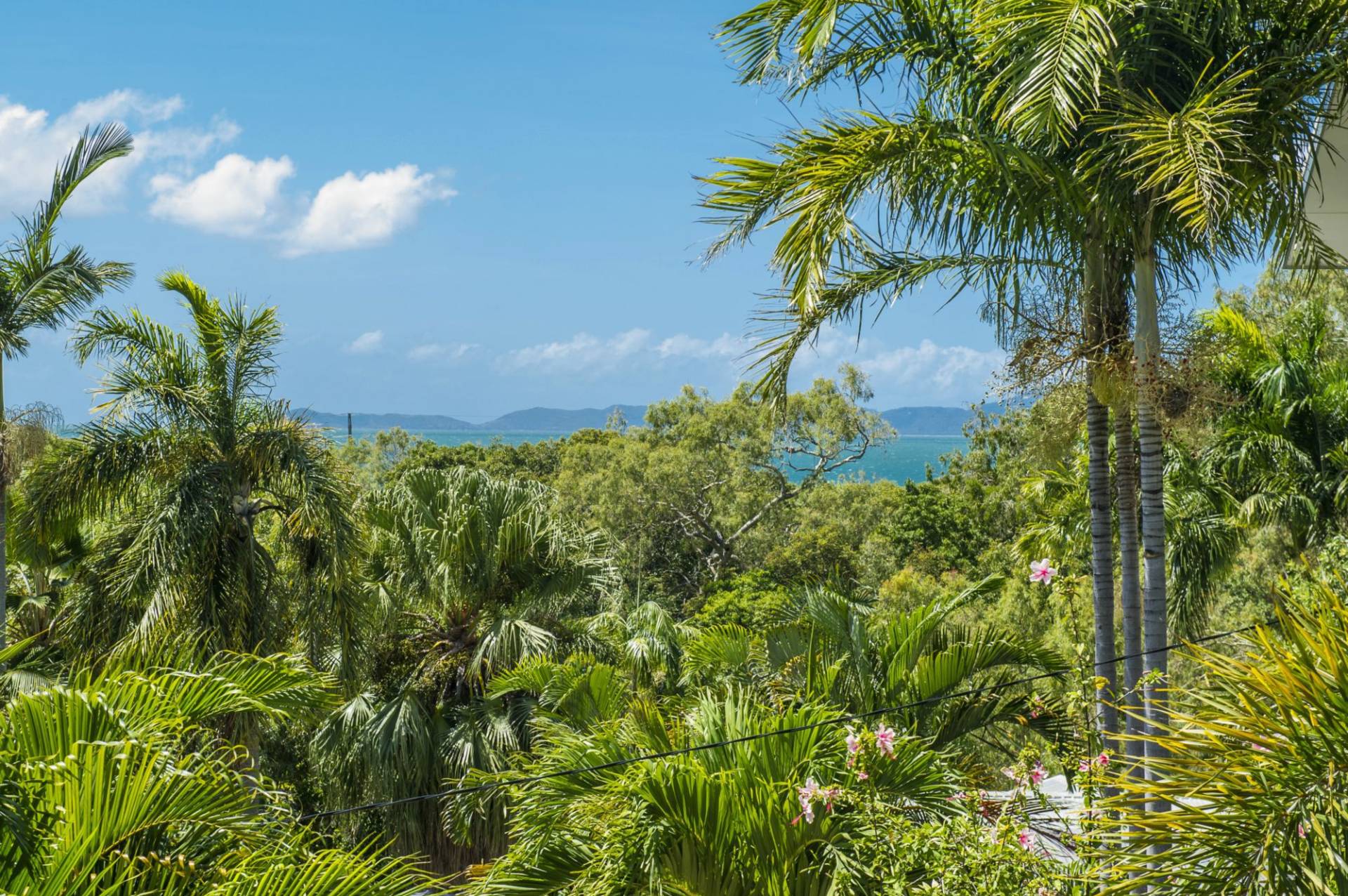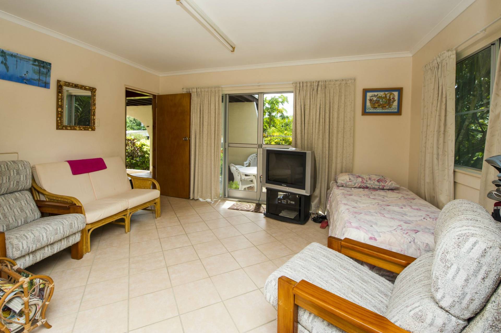 * Internal stairs lead to a spacious open-plan living area which is filled with light and cool sea breezes with plenty of windows and doors opening onto the front balcony from where you can see water views and a beautiful mountain backdrop. The living area is air-conditioned and tiled and flows through to the dining area and kitchen.