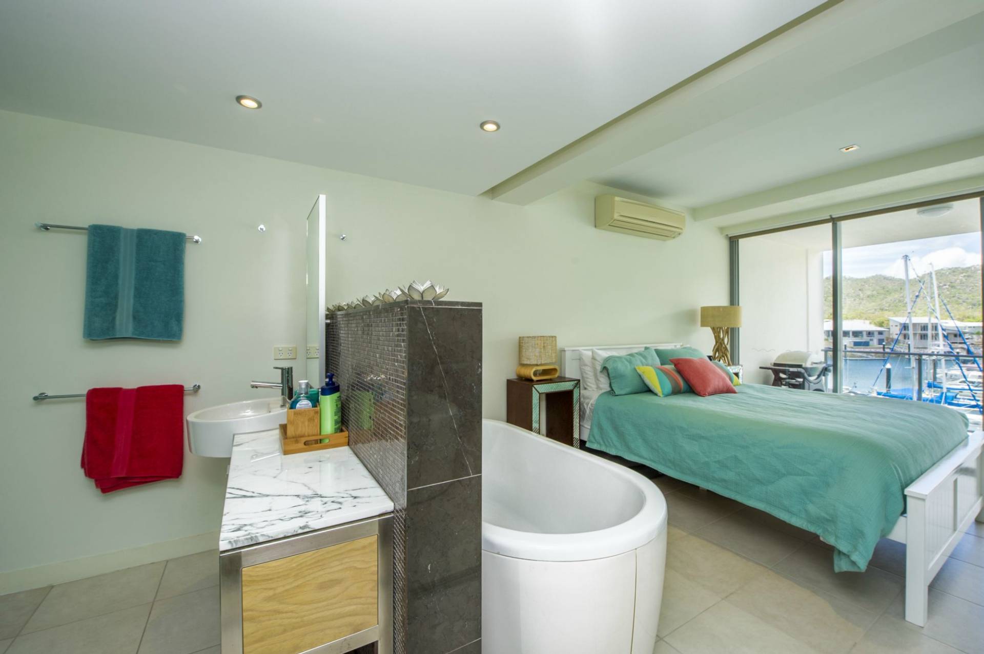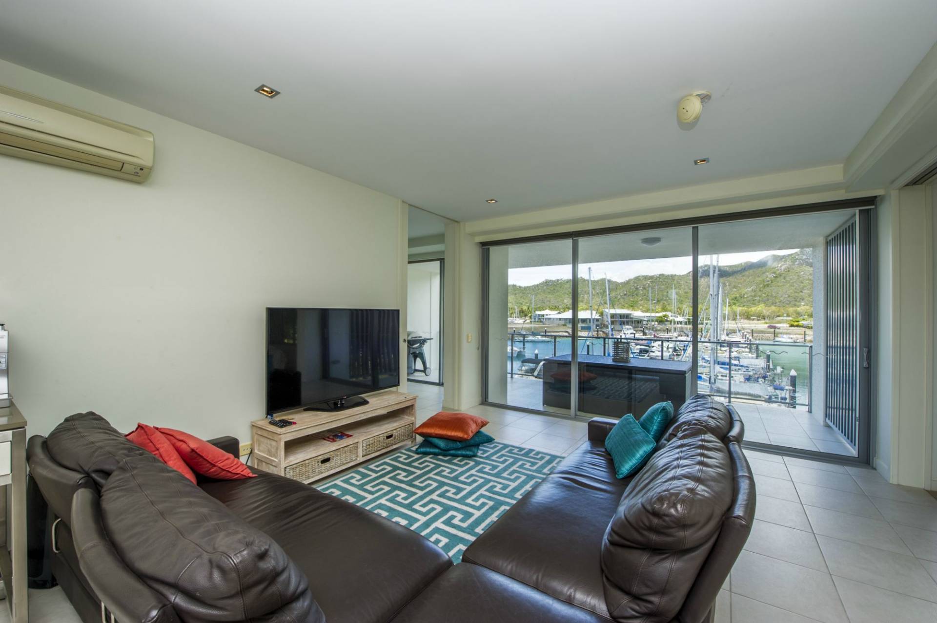 This second floor three bedroom apartment boasts exceptional views across the Magnetic Island Marina and Coral Sea with the green boulder-strewn hills of Magnetic Island as a backdrop.