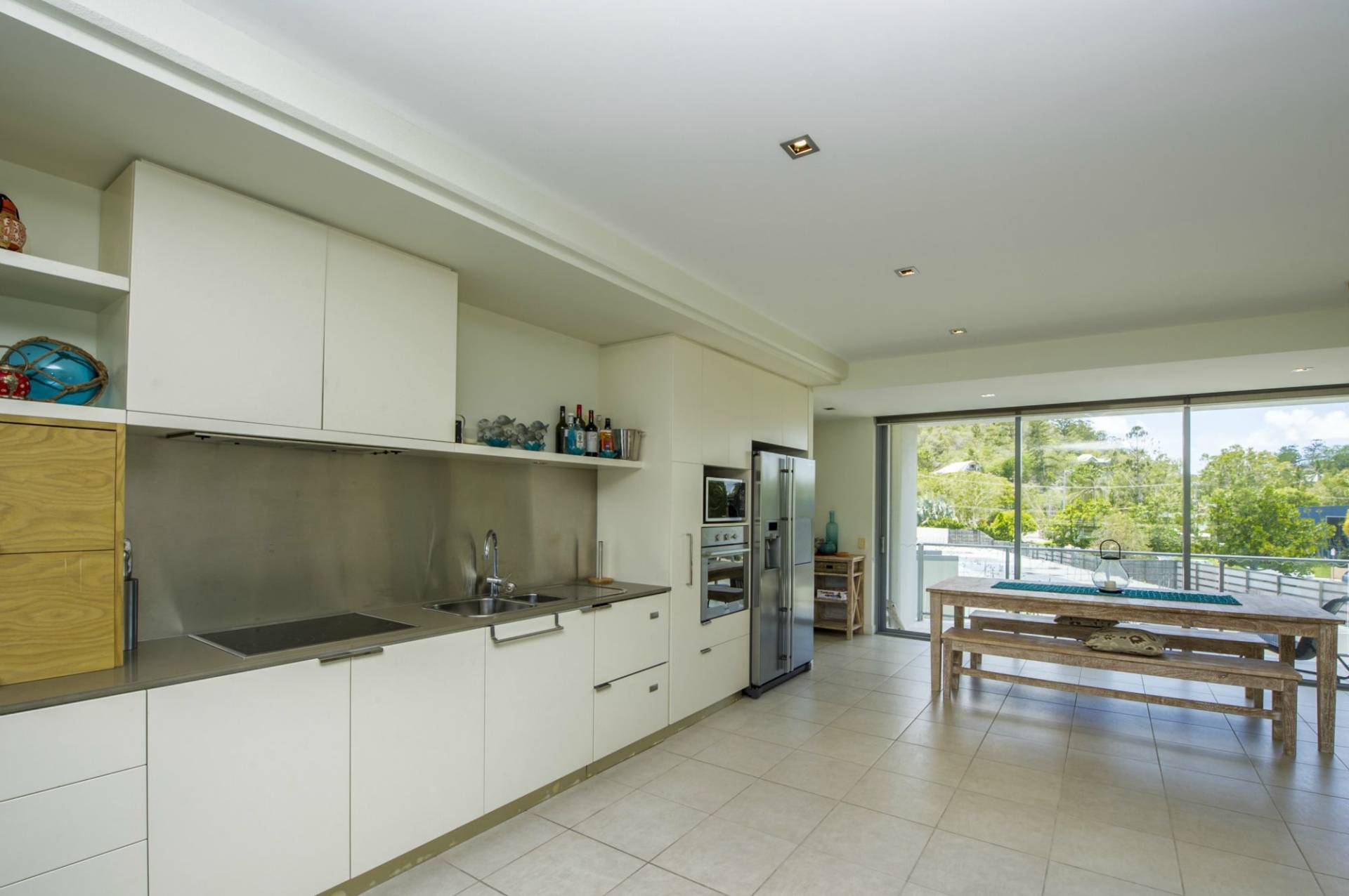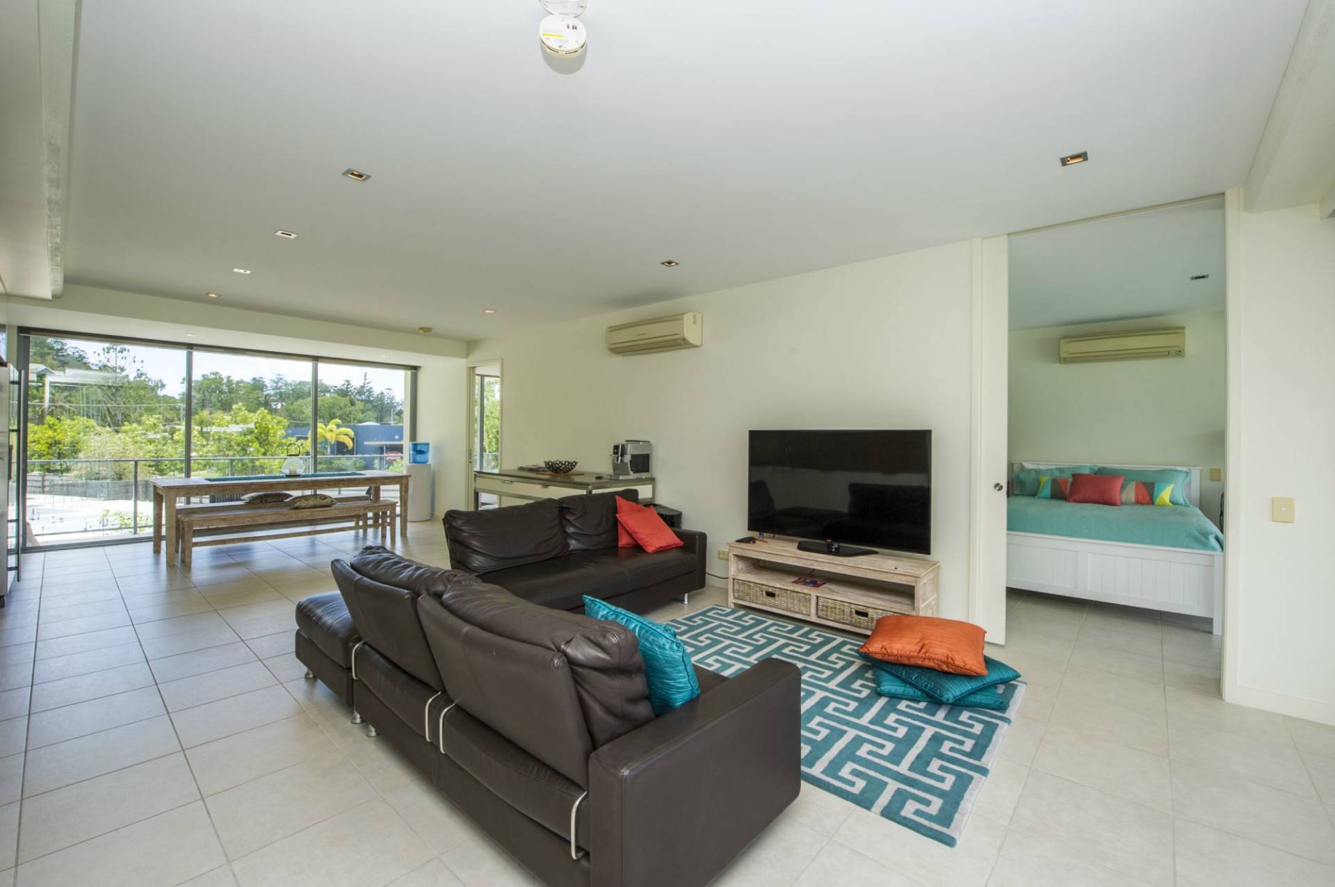 The apartment is offered fully furnished, ready to move into or let out, or simply as your private Island getaway. The open-plan living area opens up through floor-to-ceiling glass doors at either end onto spacious covered verandahs allowing the cross-breeze to flow through and bringing plenty of light in.