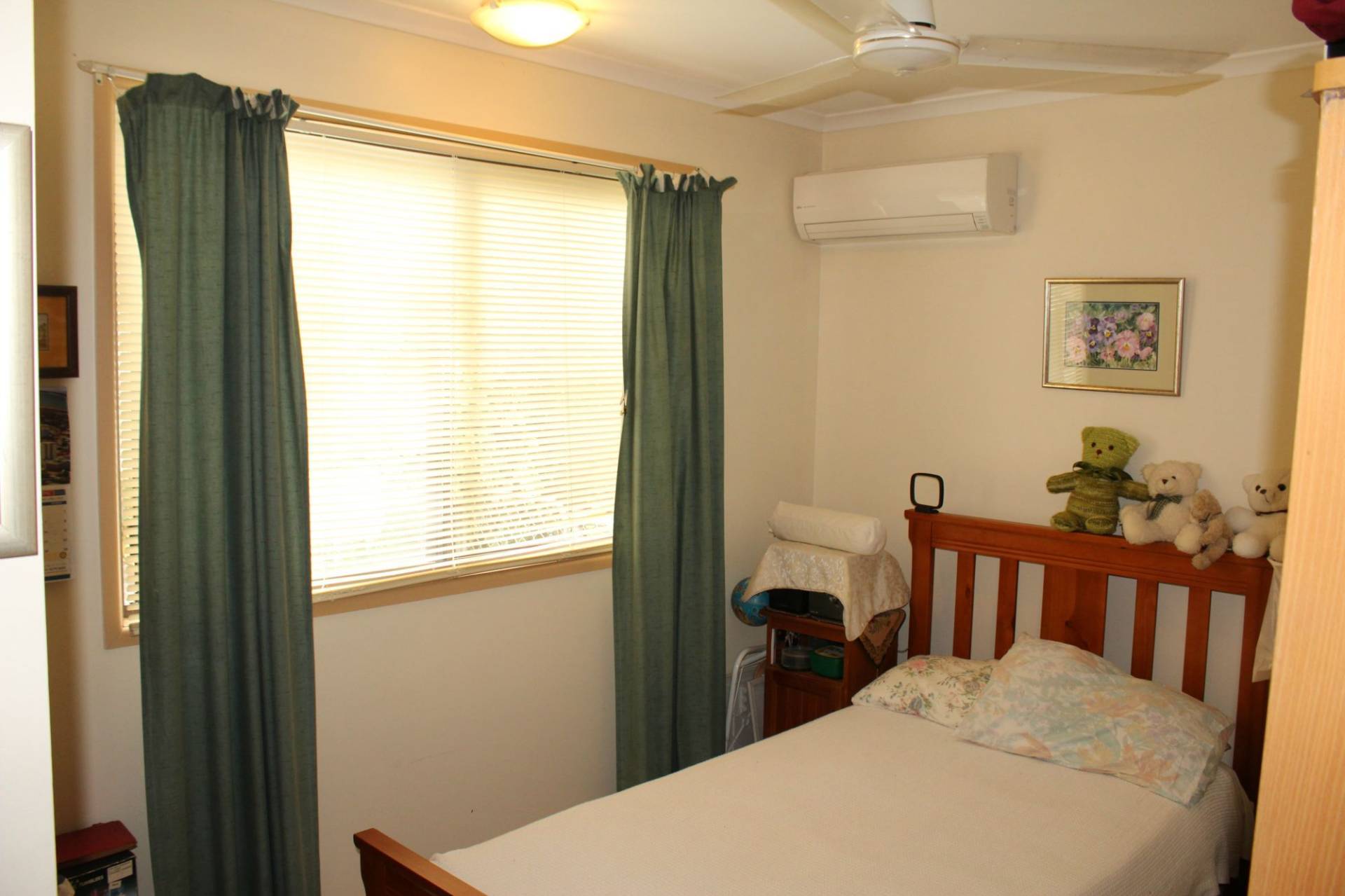 * Ceiling fans and split system air-conditioners to bedrooms and living area
