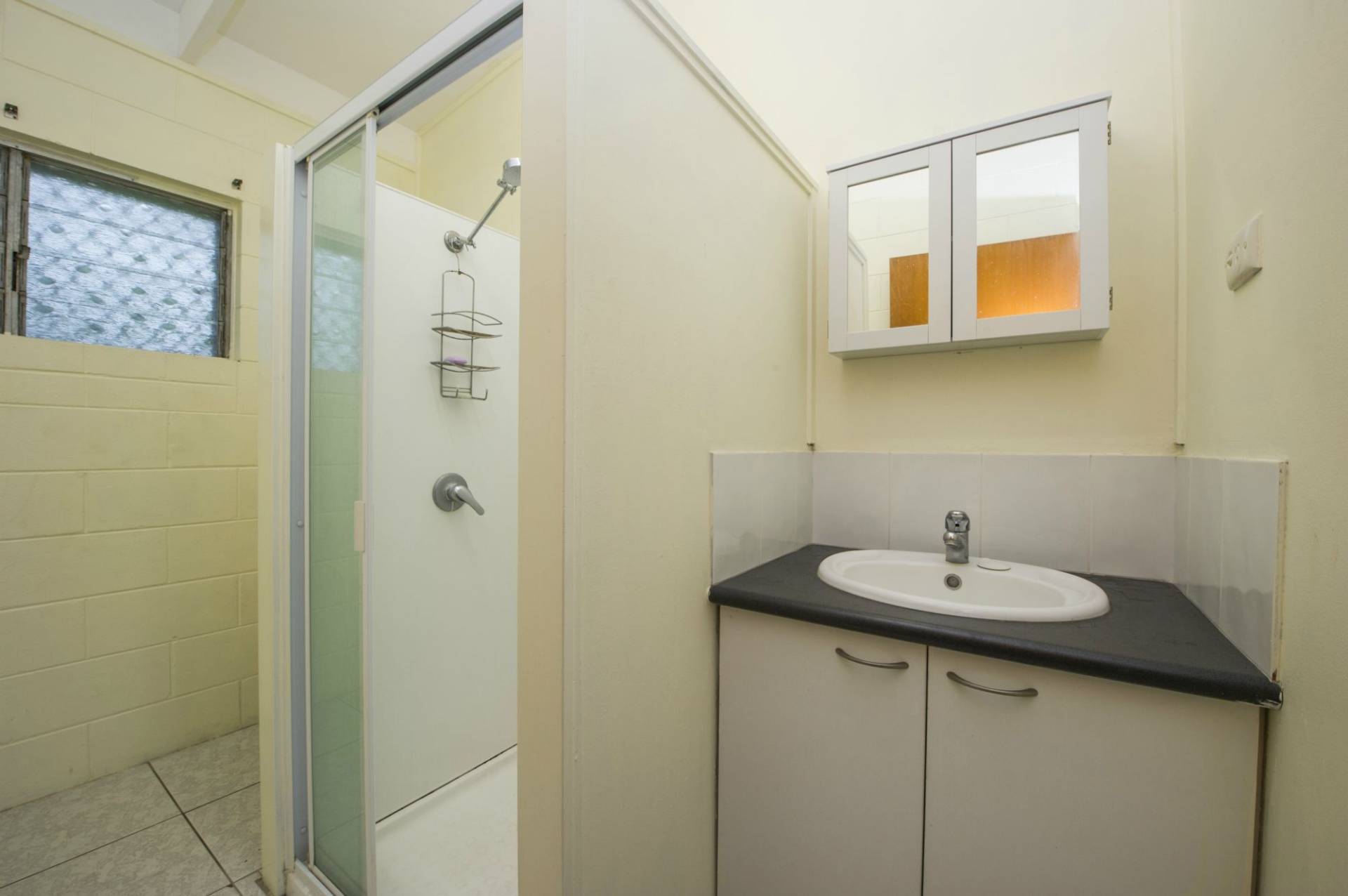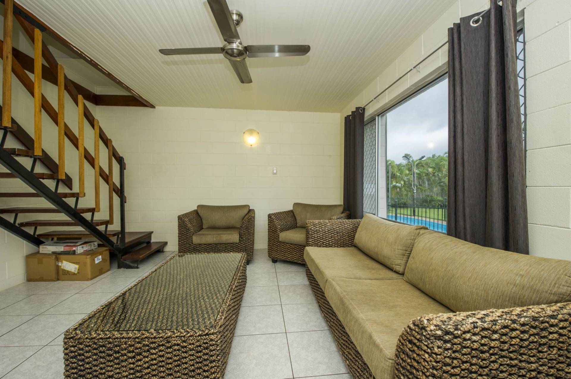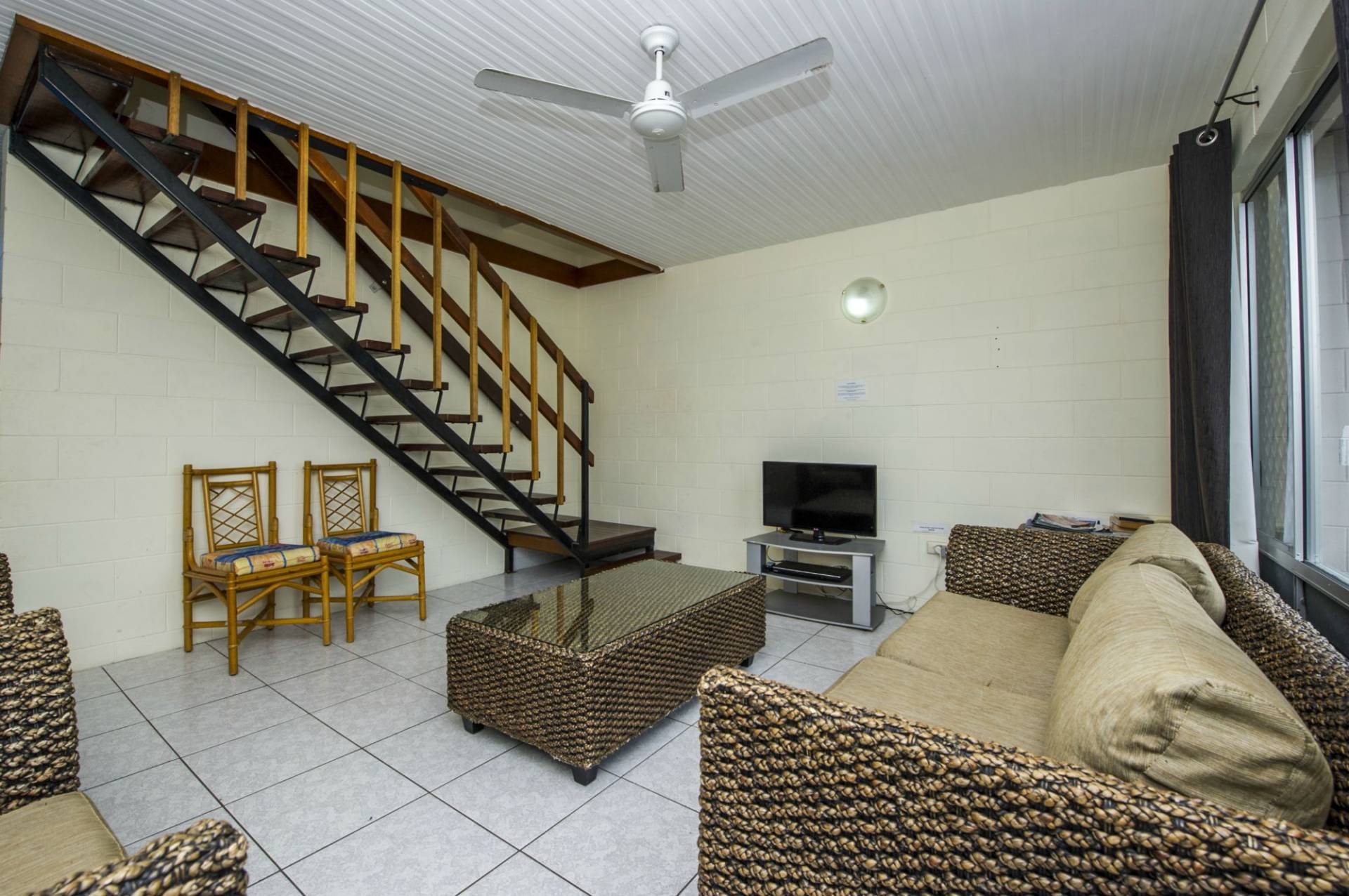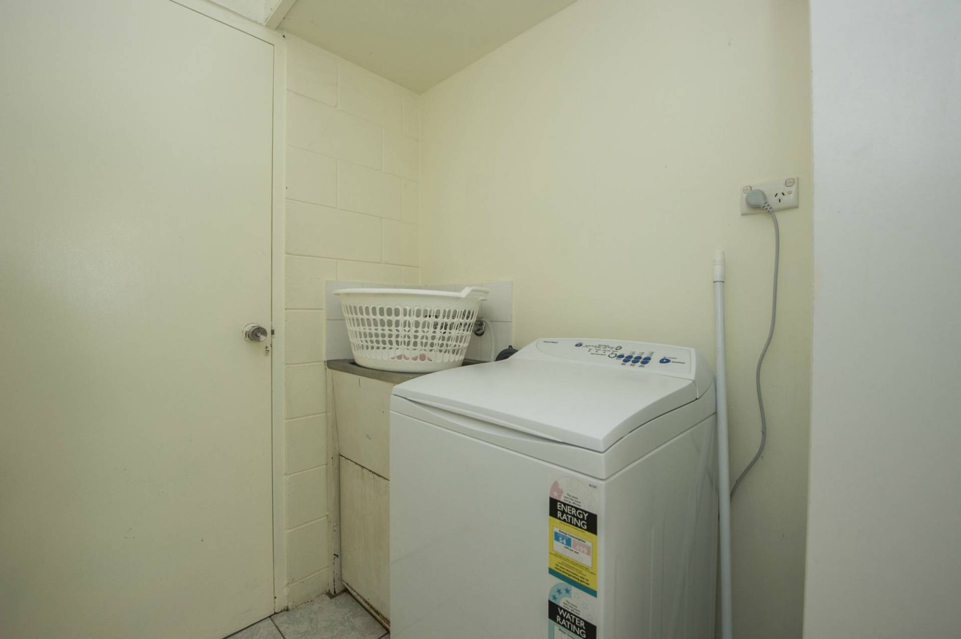 * Solid block construction with living, kitchen and laundry downstairs and two bedrooms and bathroom upstairs