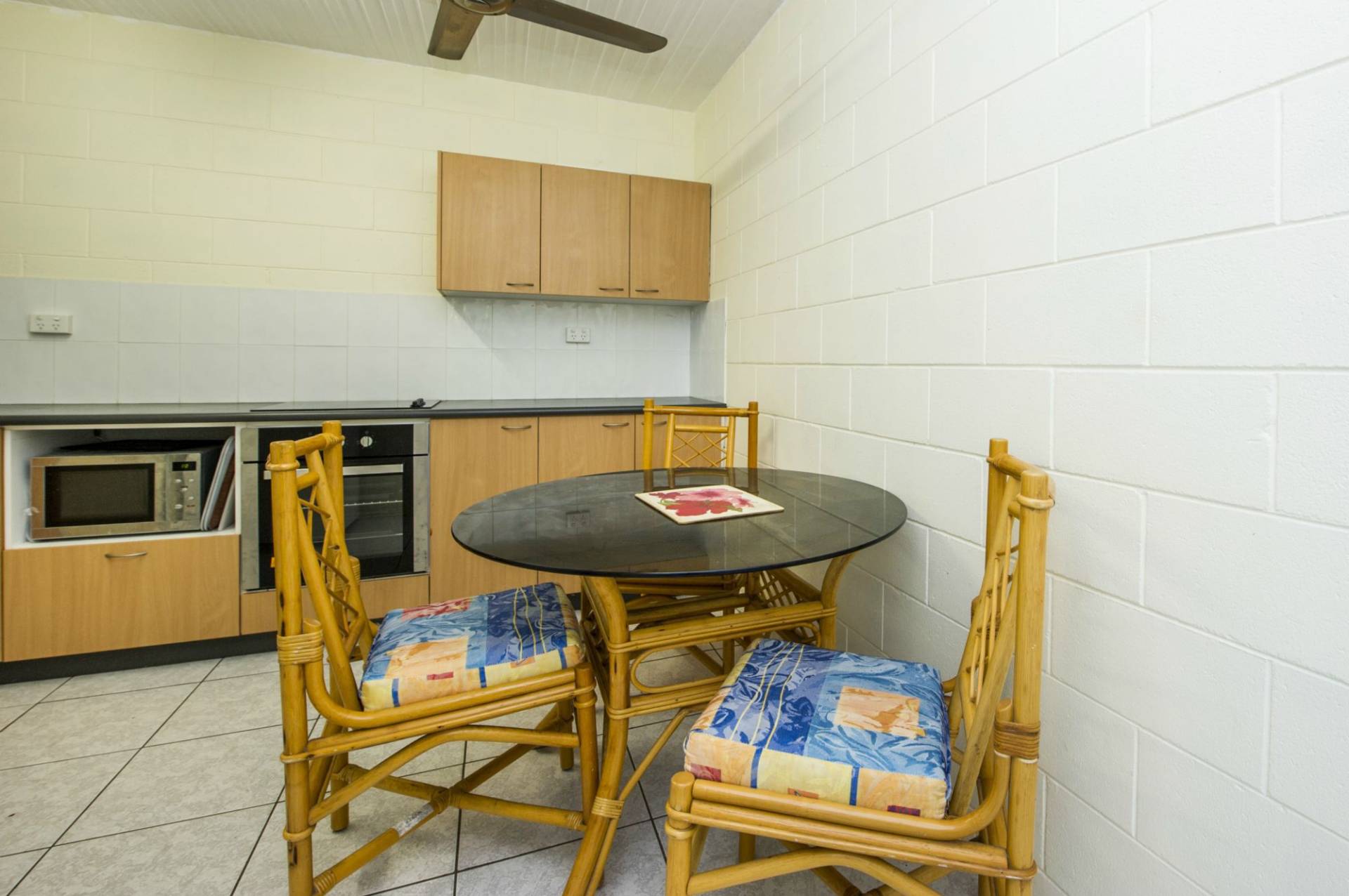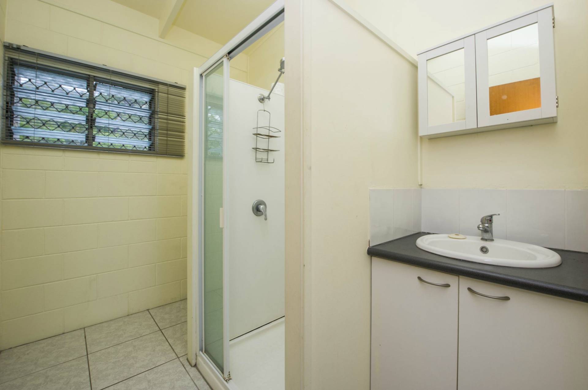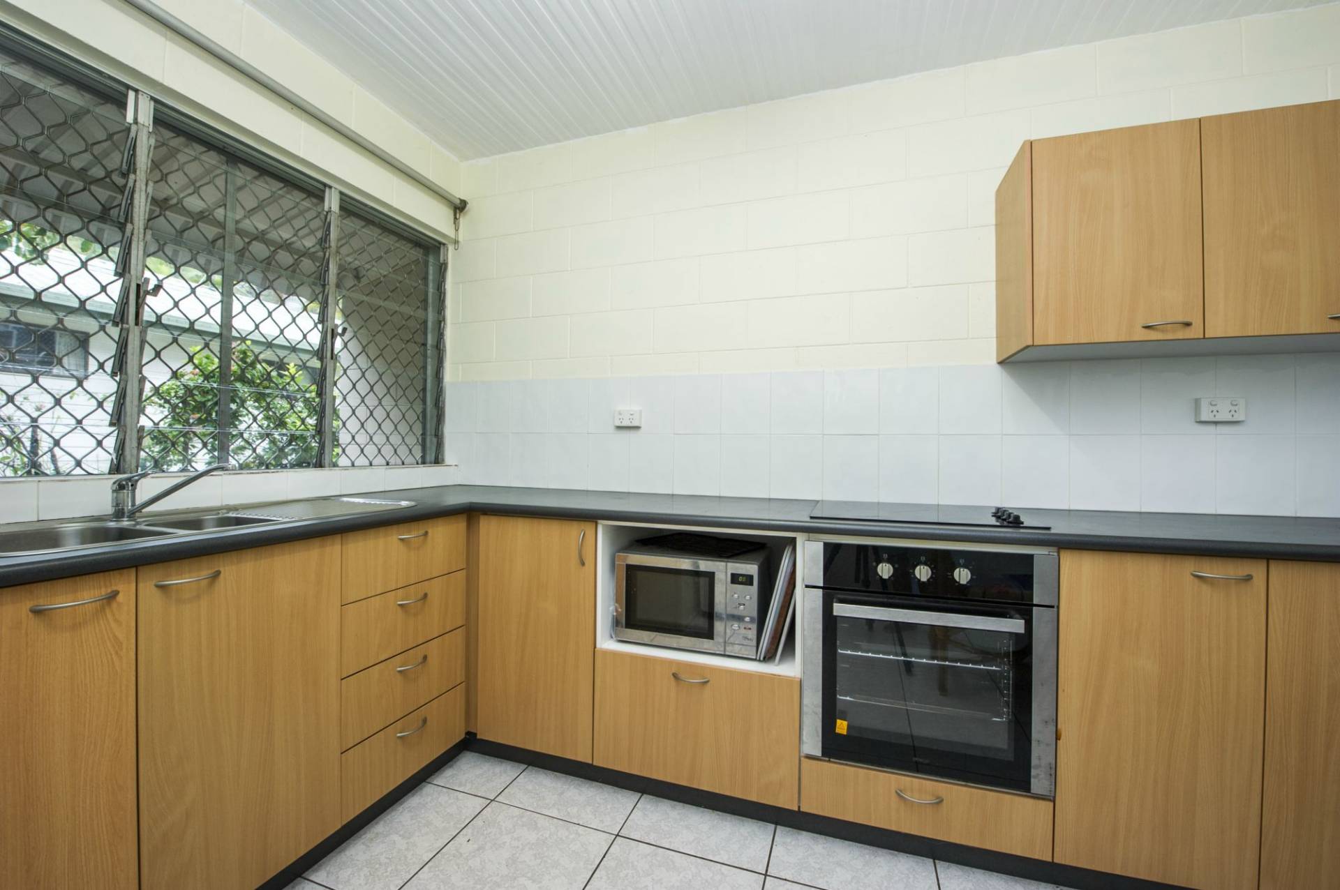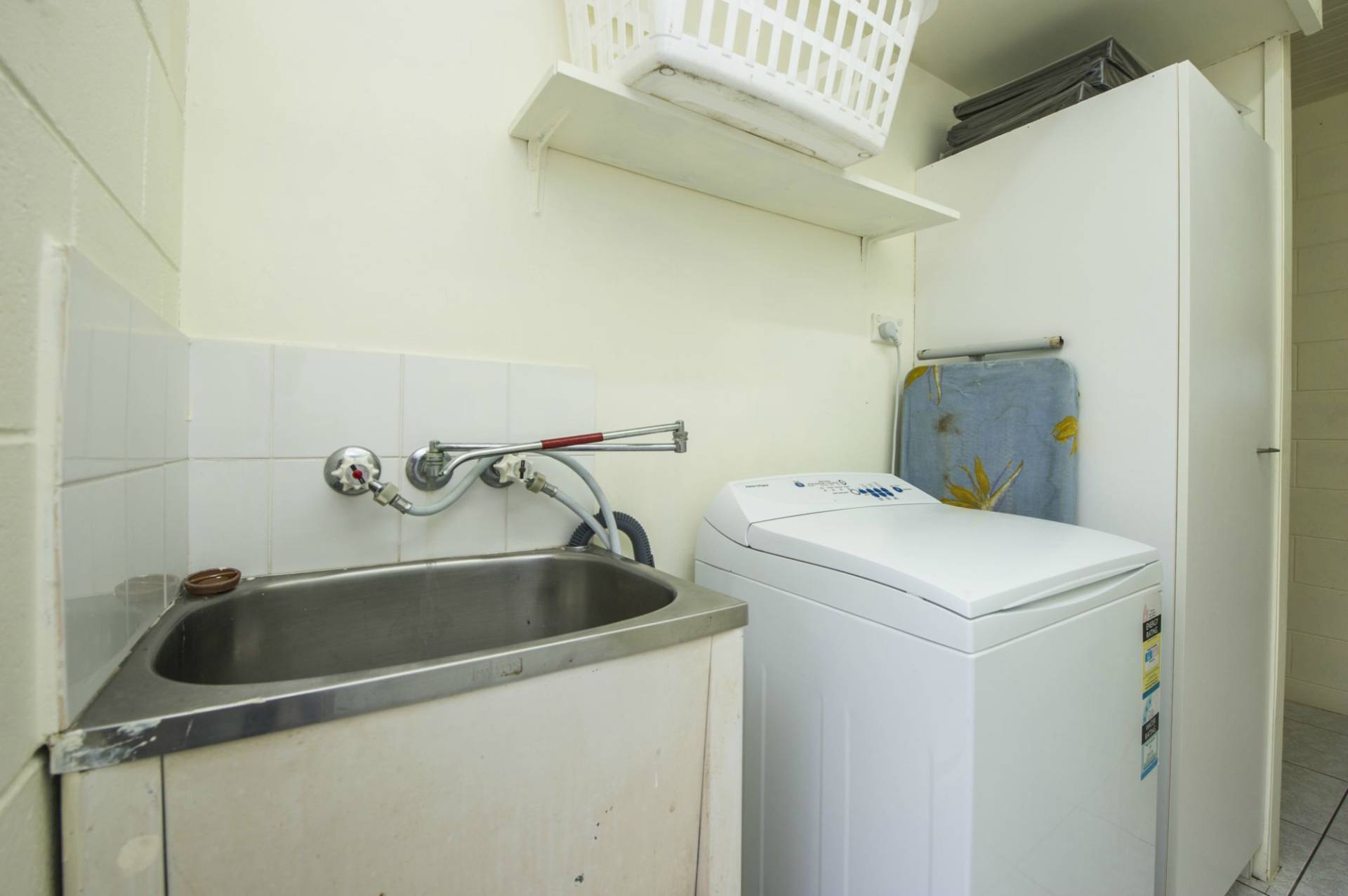 * Solid block construction with living, kitchen and laundry downstairs and two bedrooms and bathroom upstairs
