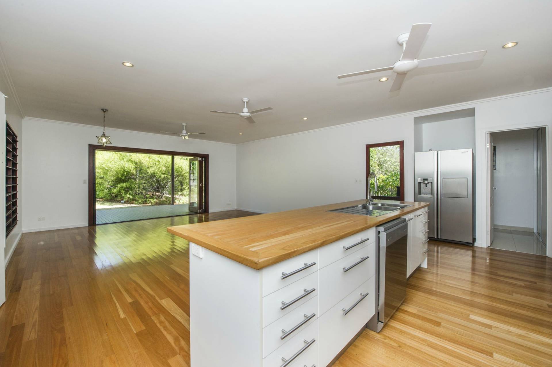 * Large open-plan living opening through bi-folds onto a large covered & lined deck
