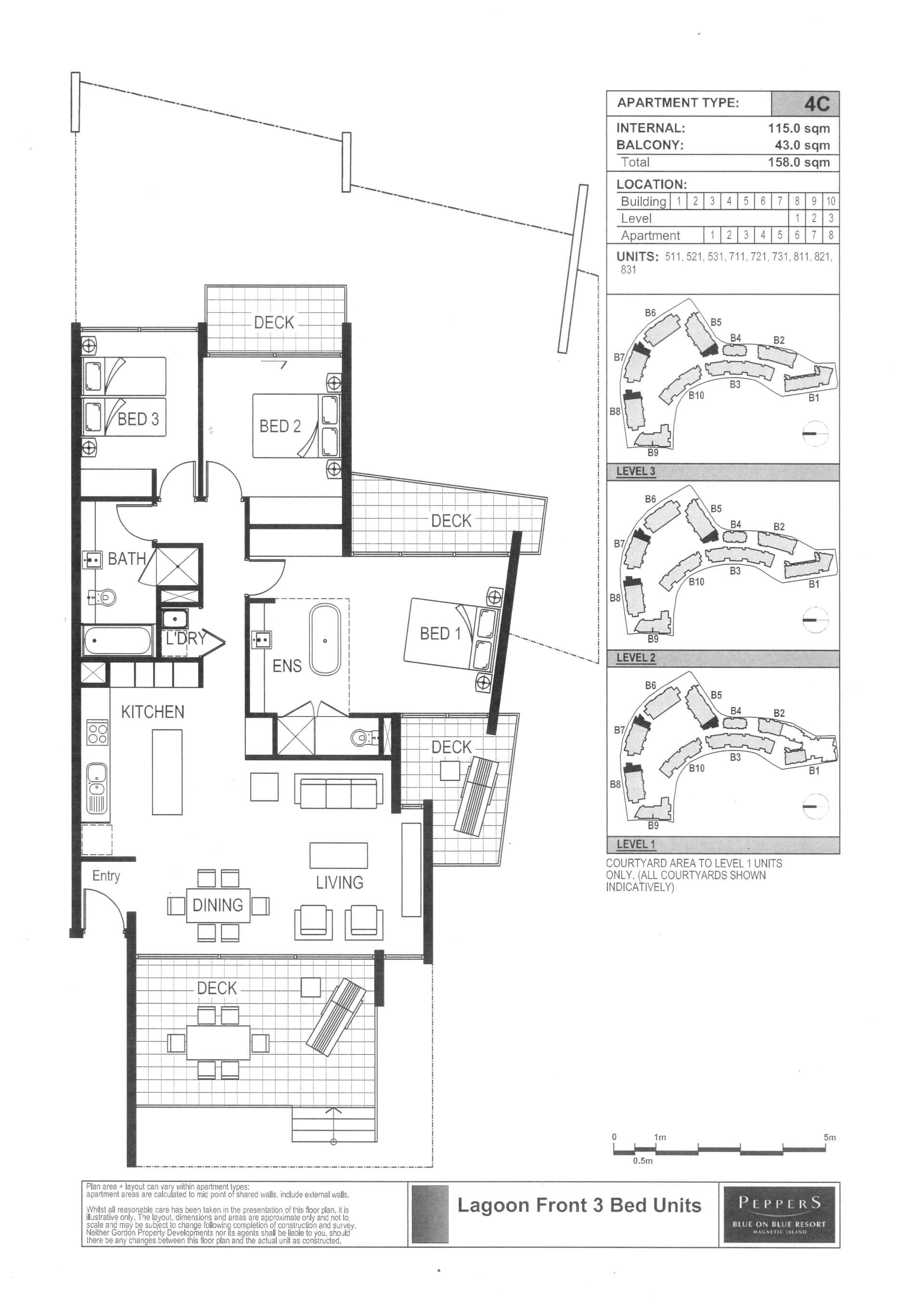 Ground floor apartments are sought-after in this complex which does not have lift access to any three bedroom apartments. The complex does have two fabulous swimming pools, conference rooms, waterfront restaurant and bar and a day spa, all just steps from the ferry terminal.