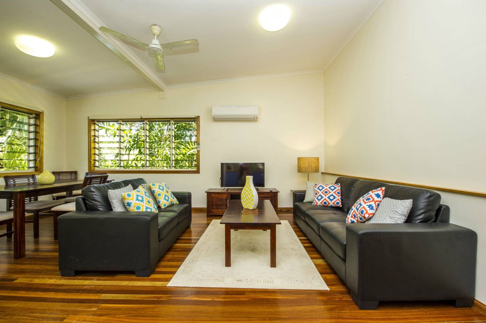 * air-conditioned and ceiling fans throughout