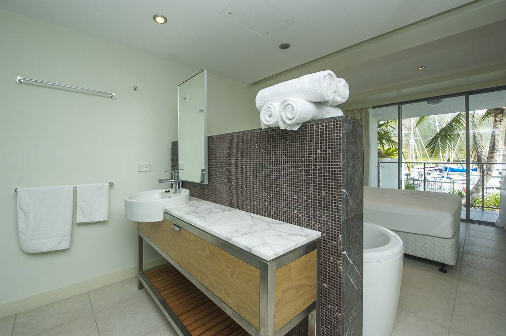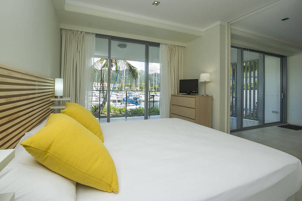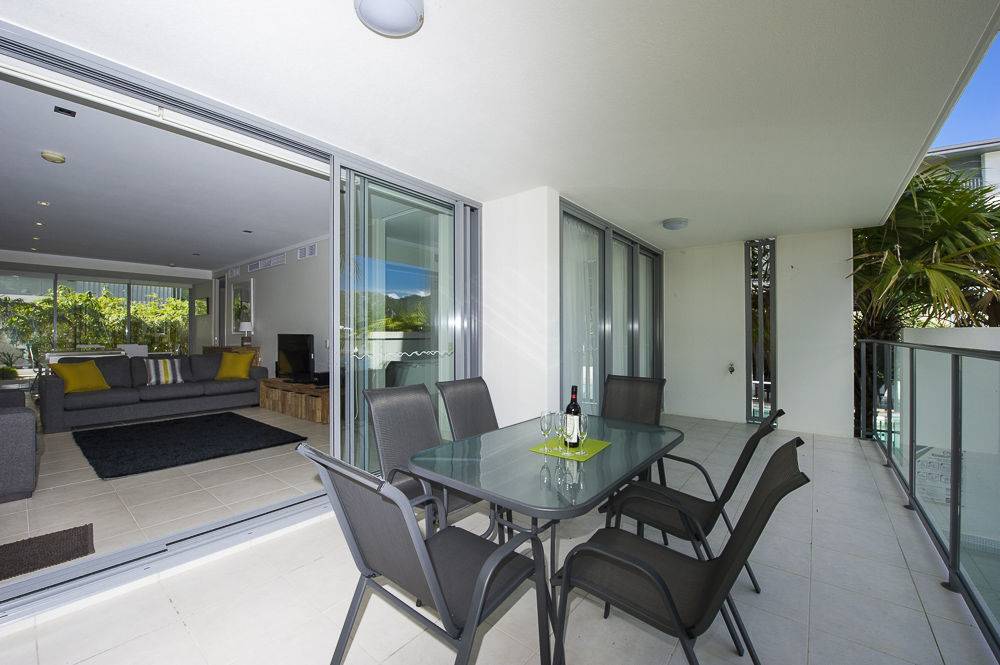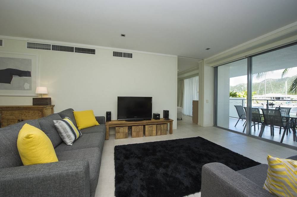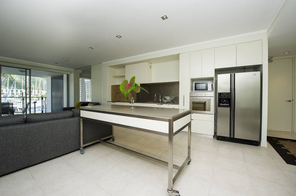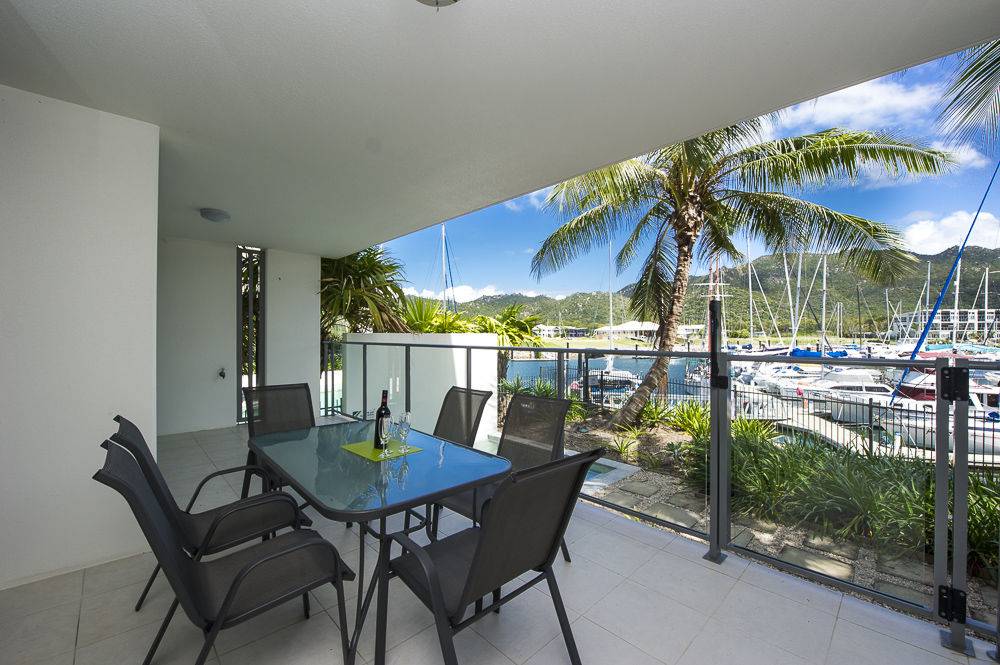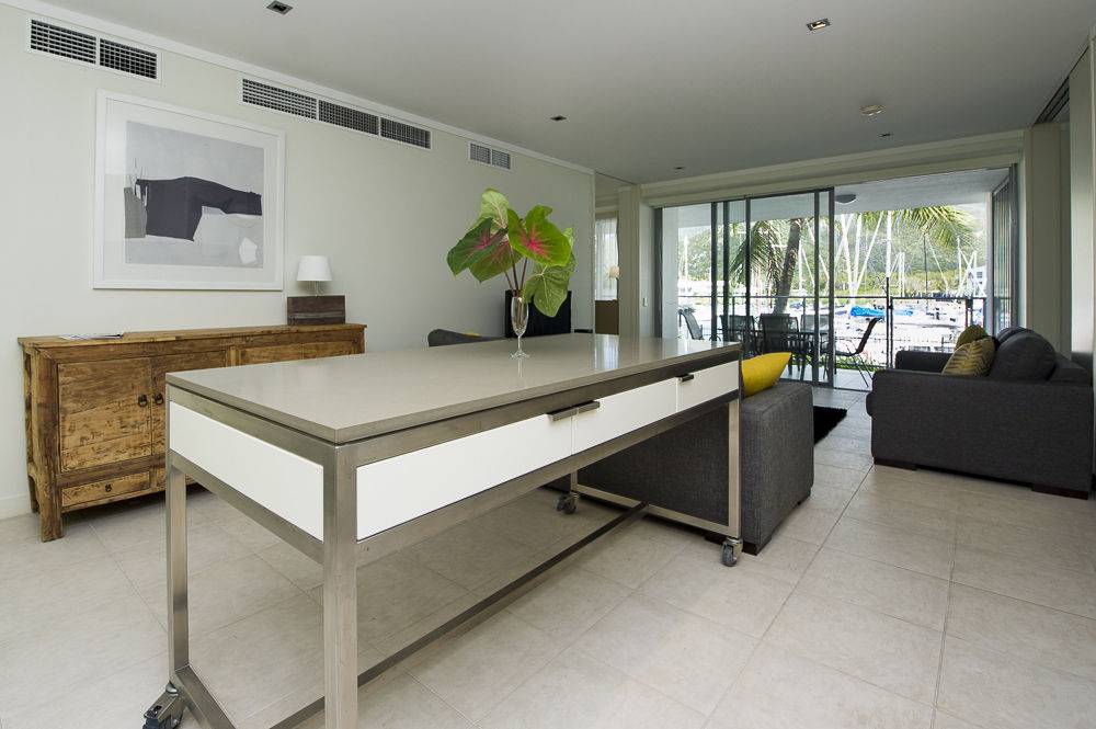 * Bedroom two also has marina views and the third bedroom is also spacious, opening onto the rear patio. All bedrooms have built-in-wardrobes and ducted air-conditioning is installed throughout the apartment