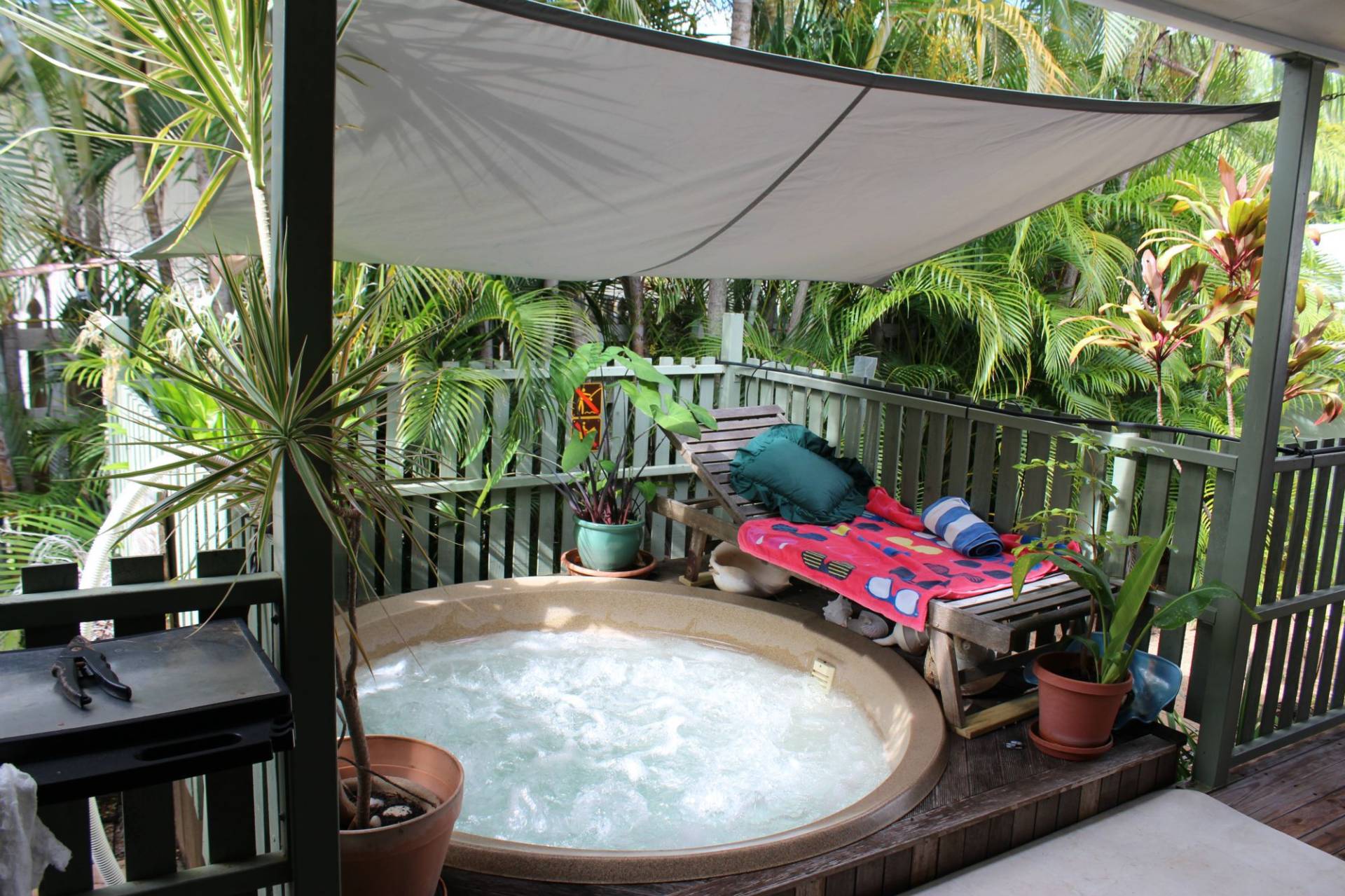* Spacious open-plan living area opens onto the back deck where there is a solar-heated spa, just turn off the solar heating in summer for a refreshing spot to cool off