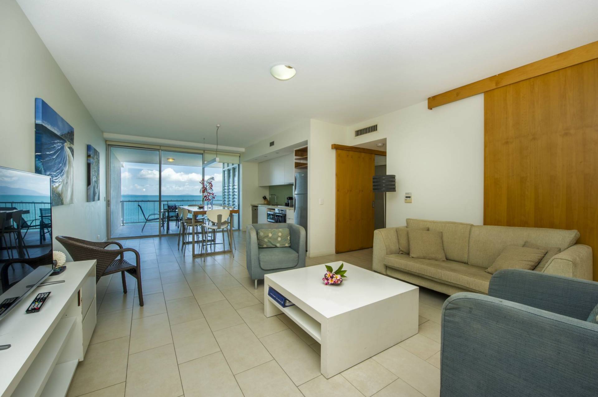 Wake up to views of the Coral Sea and the sound of the waves lapping on the rocks below. From the moment you step through the front door, the view opens up in front of you, through the open-plan lounge and dining area and floor-to-ceiling glass doors that open up to blend the indoor/outdoor living areas.