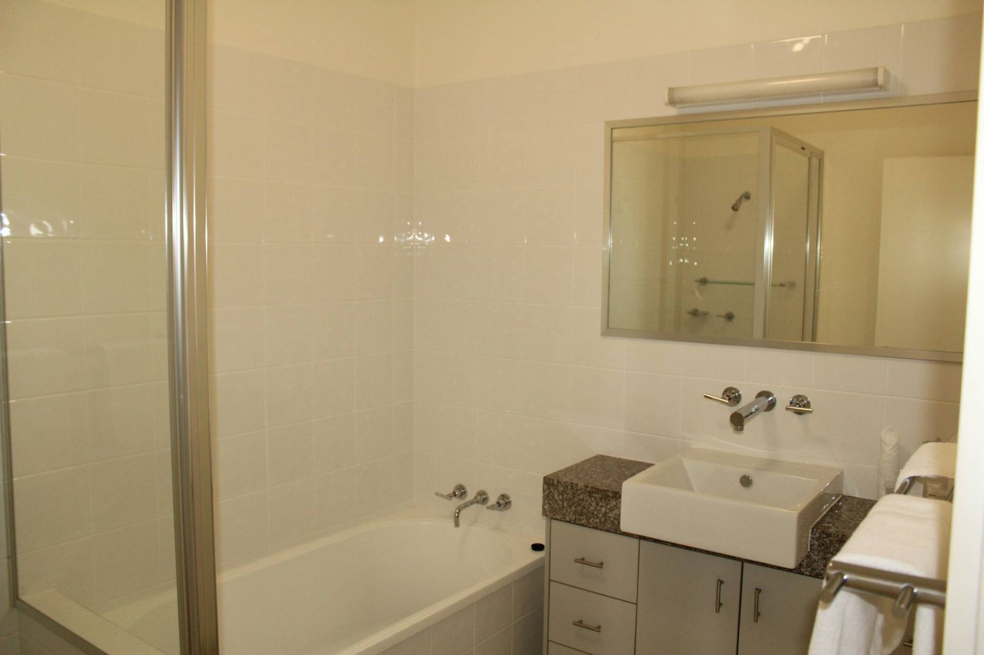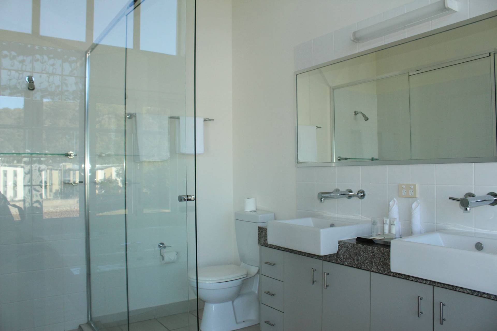 On entering the townhouse the open-plan living room flows through to the dining area, kitchen and out to the large covered balcony giving a lovely open feel. The modern kitchen features granite benchtops and plenty of cupboard and bench space and is designed to cater for indoor or outdoor entertaining. This level also has a large lockable store-cupboard, laundry and convenient toilet with handbasin.