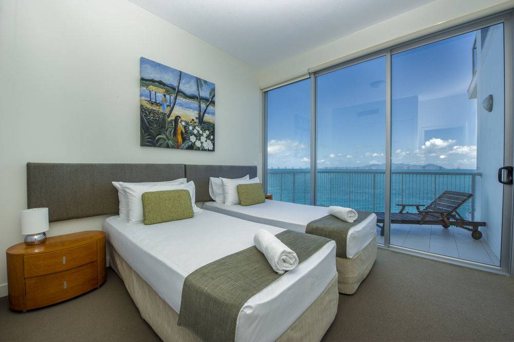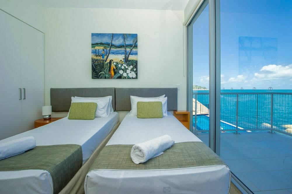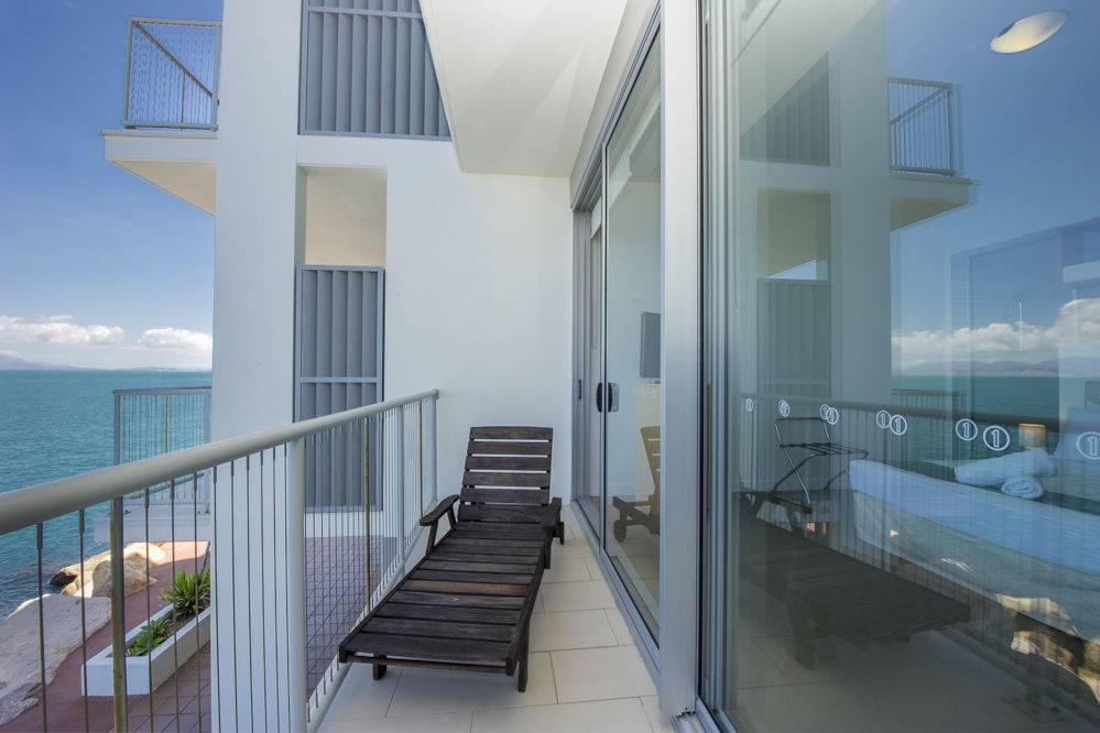 This absolute oceanfront two bedroom apartment takes advantage of the stunning views across the Coral Sea and its situation allows beautiful sea breezes to filter through the apartment. It is all too easy here to while the hours away, mesmerized by the view over the ocean, with the occasional ship passing by, and whales regularly spotted from the balcony during their annual migration as well as turtles on an almost daily basis.