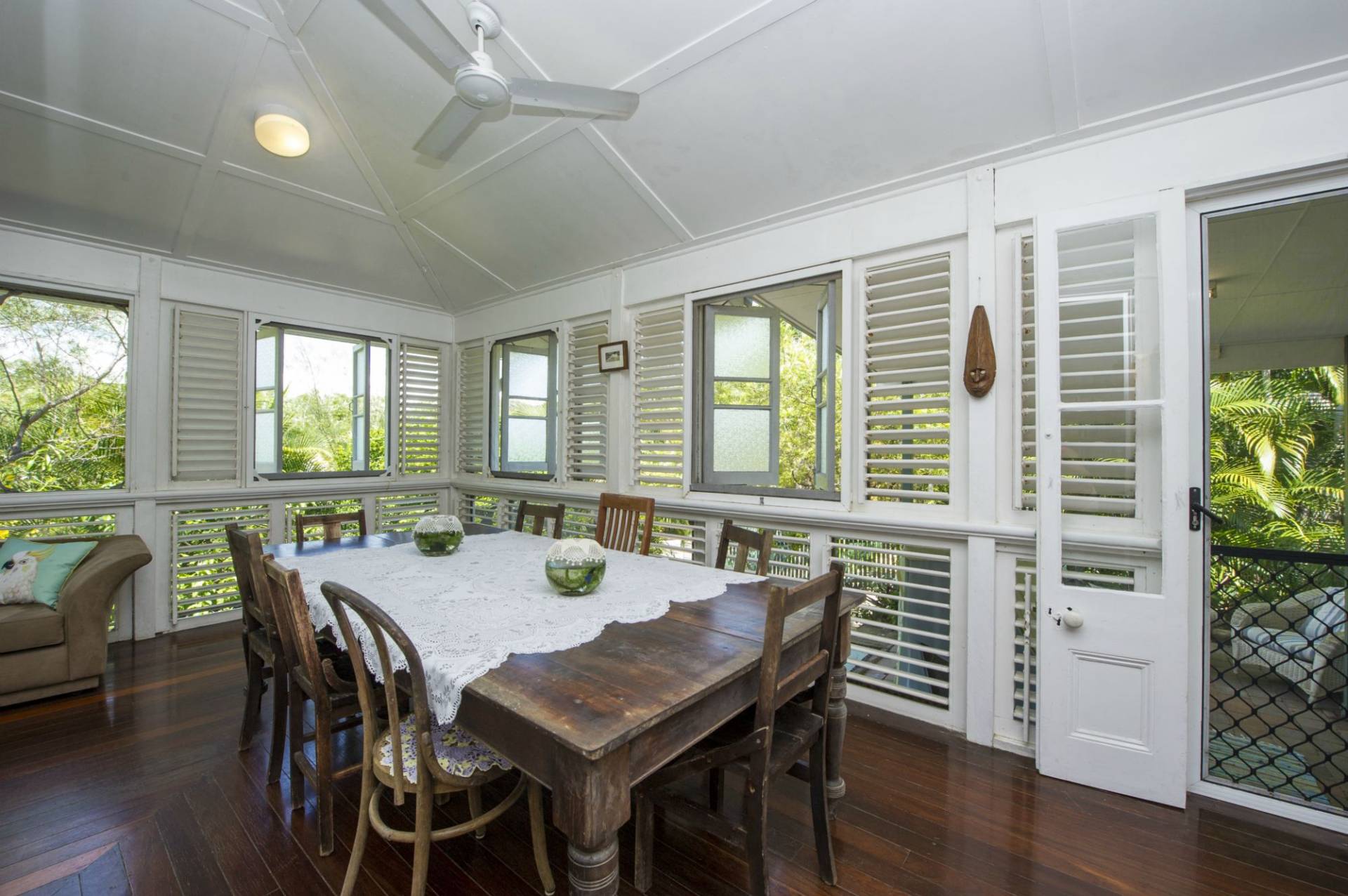 The property is set on over 1200 square metres of land and features established tropical gardens. To help you enjoy the sea breezes and views, there is a 'love shack' part way up the hill at the rear of the house. This standalone structure is fully screened and can be used as a sleep-out in the warm summer months or as a place to hang your hammock and enjoy the winter sun.