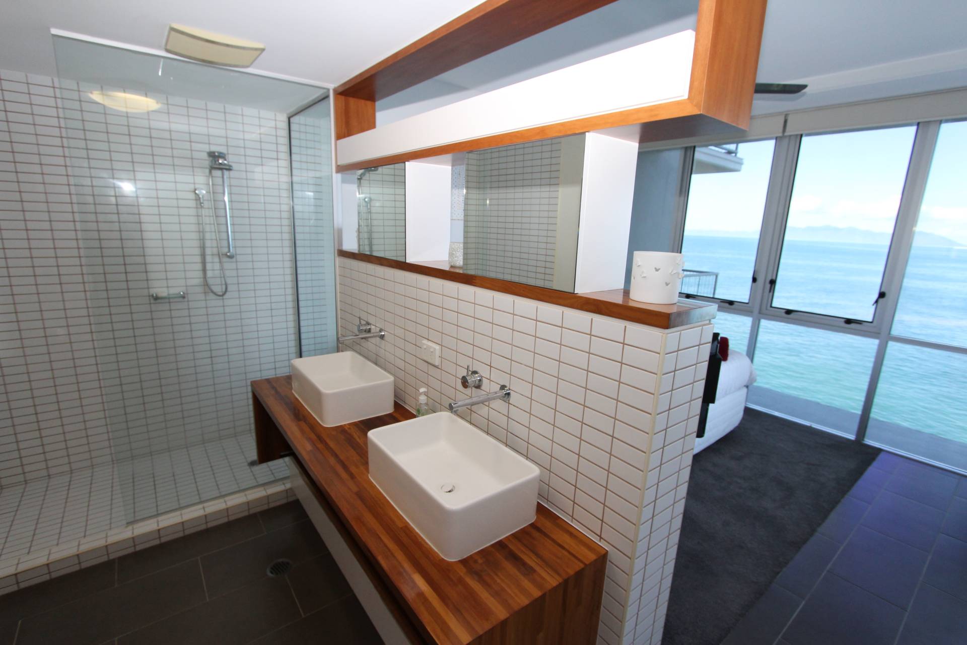 Wake up to views of the Coral Sea and the sound of the waves lapping on the rocks below. From the moment you step through the front door, the view opens up in front of you, through the open-plan lounge and dining area and floor-to-ceiling glass doors that open up to blend the indoor/outdoor living areas.
