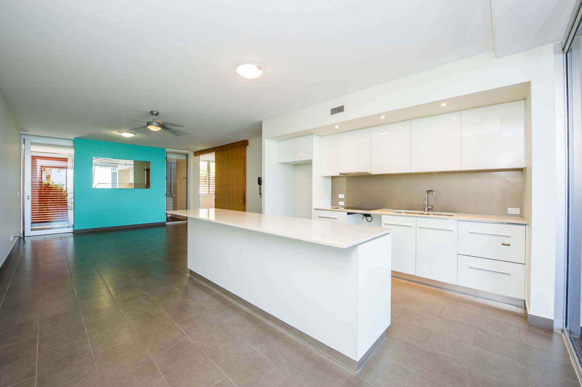 * Stylish galley kitchen with stone benchtops, island breakfast bar with plenty of additional storage and integrated double drawer dishwasher
