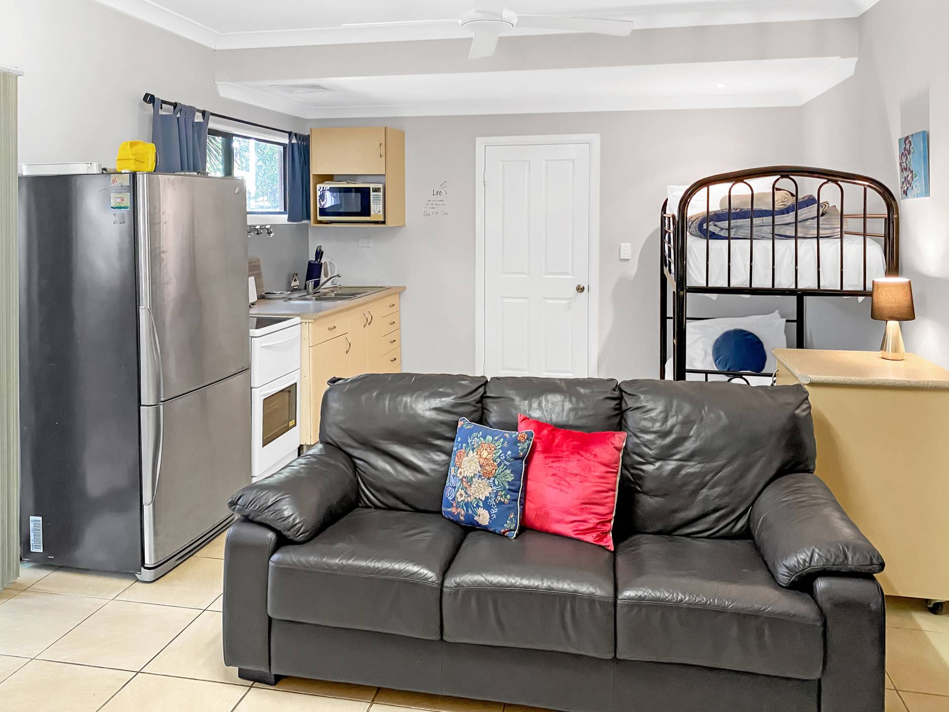 Downstairs is another enormous outdoor entertaining area, a laundry/storeroom and further accommodation. A bedroom with adjoining living area opens onto this area closest to the pool and in the middle of the building downstairs is a self-contained unit with bedroom, bathroom, living room and kitchen.