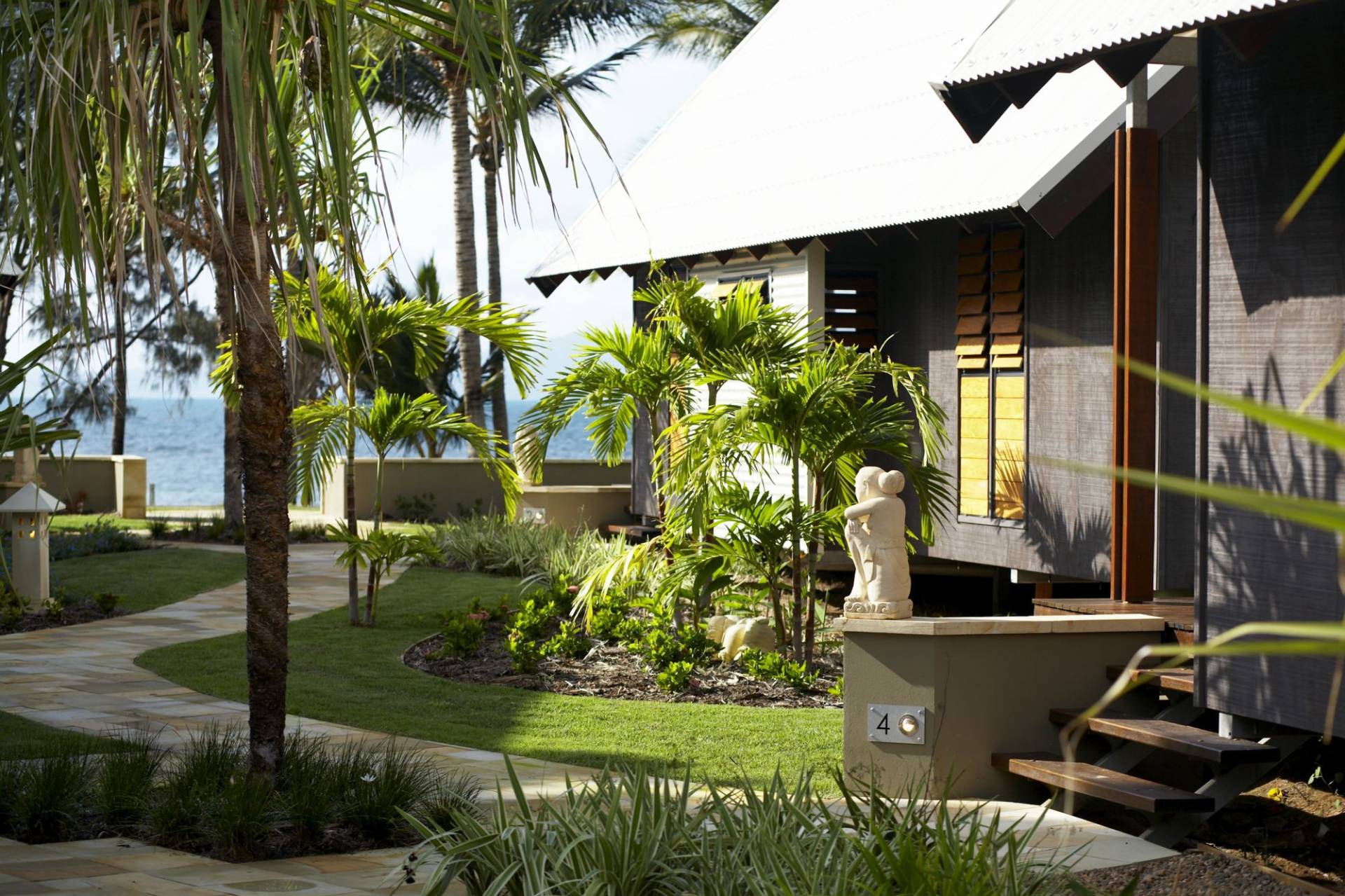 This Balinese inspired 2 bedroom 2 bathroom Villa has been built to a very high standard with spotted gum flooring, rosewood louvers, cedar bi-fold doors, stone bench tops, hoop pine ceilings, imported solid timber internal doors, sandstone paved courtyard and much more.