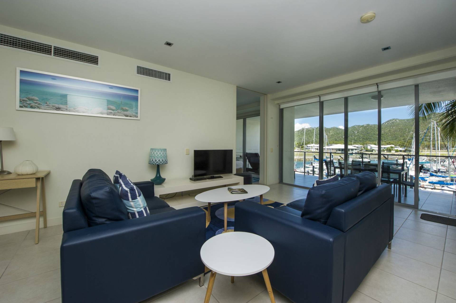 This second floor three bedroom apartment boasts exceptional views across the Magnetic Island Marina and Coral Sea with the green boulder-strewn hills of Magnetic Island as a backdrop.