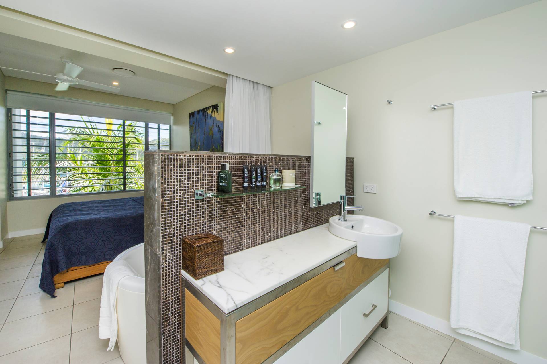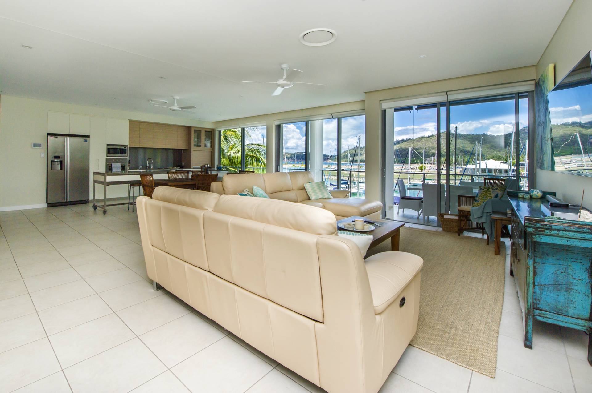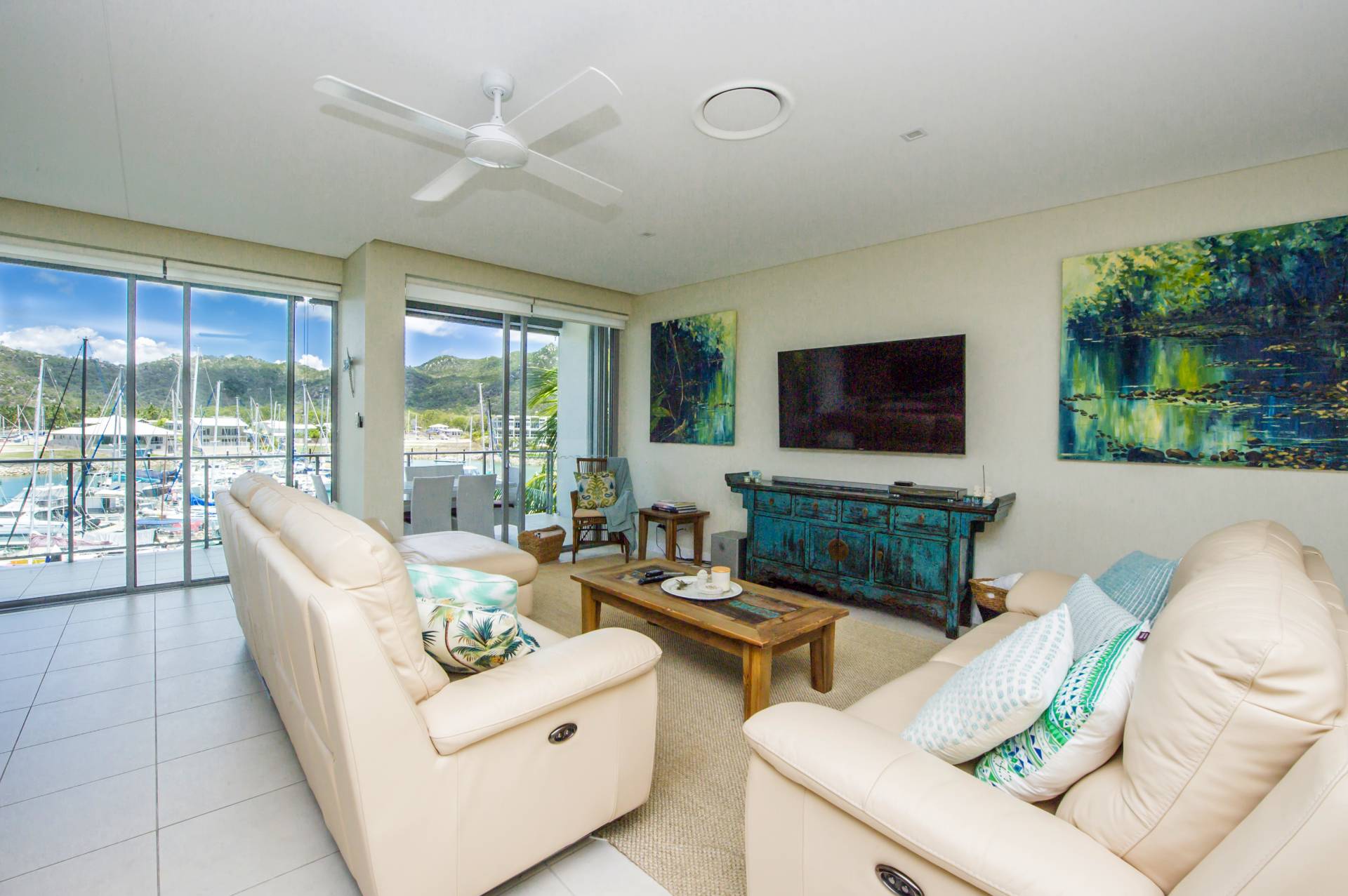 An opportunity arises to purchase a premier penthouse apartment on Magnetic Island. This huge 300m2 apartment comprises 3 bedrooms, office, 2 bathrooms plus a powder room, 2 living rooms, three decks totalling 107m2 and is surrounded by water with stunning views over the Magnetic Marina and Coral Sea to the mainland on one side, and on the other, across the lagoon pool to the pretty boulder-strewn green hills of the island.