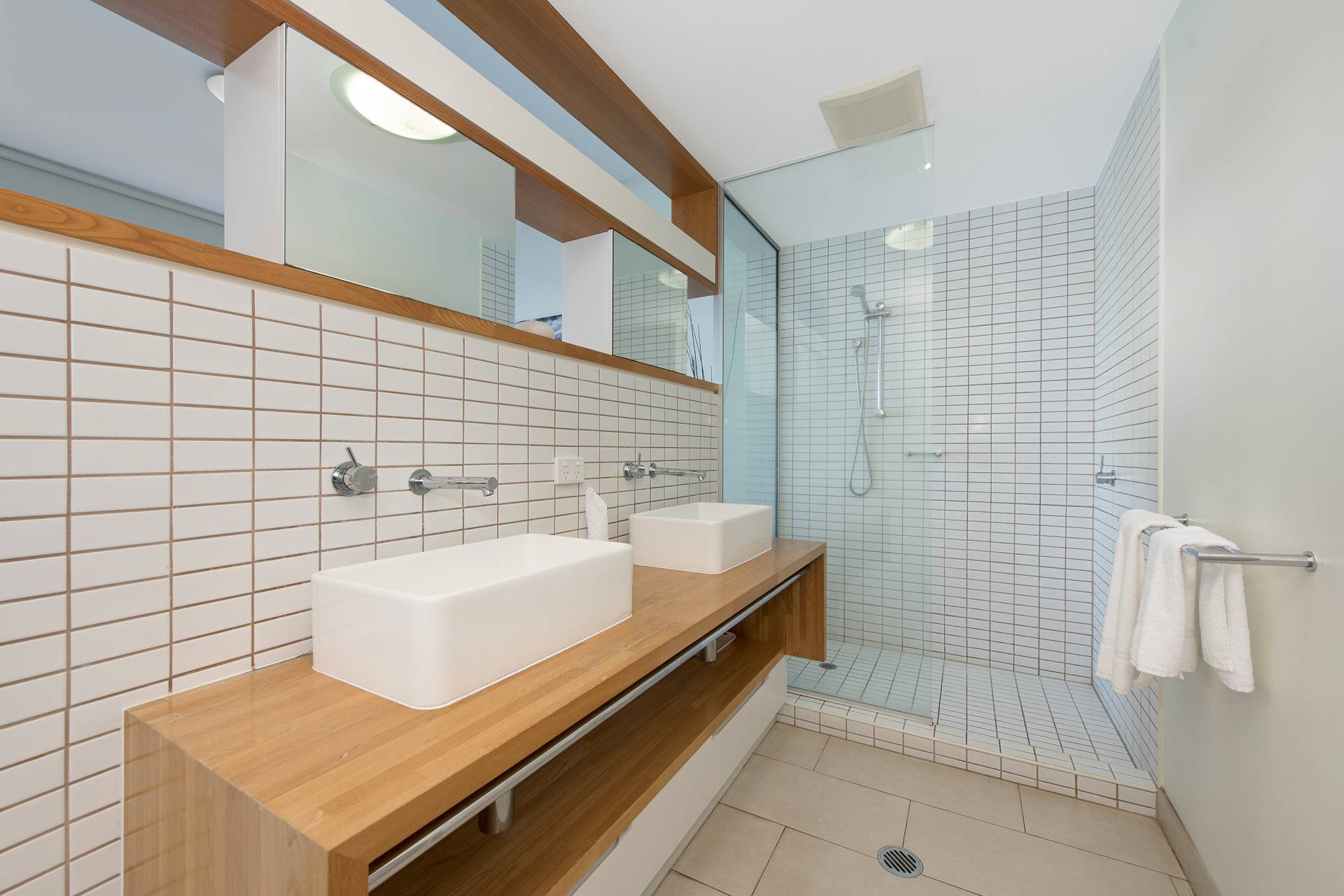 * Balcony across width of the apartment allowing spectacular views from all living areas and the master bedroom, as well as the ensuite bath and even the shower!