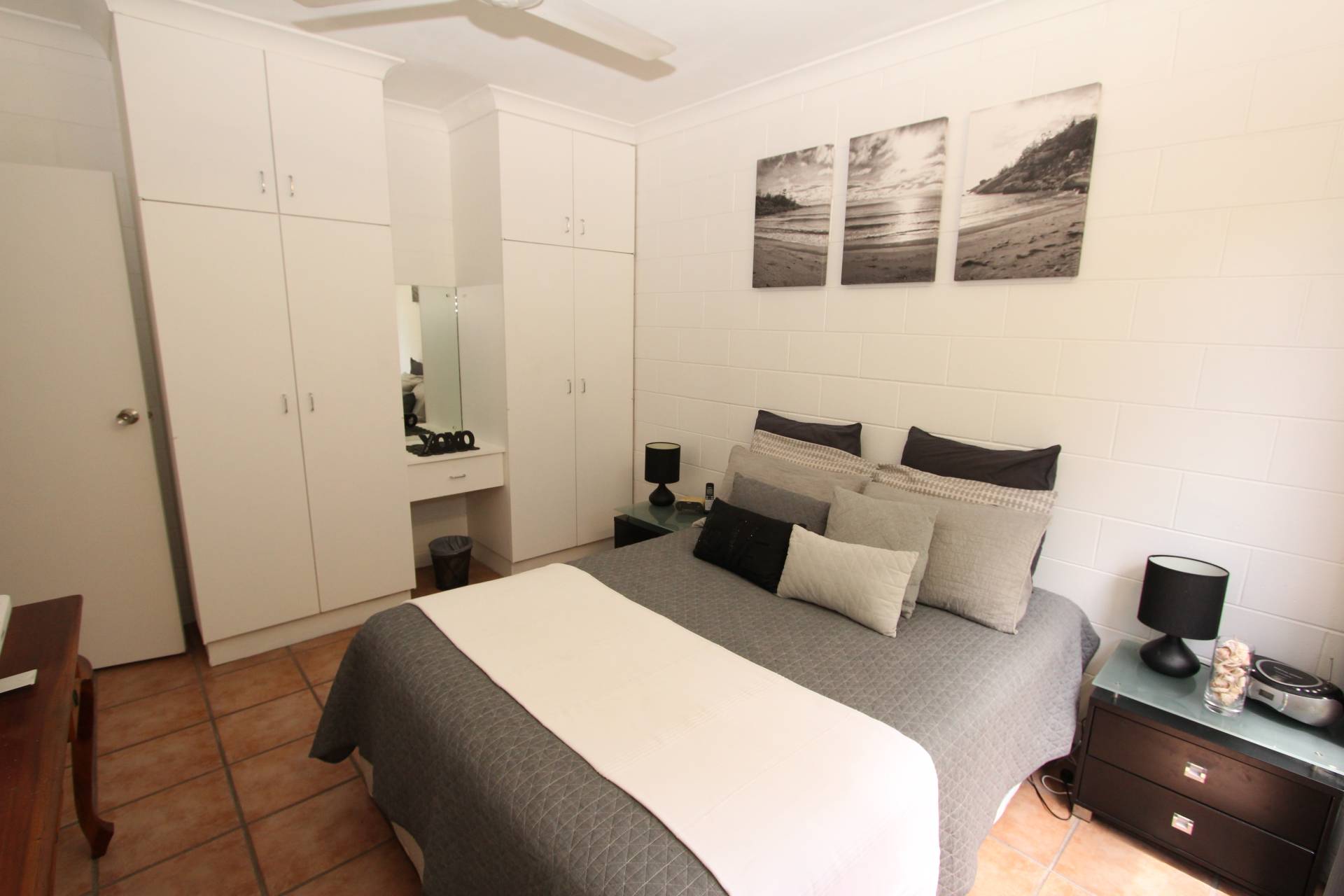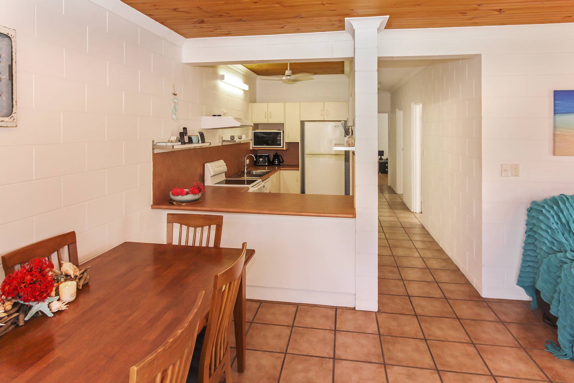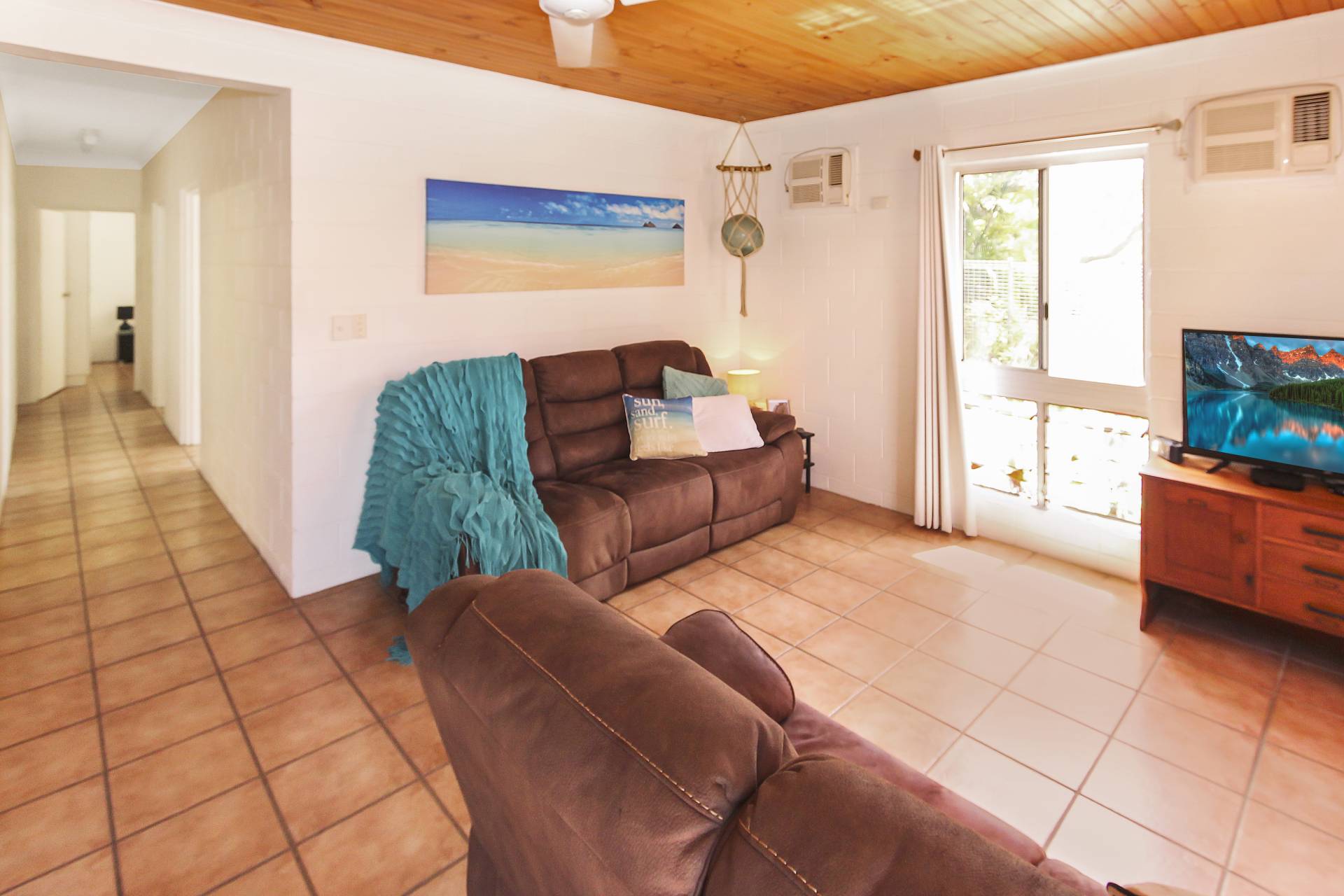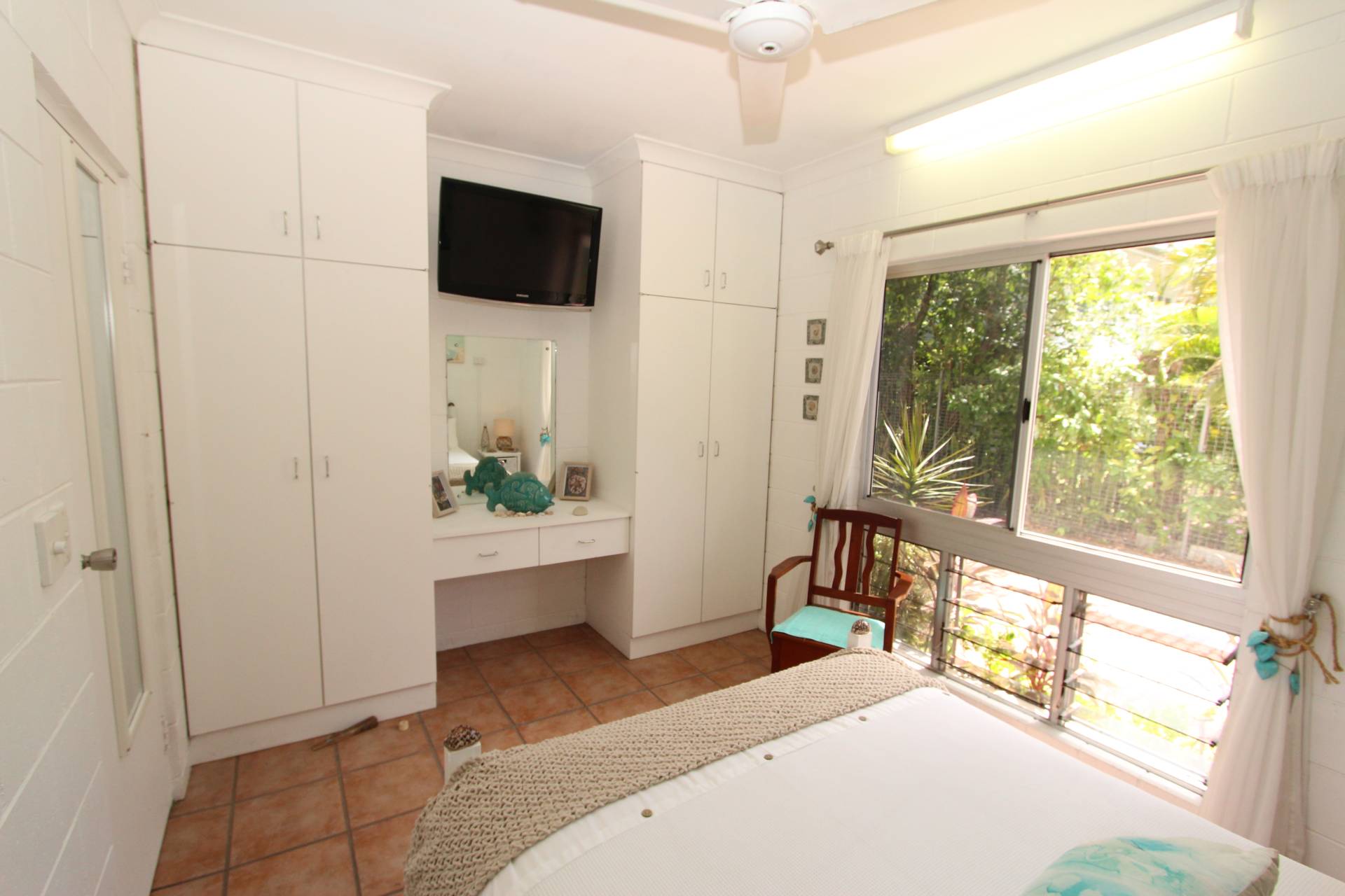 With beautiful ocean views across the Coral Sea to the mainland is this neat two bedroom ground floor apartment. In a small complex of 4, with neat landscaped gardens and a lovely inground pool with spa seat, this is a relaxing spot to live or ideal holiday rental. With low body corp fees of just $2000 p.a and council rates of approx $2000 p.a. including water, the outgoings are so low, you could keep it as your private winter getaway or holiday home - or rent it out when you're not there to cover all the bills!