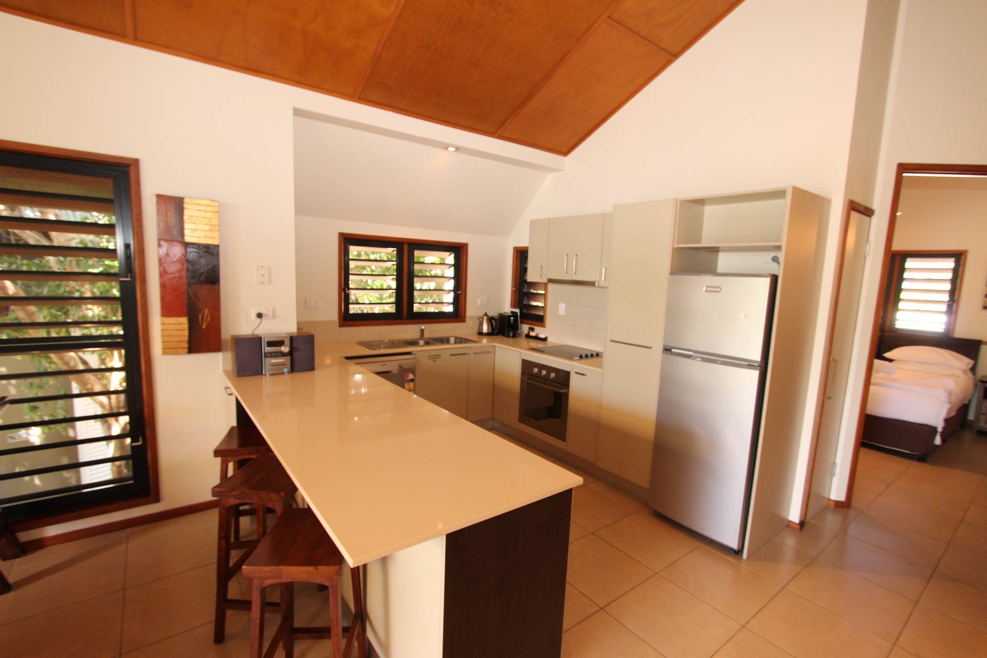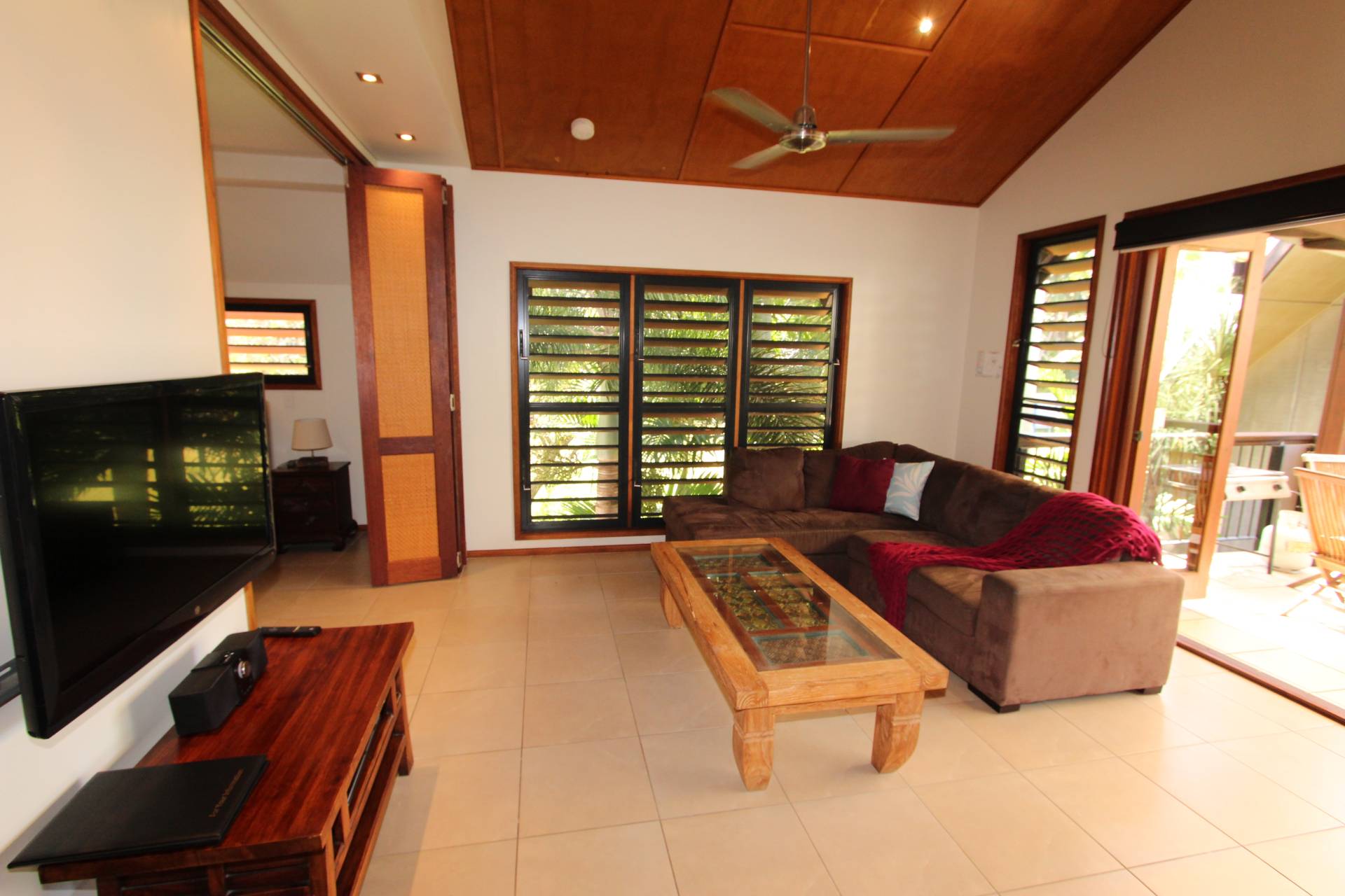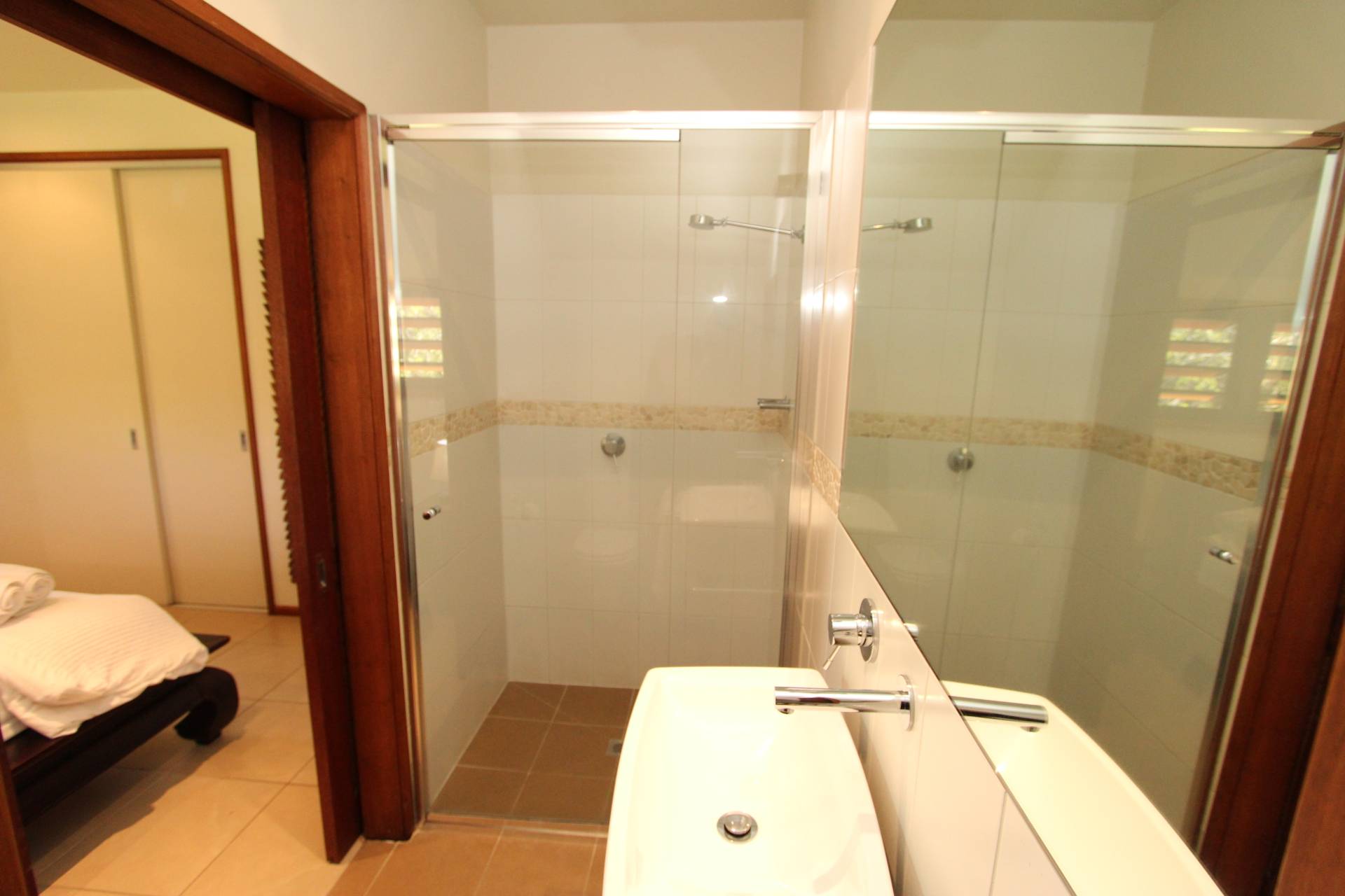 This Balinese-inspired 2 bedroom 2 bathroom upstairs apartment has been built to a very high standard with tiled floors, rosewood louvers, cedar bi-fold doors, stone bench tops, hoop pine ceilings, imported solid timber internal doors and much more.