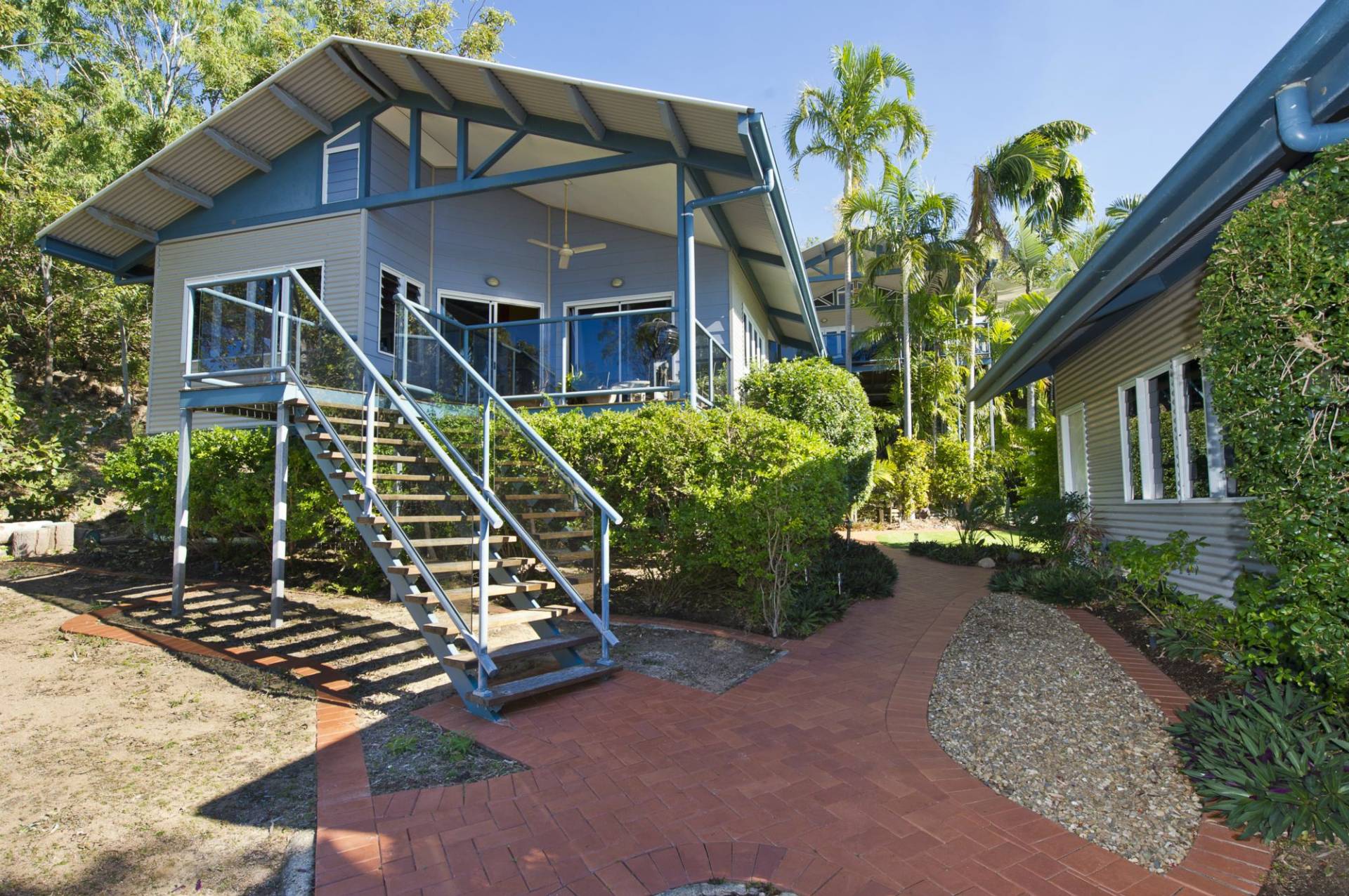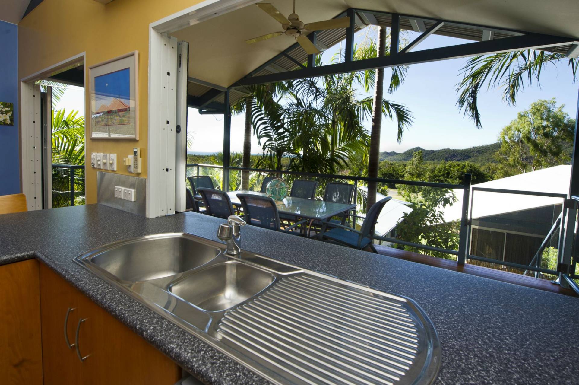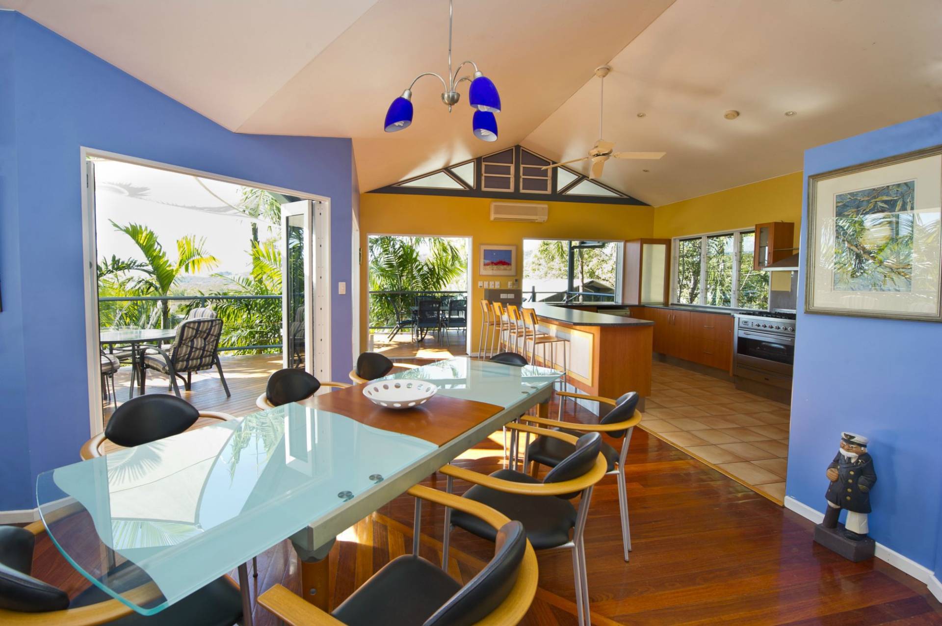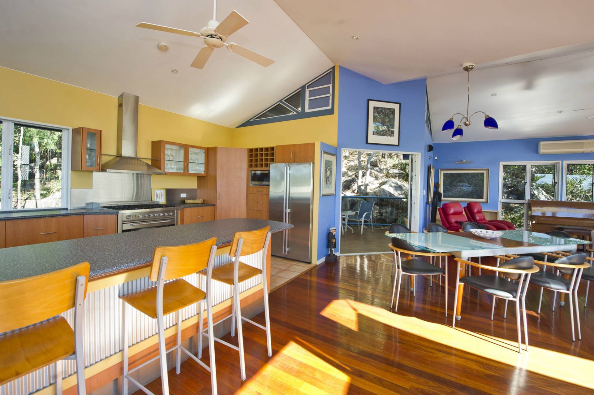 This multi-level dwelling is tucked up high, backing directly onto the hills of Magnetic Island National Park, strewn with granite boulders and picturesque pine trees, overlooking the Coral Sea and Hinchinbrook with stunning ocean views and magical sunsets.