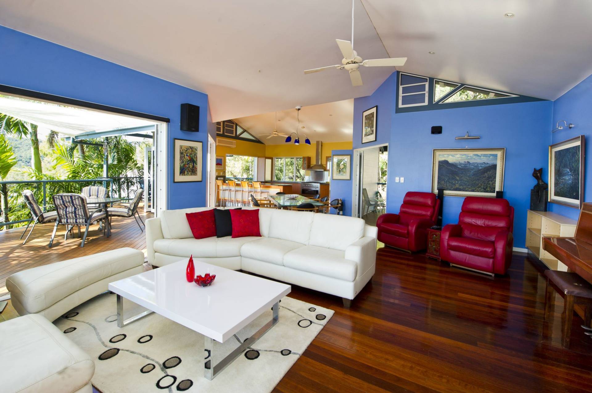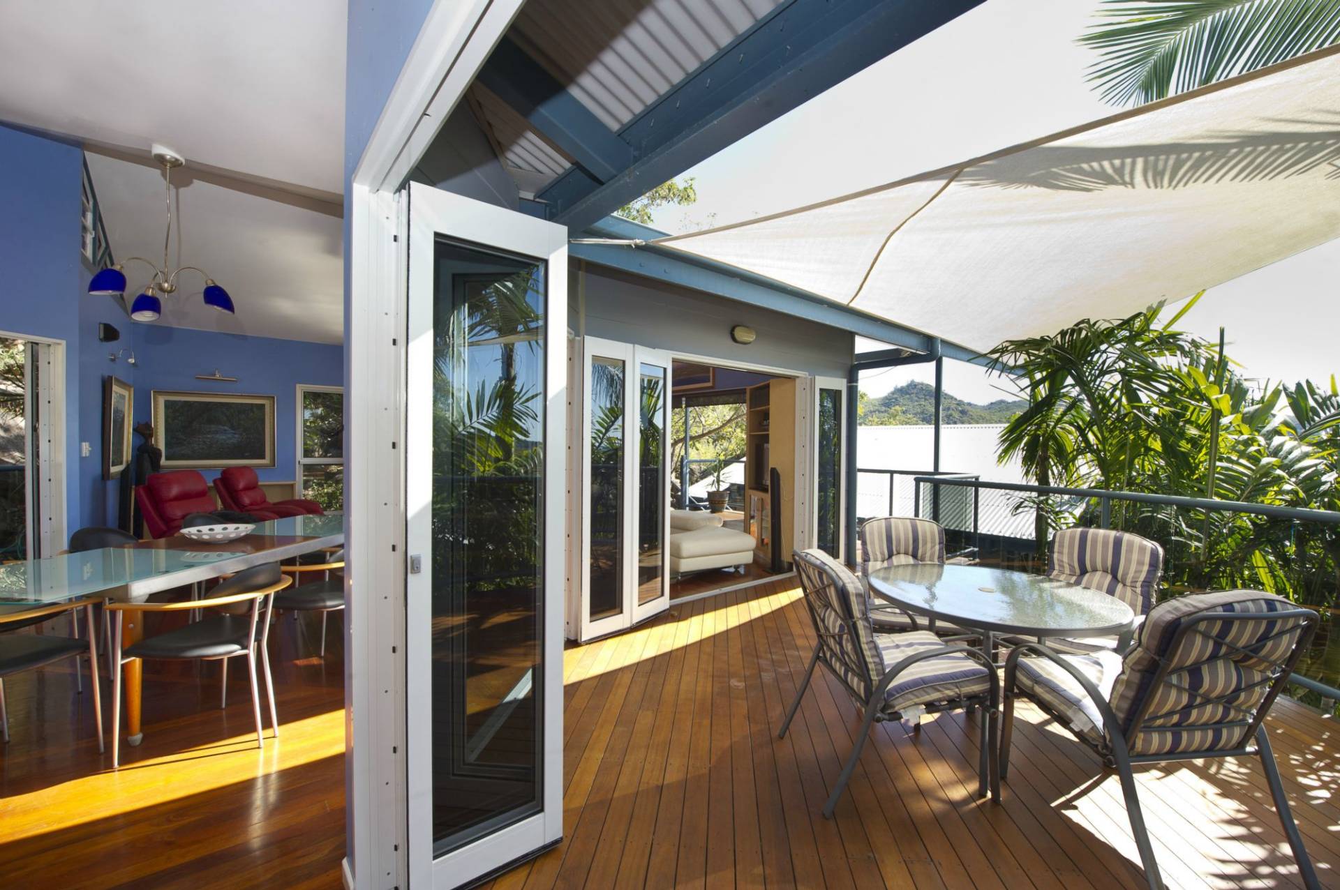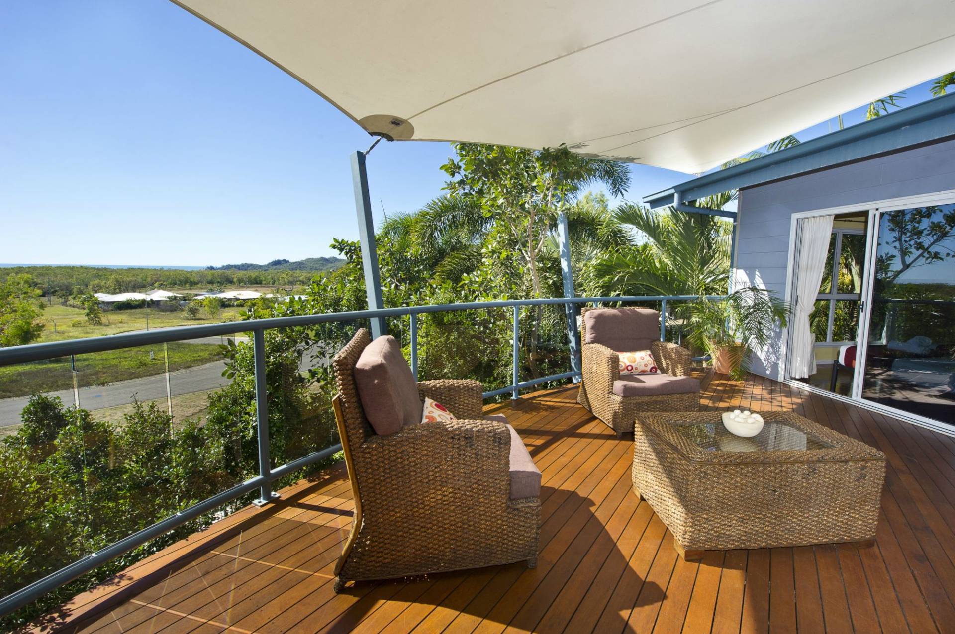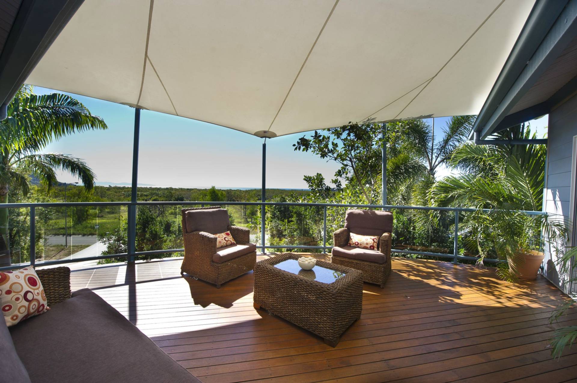 This multi-level dwelling is tucked up high, backing directly onto the hills of Magnetic Island National Park, strewn with granite boulders and picturesque pine trees, overlooking the Coral Sea and Hinchinbrook with stunning ocean views and magical sunsets.