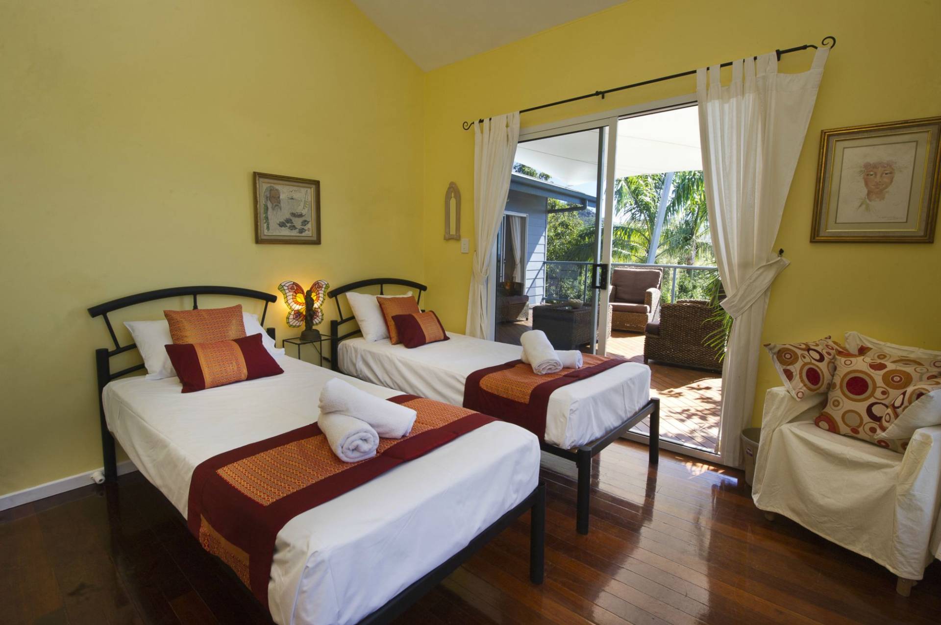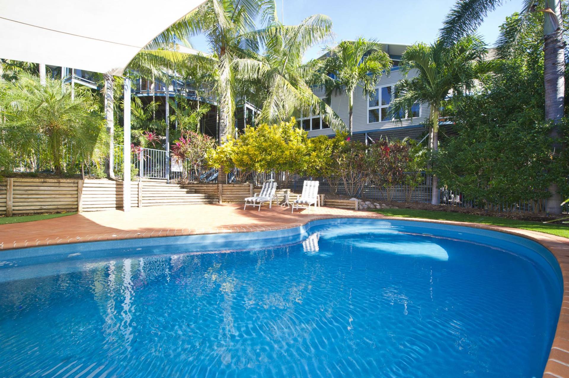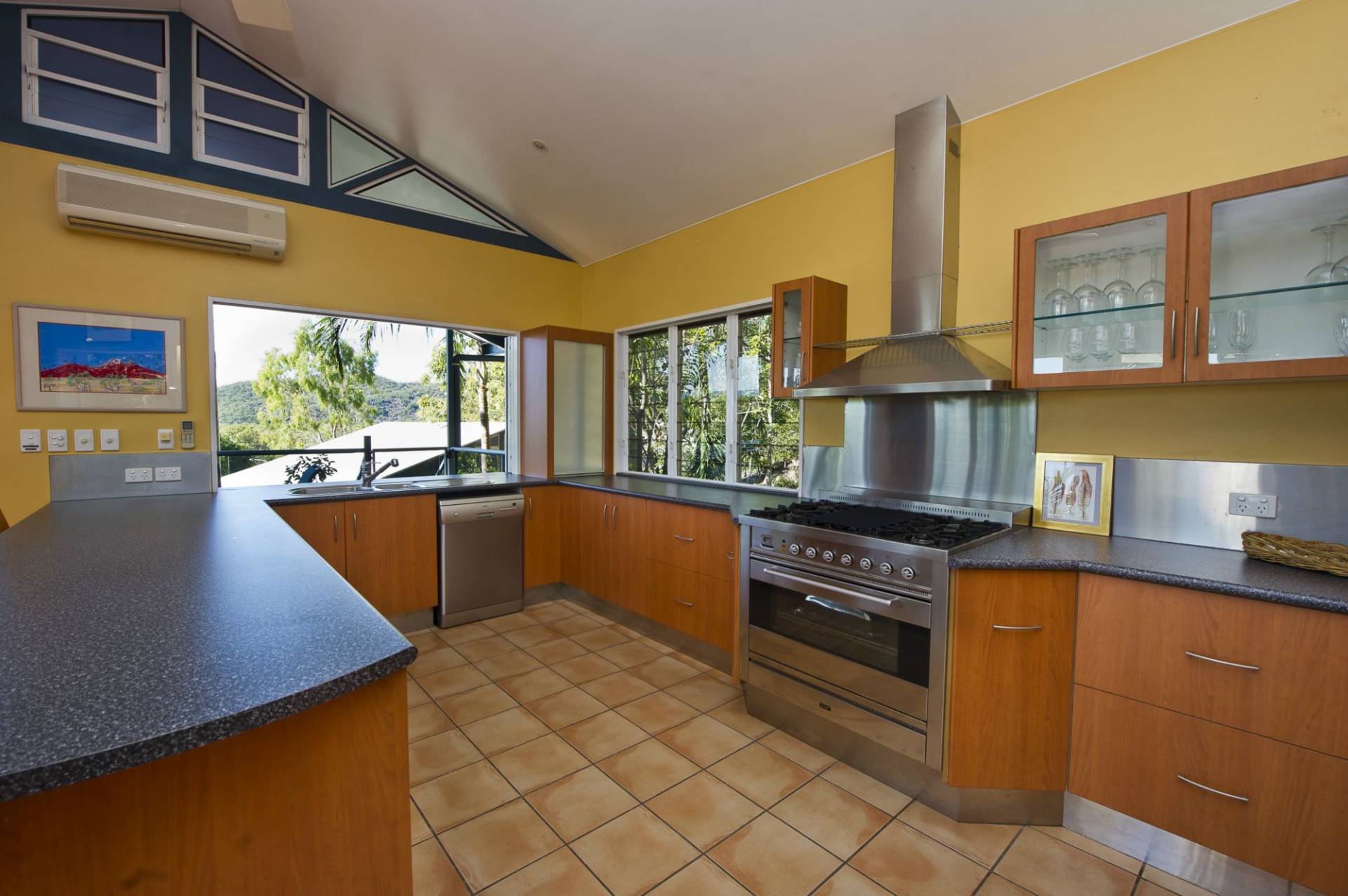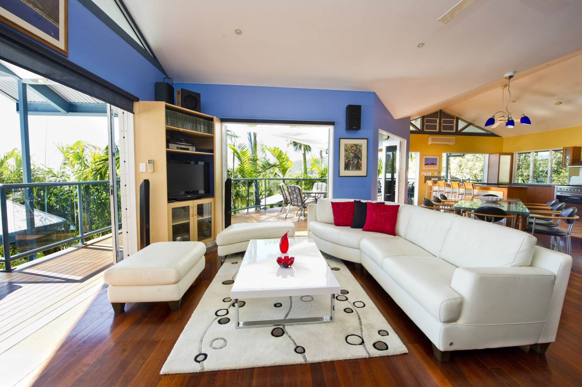 This multi-level dwelling is tucked up high, backing directly onto the hills of Magnetic Island National Park, strewn with granite boulders and picturesque pine trees, overlooking the Coral Sea and Hinchinbrook with stunning ocean views and magical sunsets.