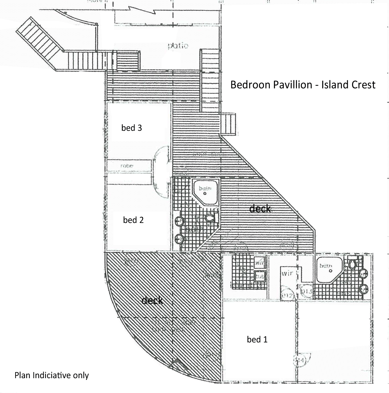 The master bedroom suite features an ensuite bathroom with spa bath and his-and-hers vanities, walk-through wardrobe and adjacent room which could be used as a nursery, study or parents' retreat. It opens onto a large deck which offers stunning water views. There are two further bedrooms, family bathroom with spa bath, and laundry within this pavilion and it is just a few steps up to the 'living' pavilion across the deck.
